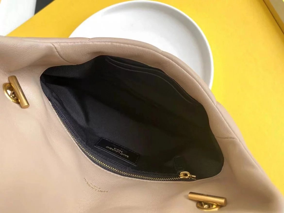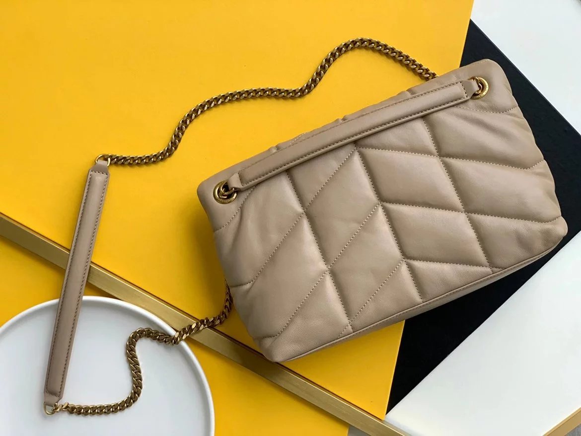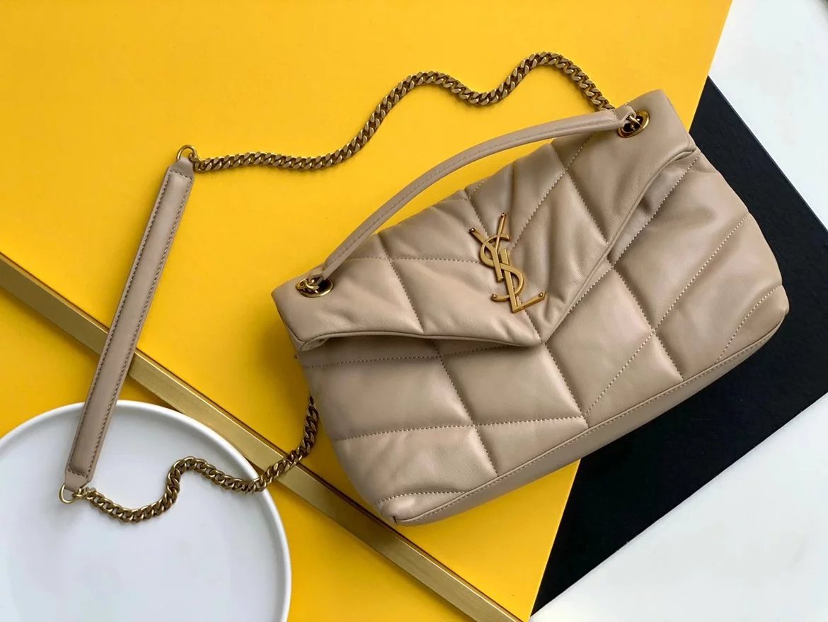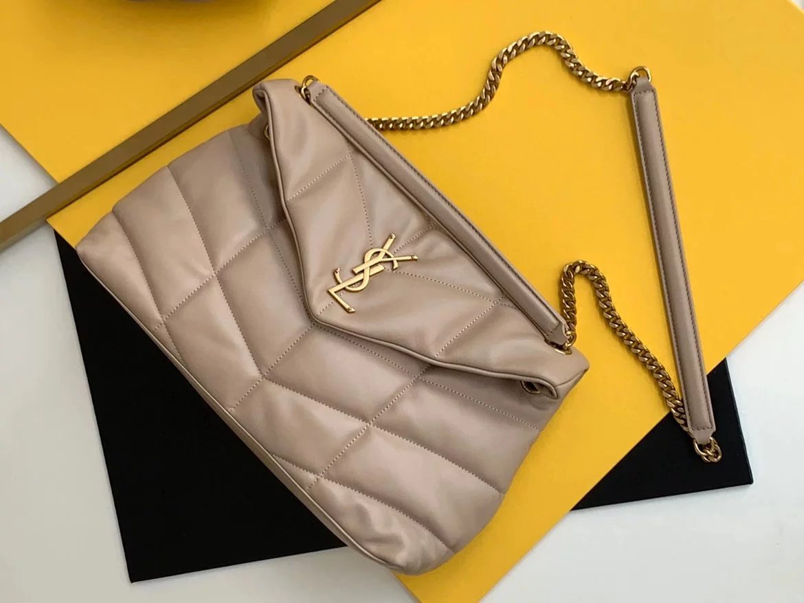 LOULOU PUFFER 太空绗缝包小羊皮包,小羊皮制作,手感柔软细腻,犹如怀抱云朵 般的感受;经典的Y家logo、链条及扣眼五金均采用银色拉丝金属材质,哑光雾面特有质感,小号特别轻巧,又实用,特别适合夏天的使用 尺寸:23X15.5X8.5. 尺寸:29x17x11cm 尺寸:35x23x13.5