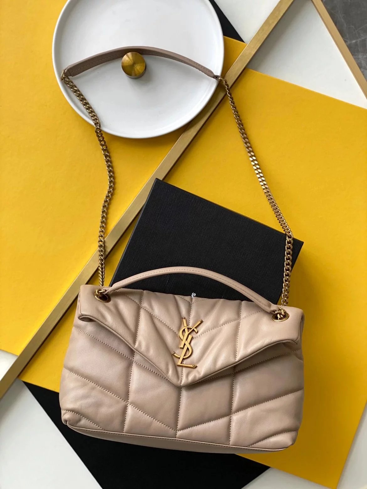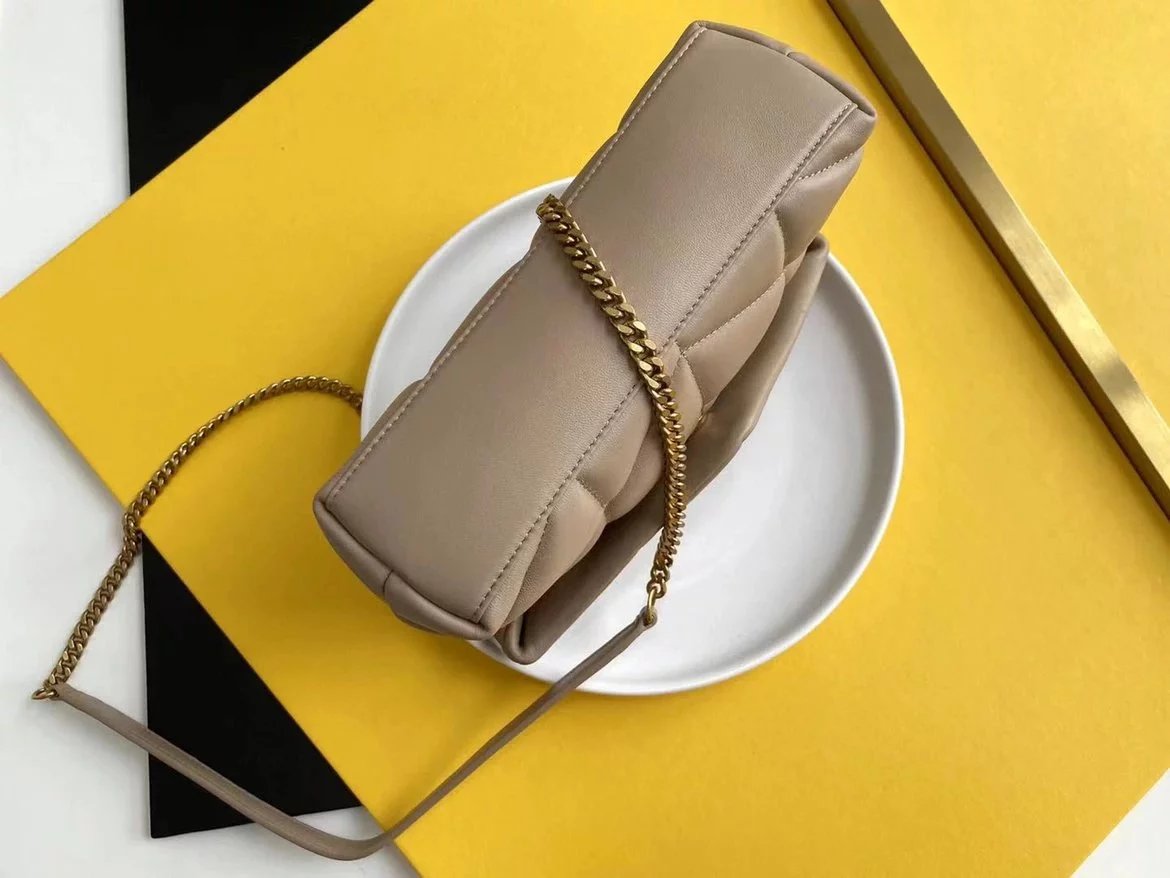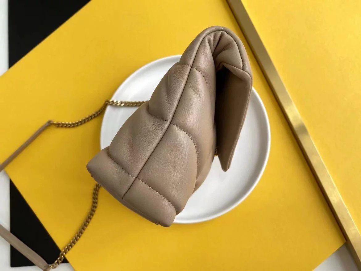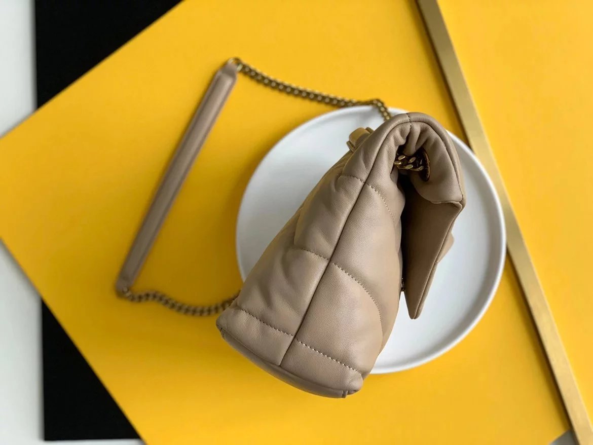 LOULOU PUFFER 太空绗缝包小羊皮包,小羊皮制作,手感柔软细腻,犹如怀抱云朵 般的感受;经典的Y家logo、链条及扣眼五金均采用银色拉丝金属材质,哑光雾面特有质感,小号特别轻巧,又实用,特别适合夏天的使用 尺寸:23X15.5X8.5. 尺寸:29x17x11cm 尺寸:35x23x13.5