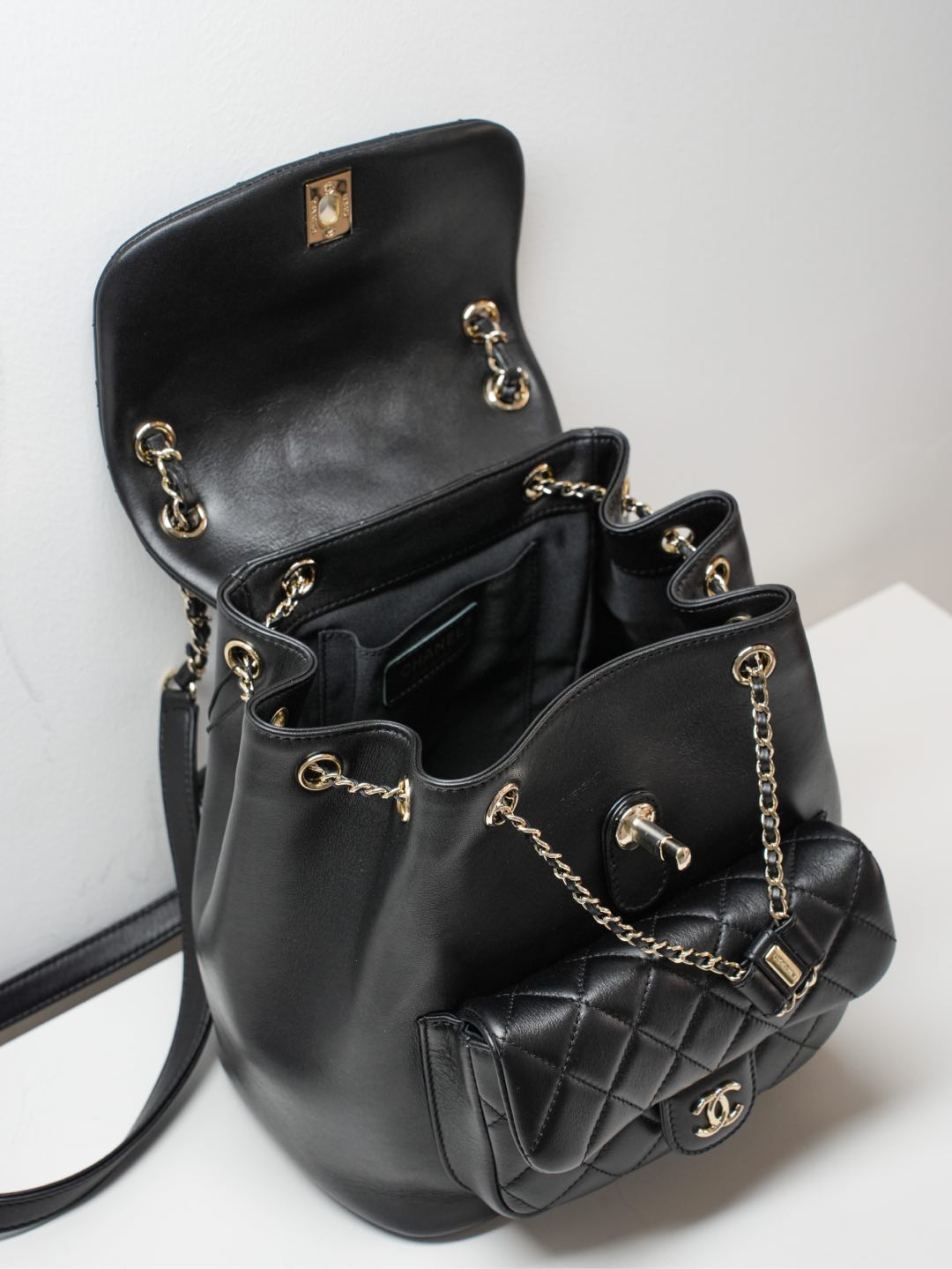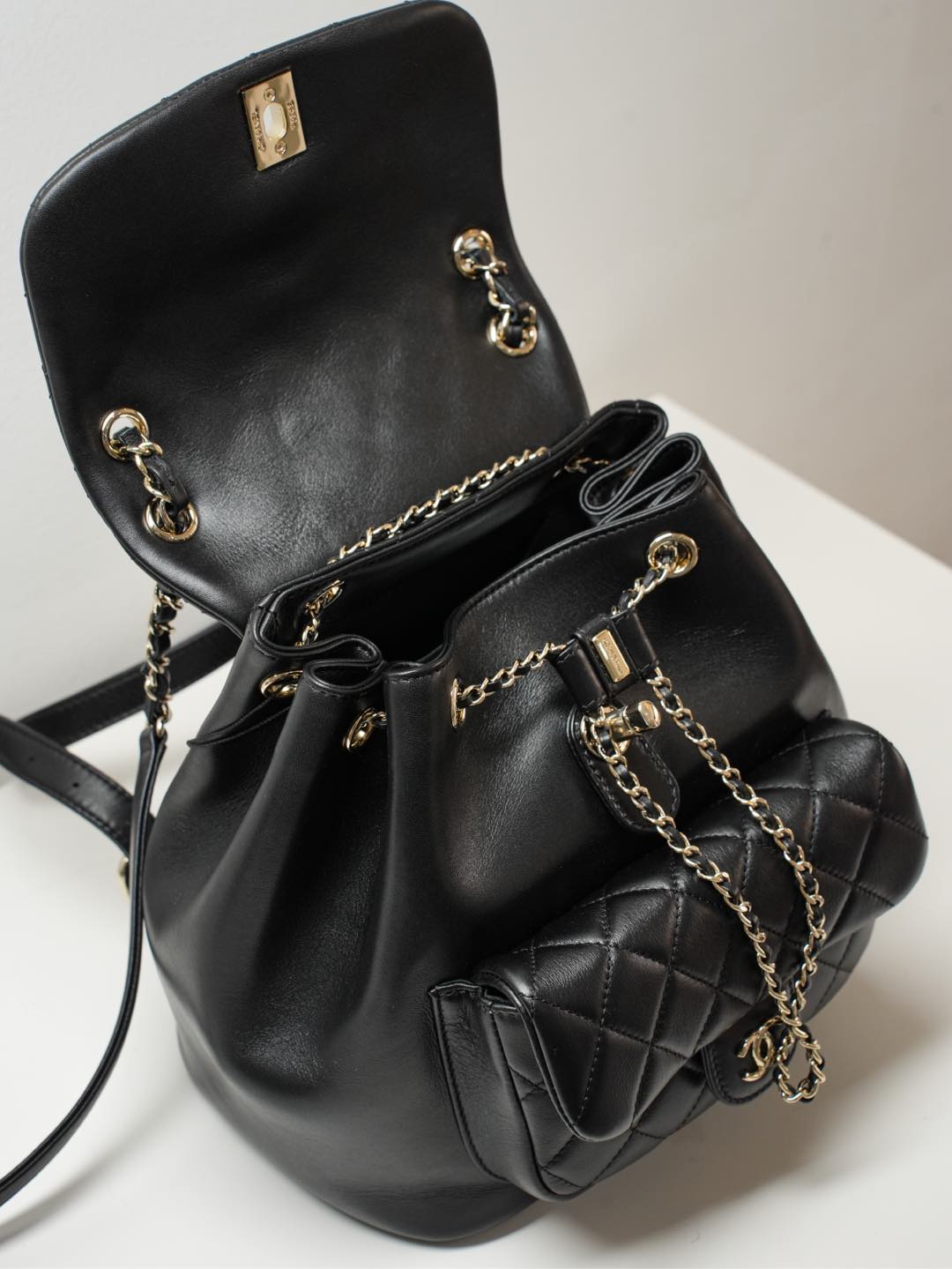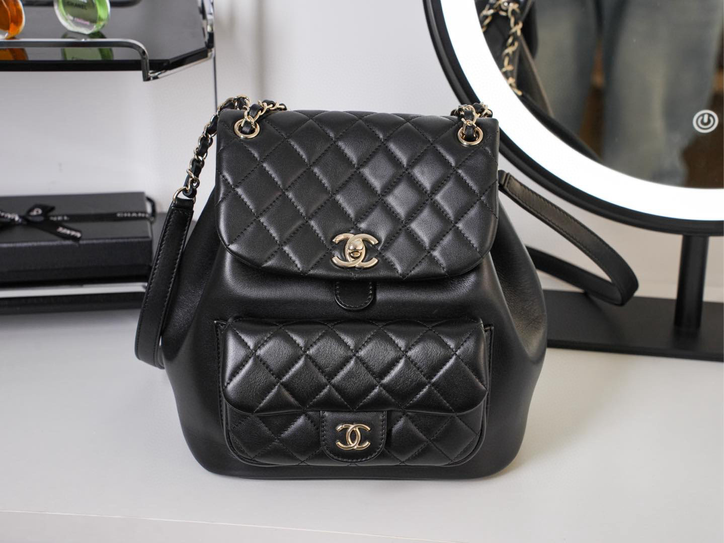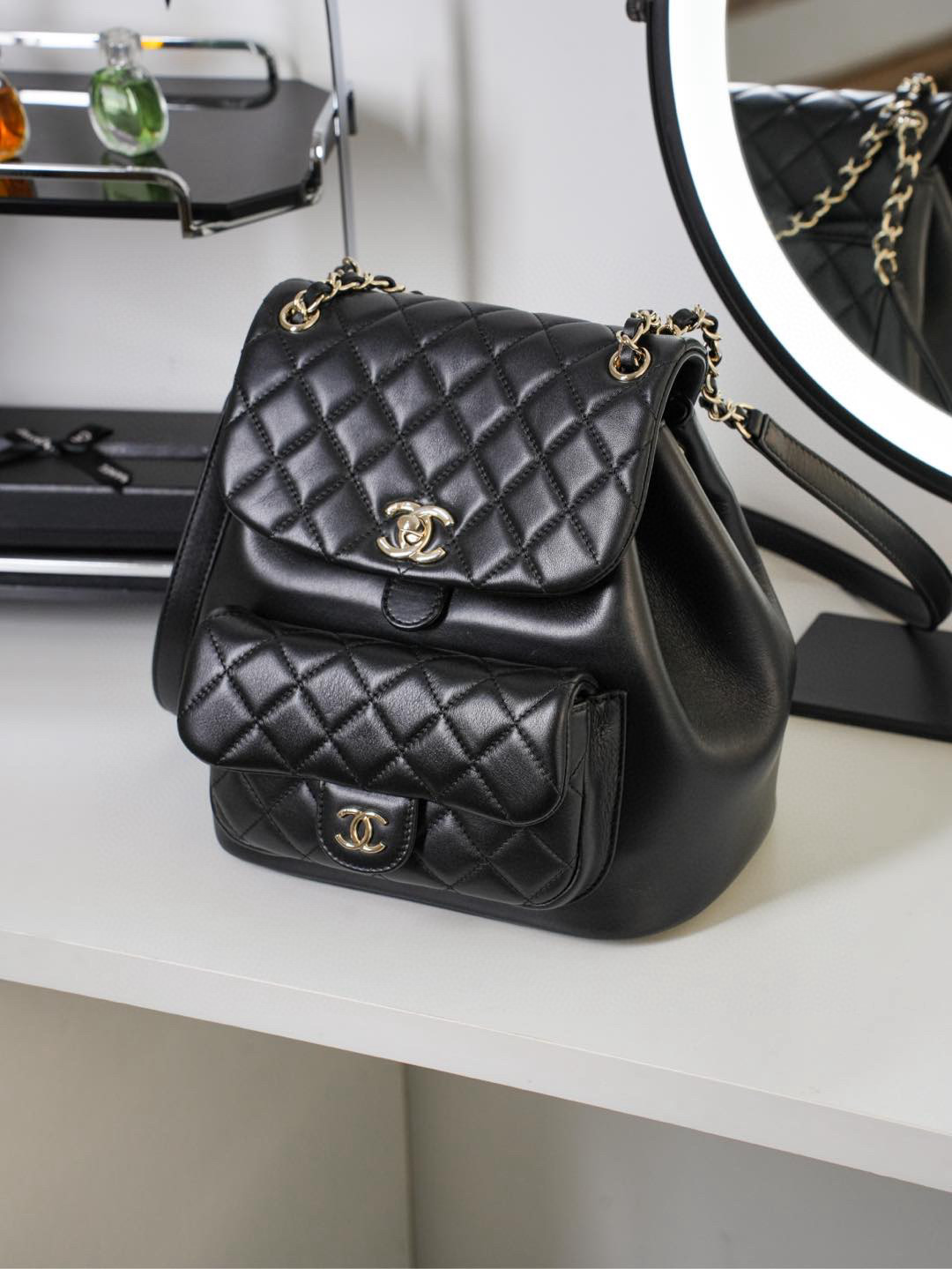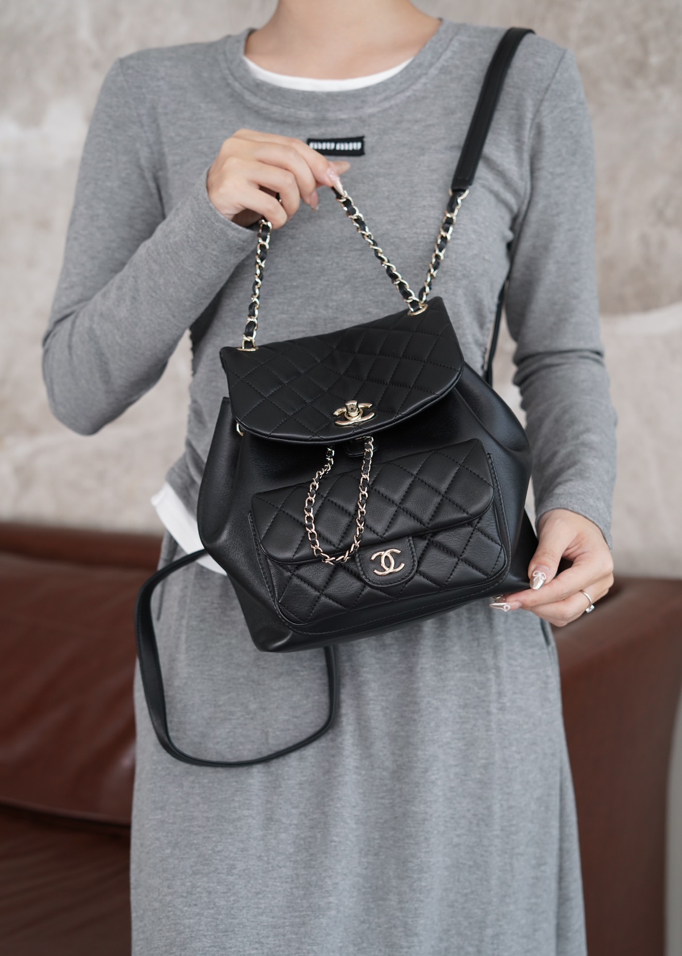 原厂小牛皮 一眼就爱上的双肩链条Duma书包!采用了摔纹小牛皮,易打理更耐造 容量方面很感人,日常通勤收纳、轻松装扮 又酷又时髦,四季穿搭这颗无敌的少女心 双肩带有调节孔可调节,独特的设计感和满分的实用性
