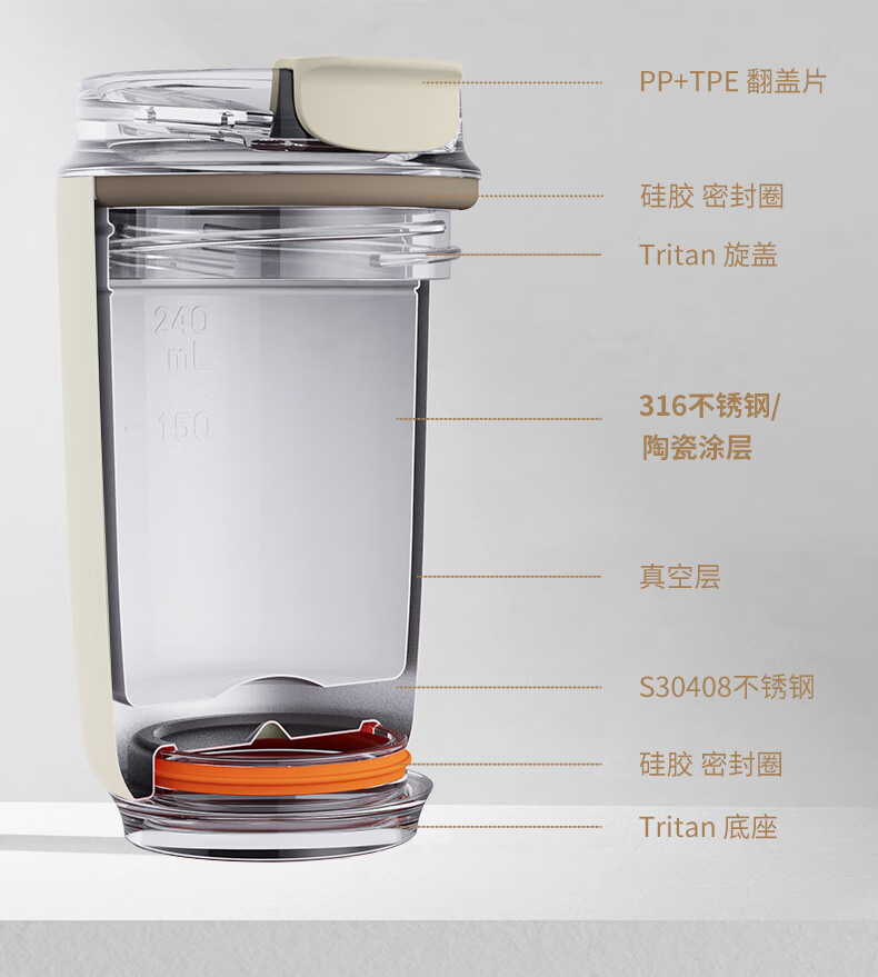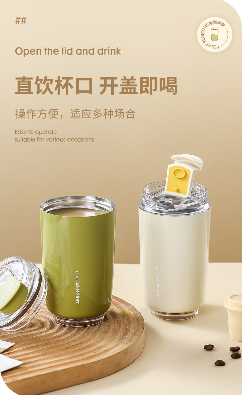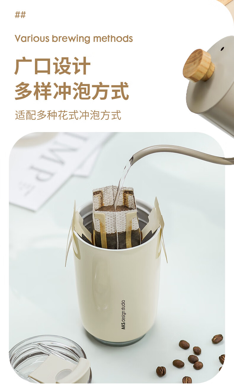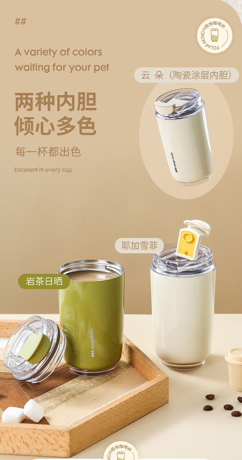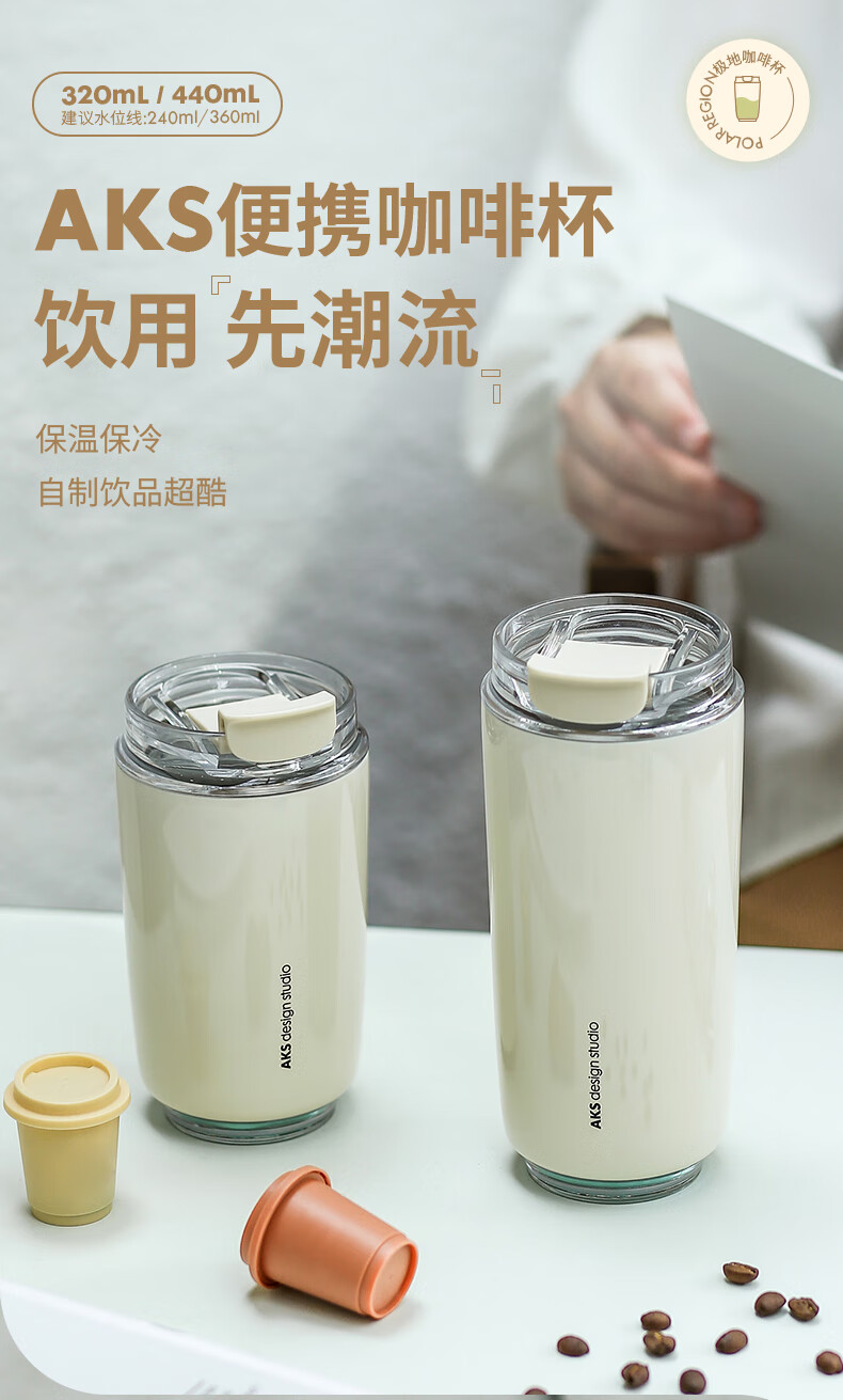 AKS咖啡杯陶瓷涂层便携随行杯密封保温水杯316不锈钢保温杯中秋送礼 AKS 631/AKS 632