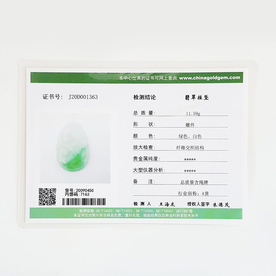 【天然正品】A货翡翠AU750玫瑰金镶天然细腻糯冰种飘辣阳绿如意(万事如意)翡翠吊坠项链45.3*24.1*5.7MM链长:45CM(长度可调节)女性现售价:4280!120825NJS21