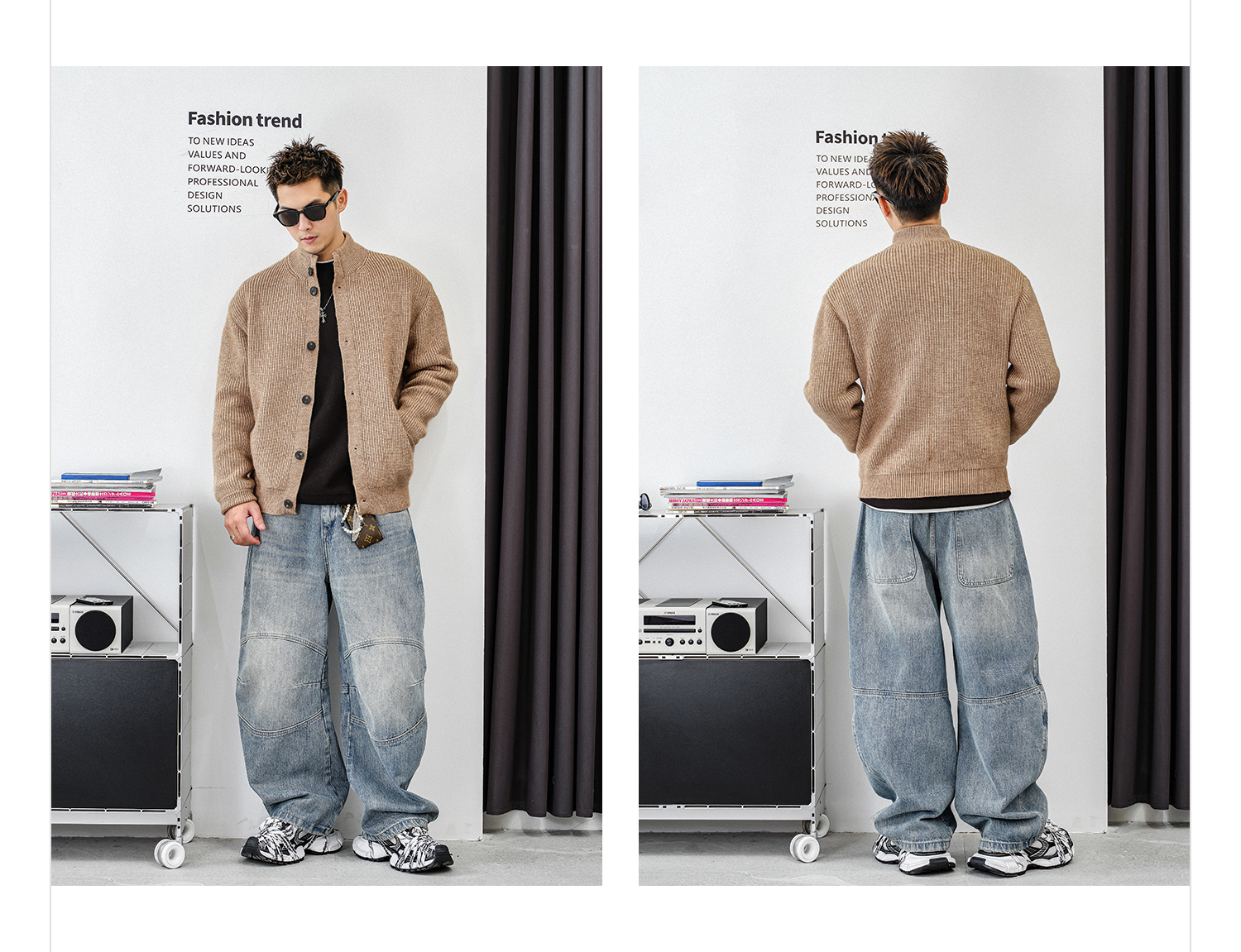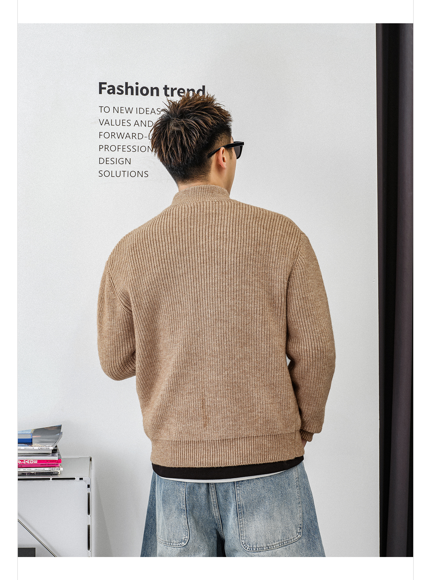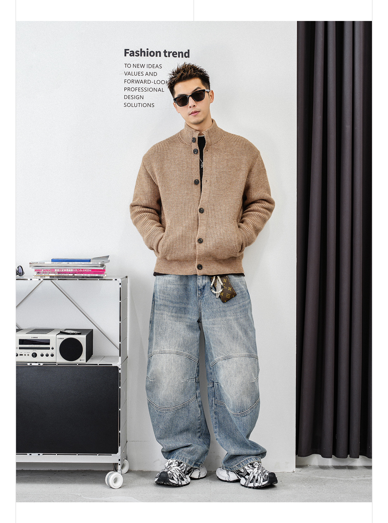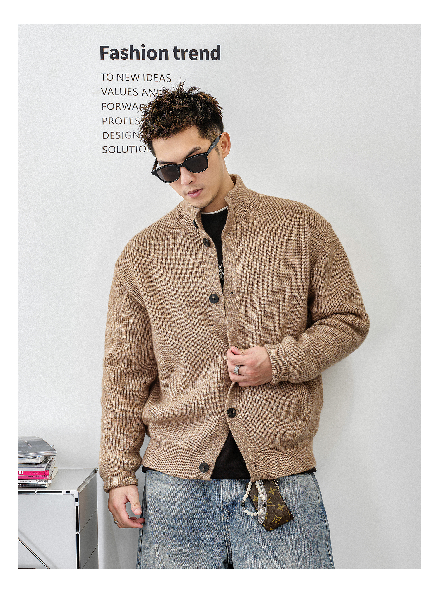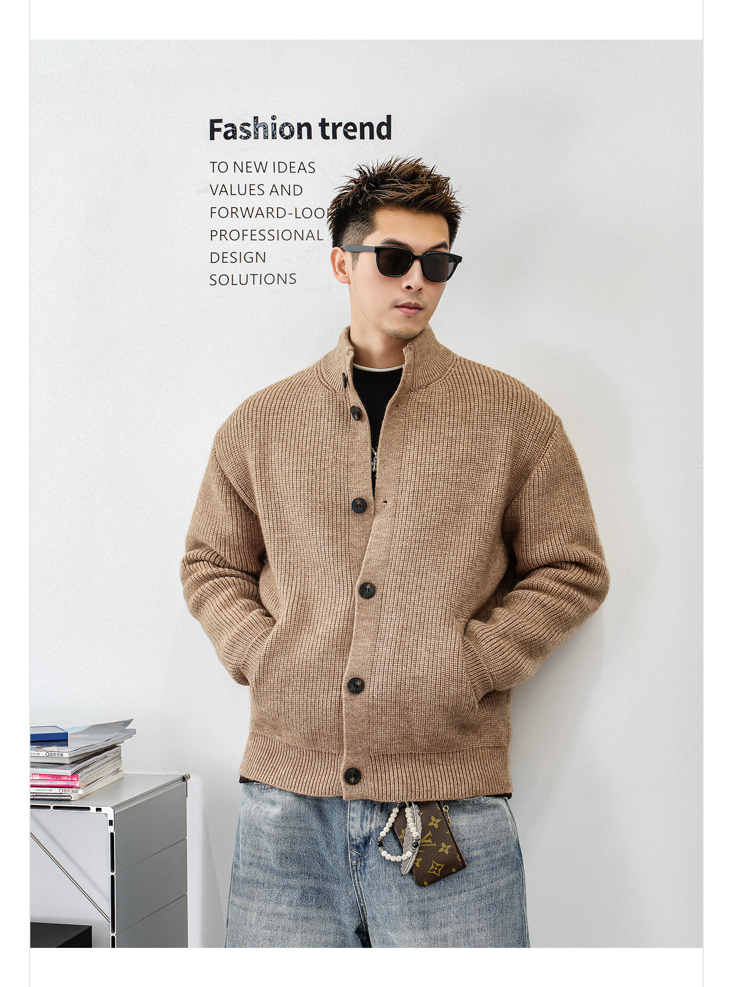 徐太浪【肌理感 保暖混纺】纽扣开衫立领毛衣男秋冬款针织衫外套