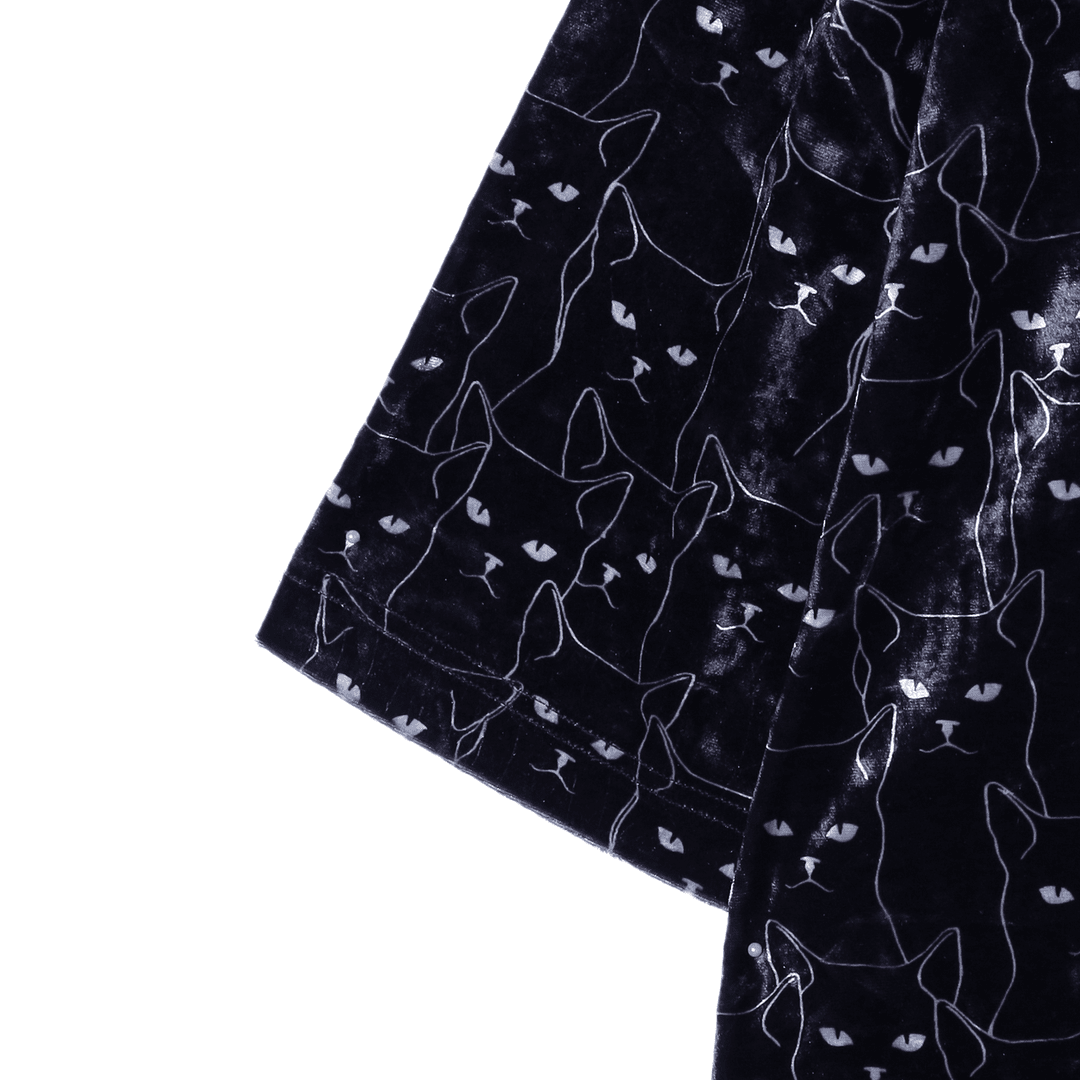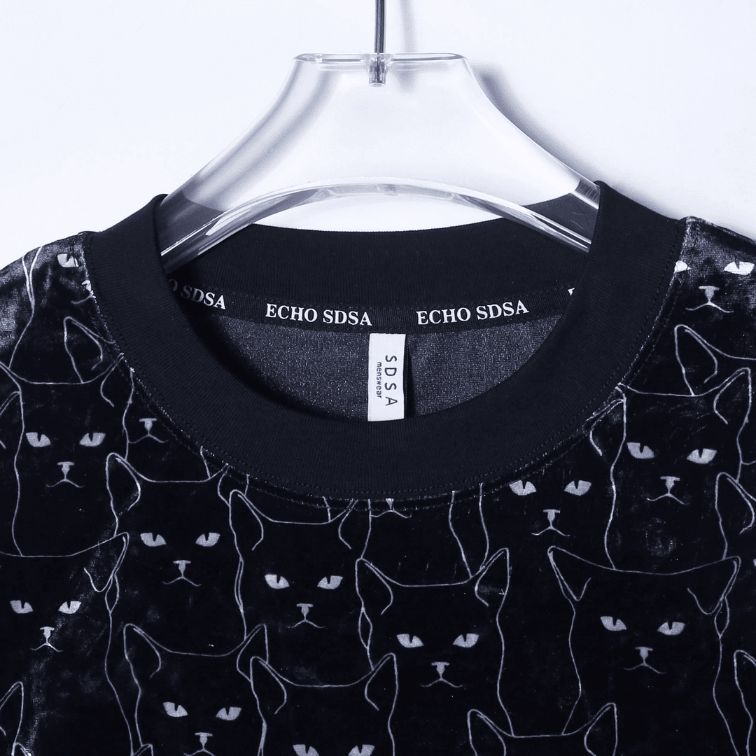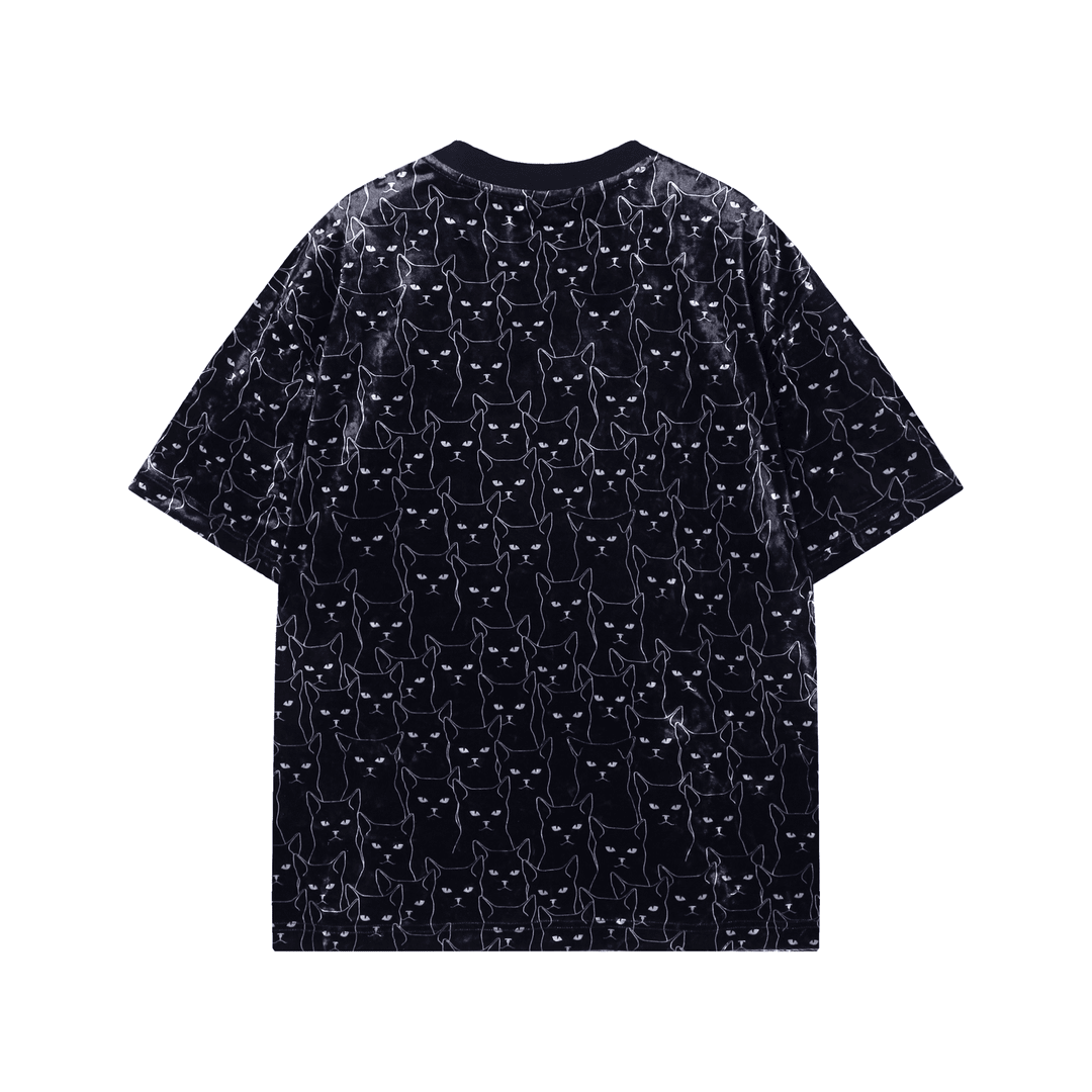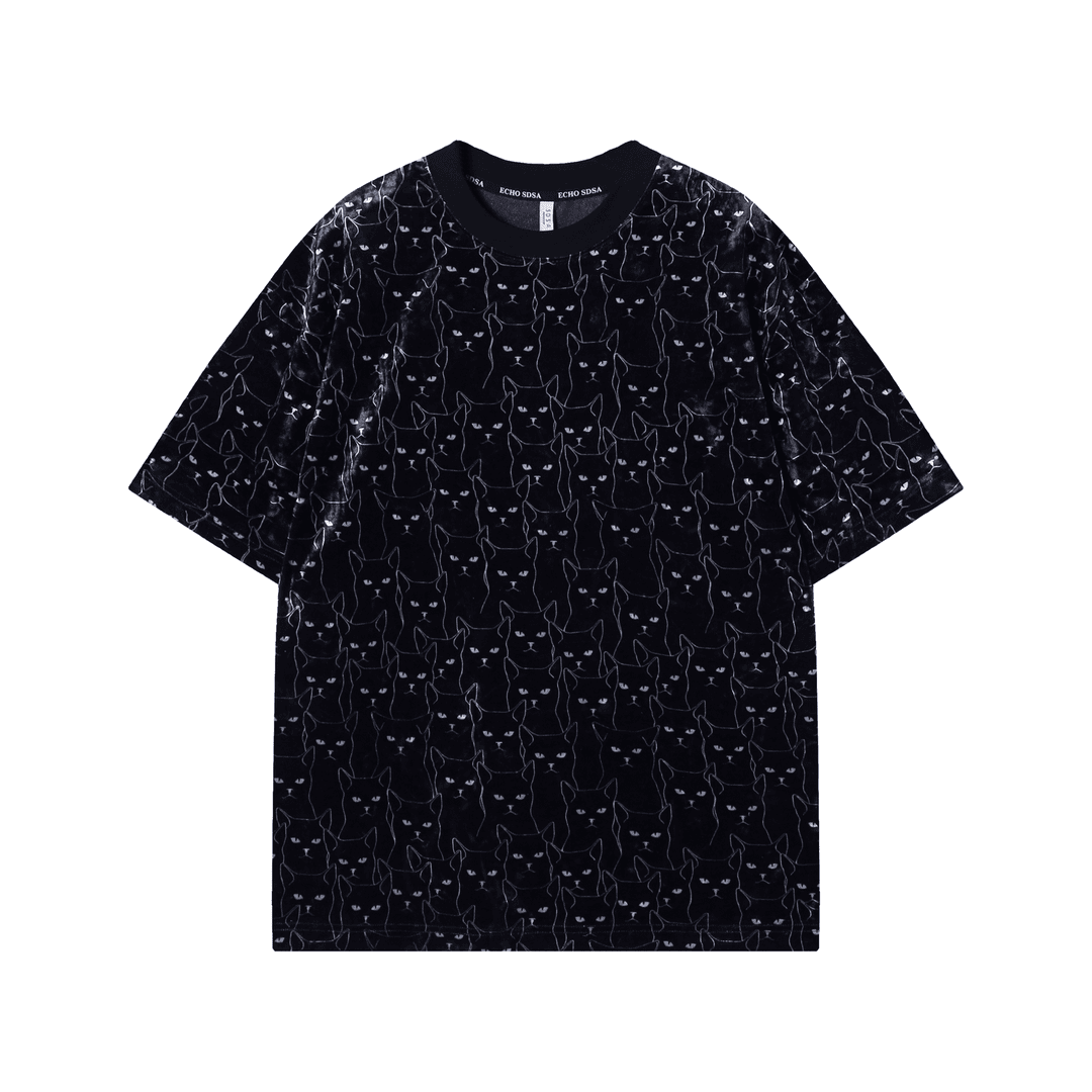 T1479新款时尚绒面满印猫咪印花男士短袖潮流百搭休闲上衣宽松T恤
