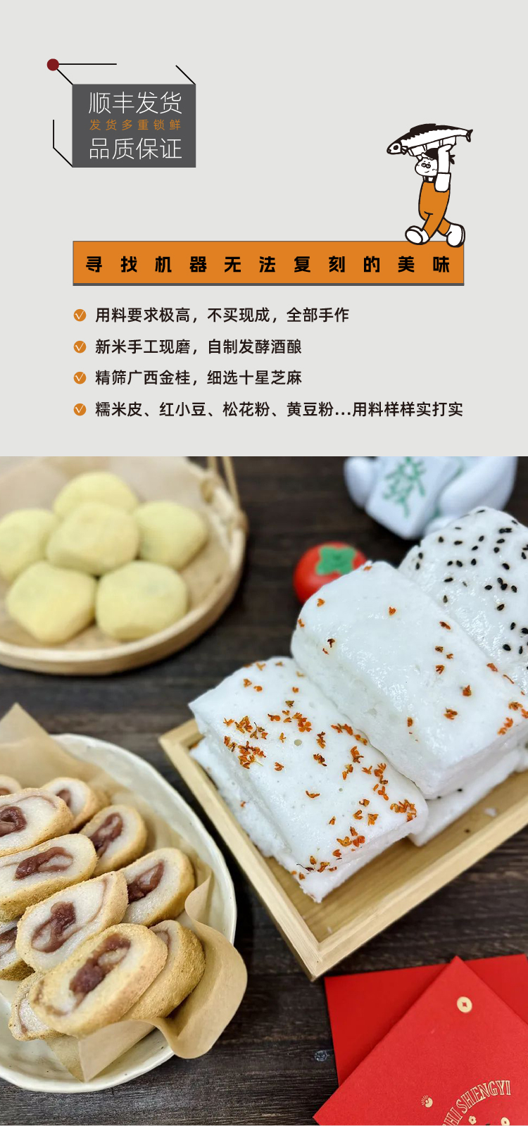 全家福4盒装:金桂花味水塔糕300g*1盒+黑芝麻味水塔糕300g*1盒+赤云卷260g*1盒+小金团250g*1盒