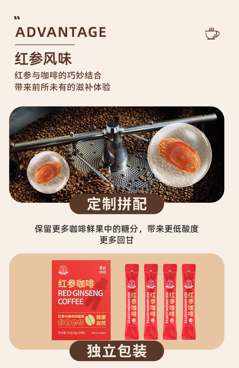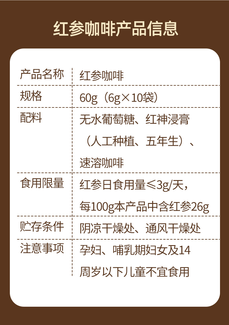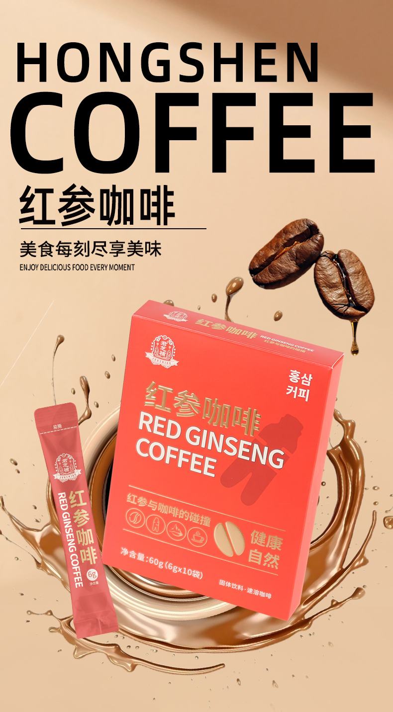 君芝補红参咖啡提神醒脑滋补养生6g*10条