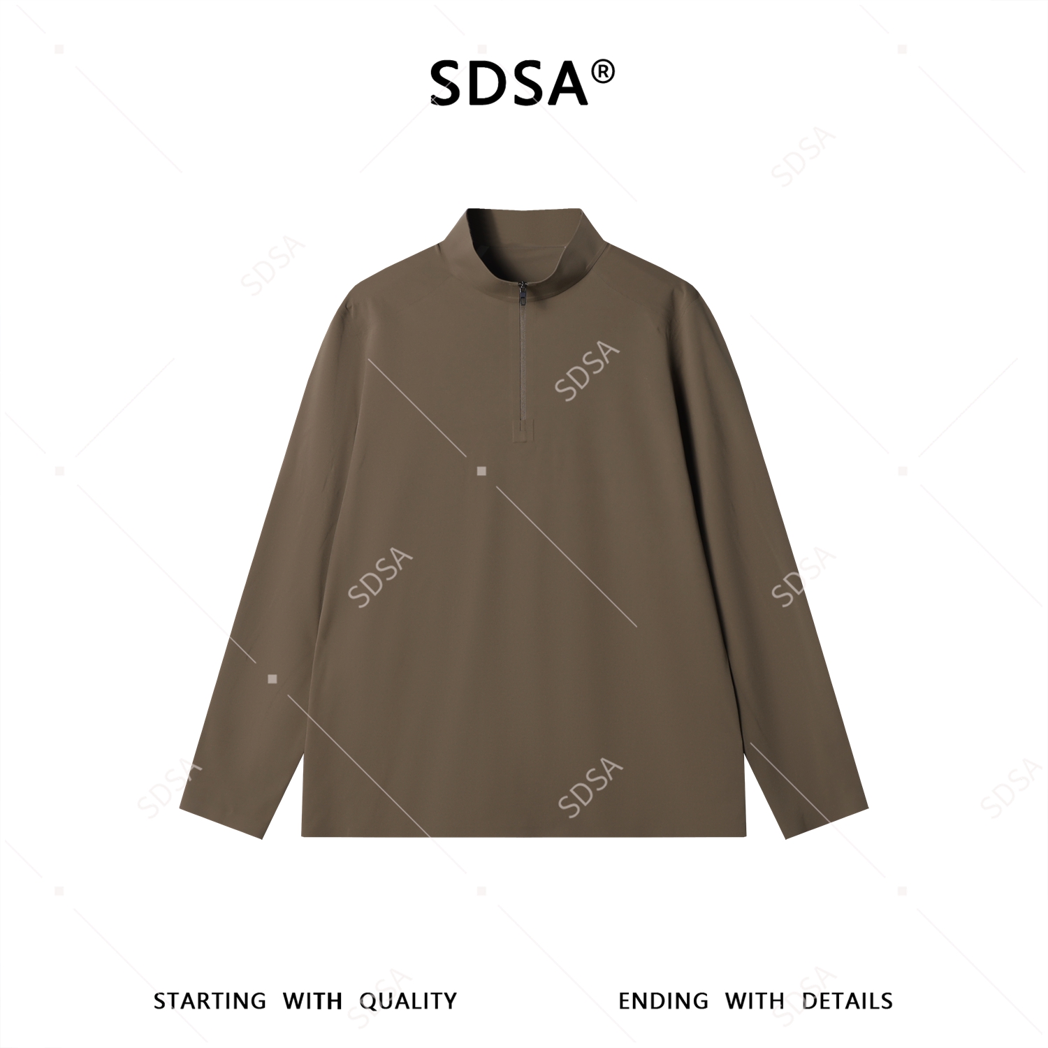 SDSA男装2026新款高贵轻奢时尚简约纯色半拉链立领长袖T恤百搭