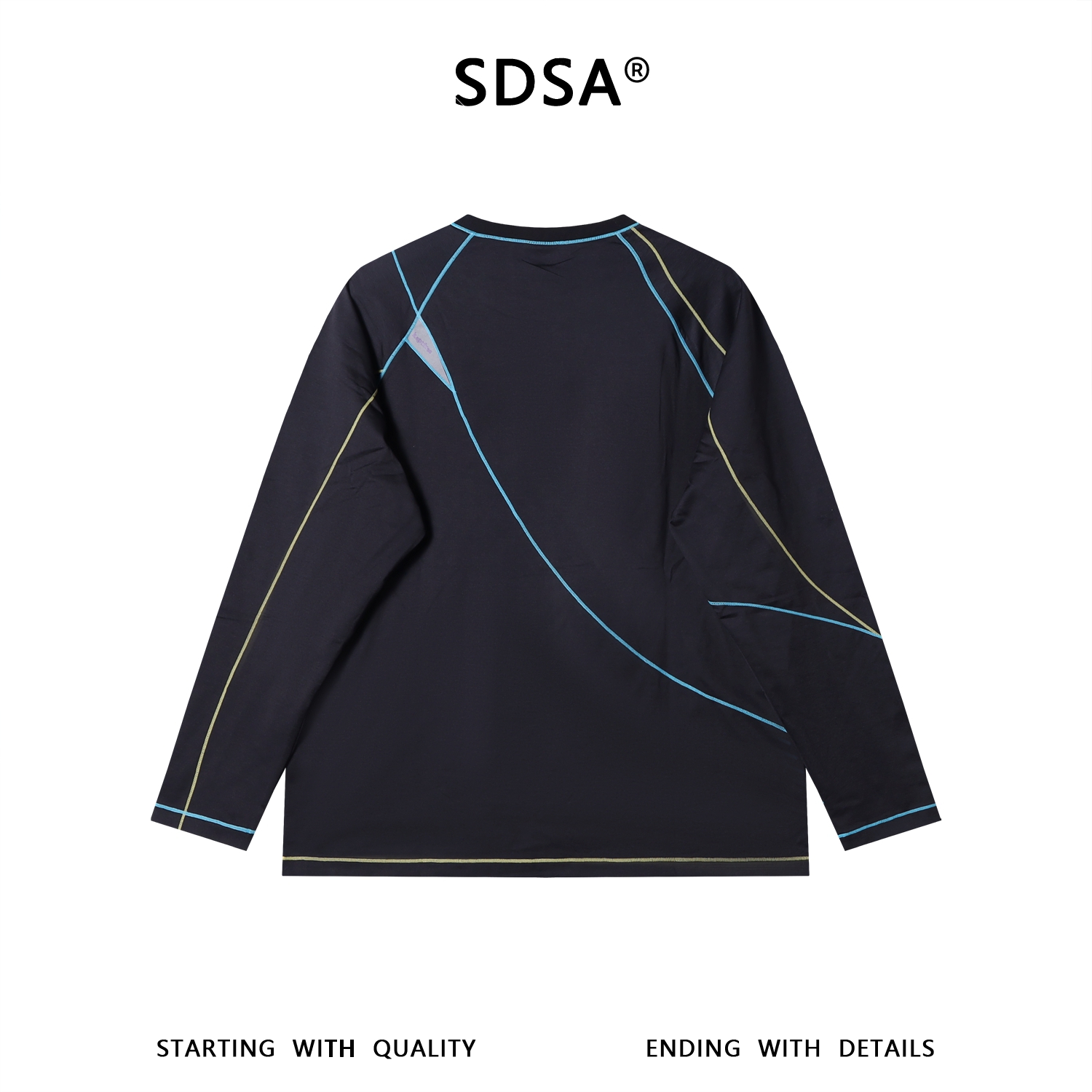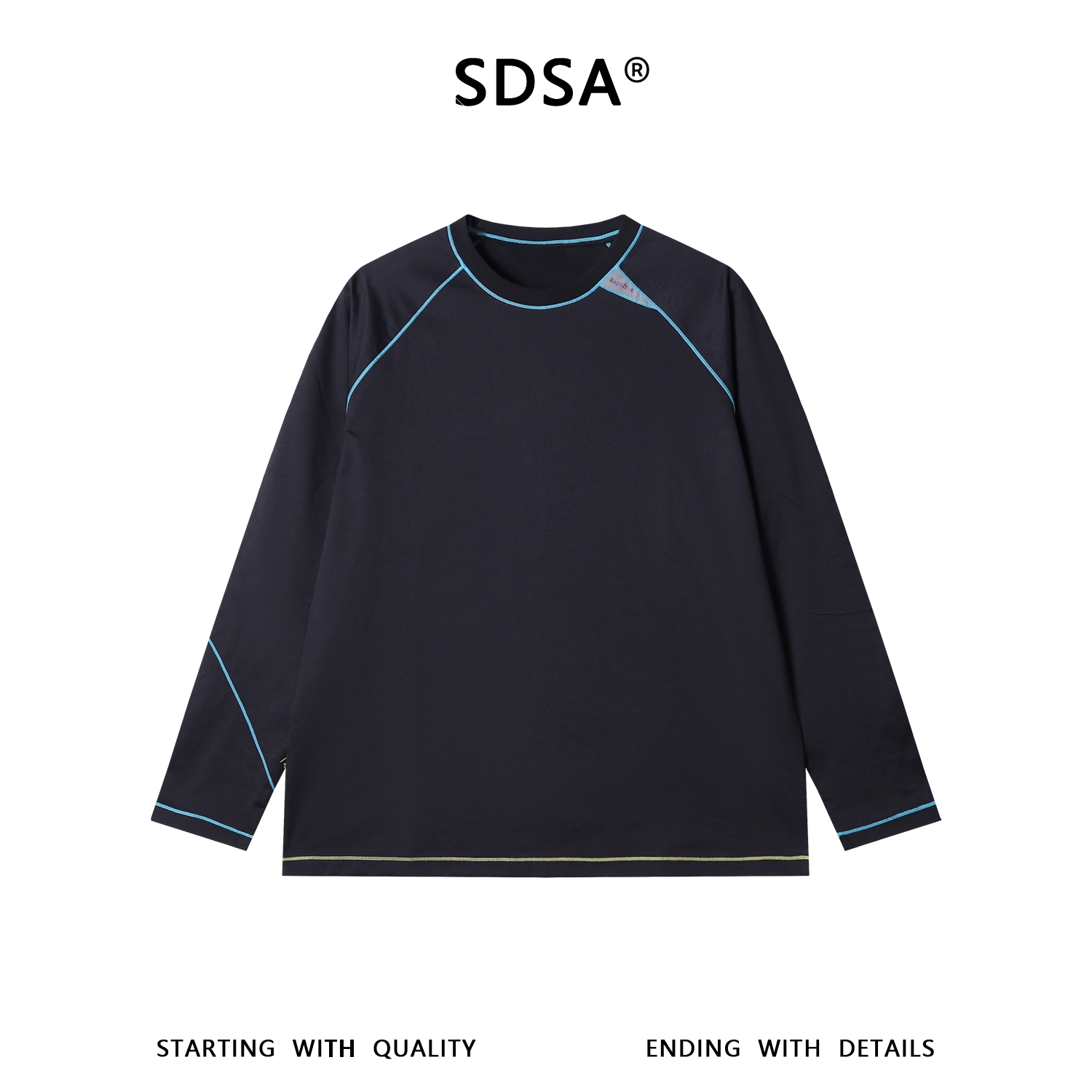 SDSA男装2026新款高贵轻奢潮牌撞色缝线设计圆领长袖T恤百搭休闲