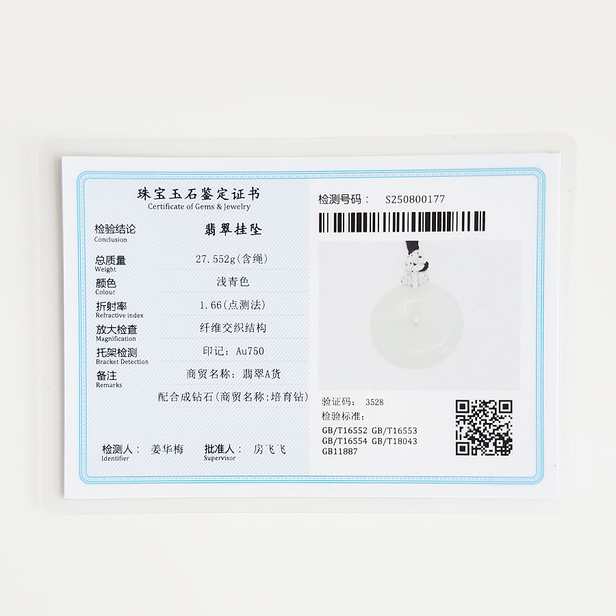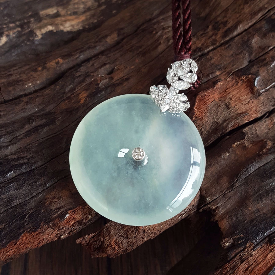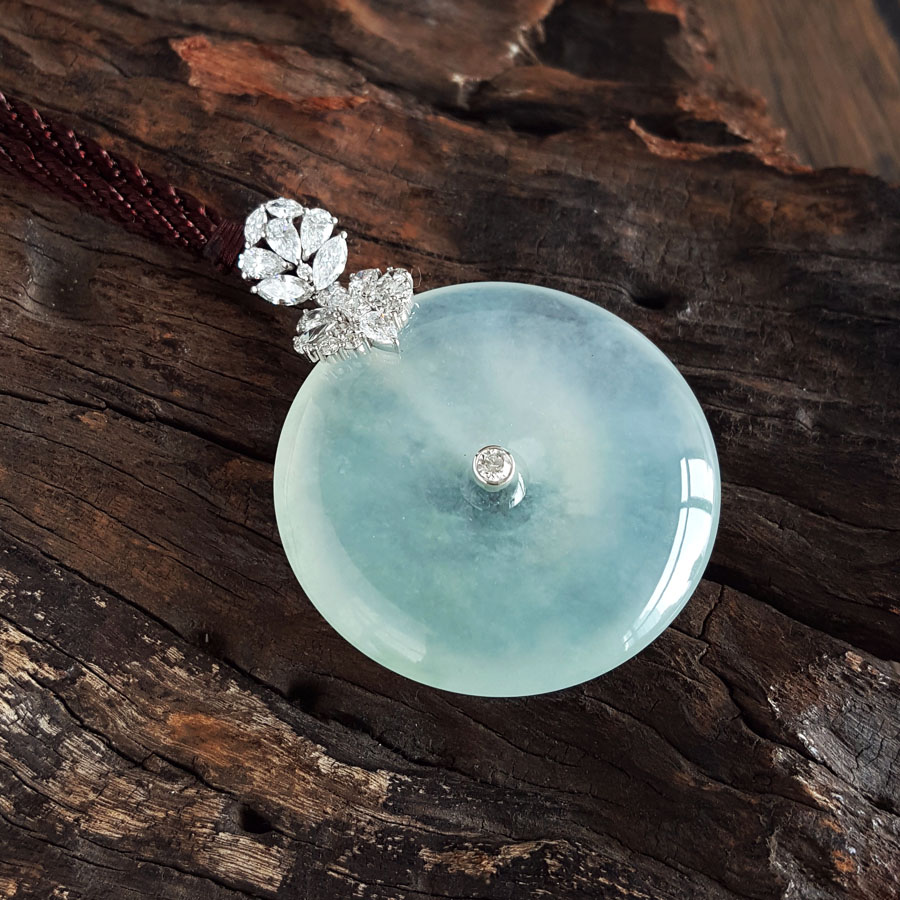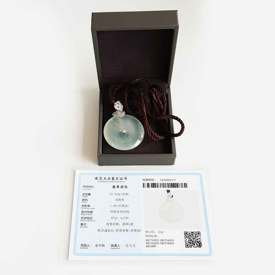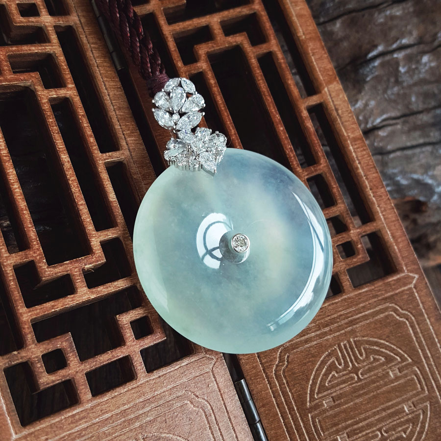名称 | AU750收藏级白金镶天然细腻高冰种晴水平安扣翡翠吊坠项链 |