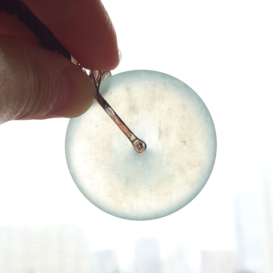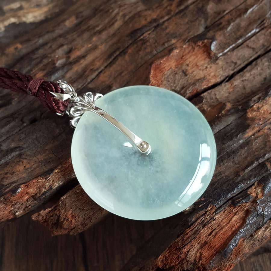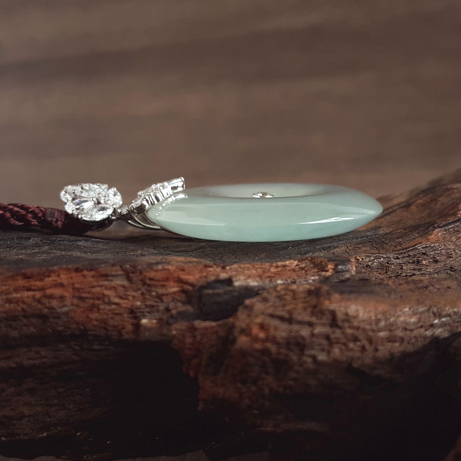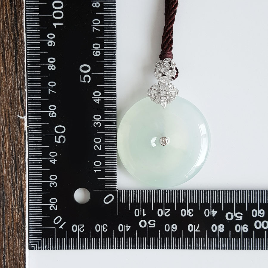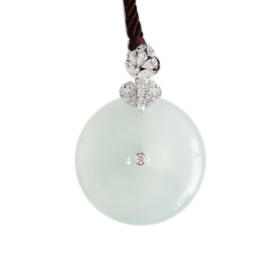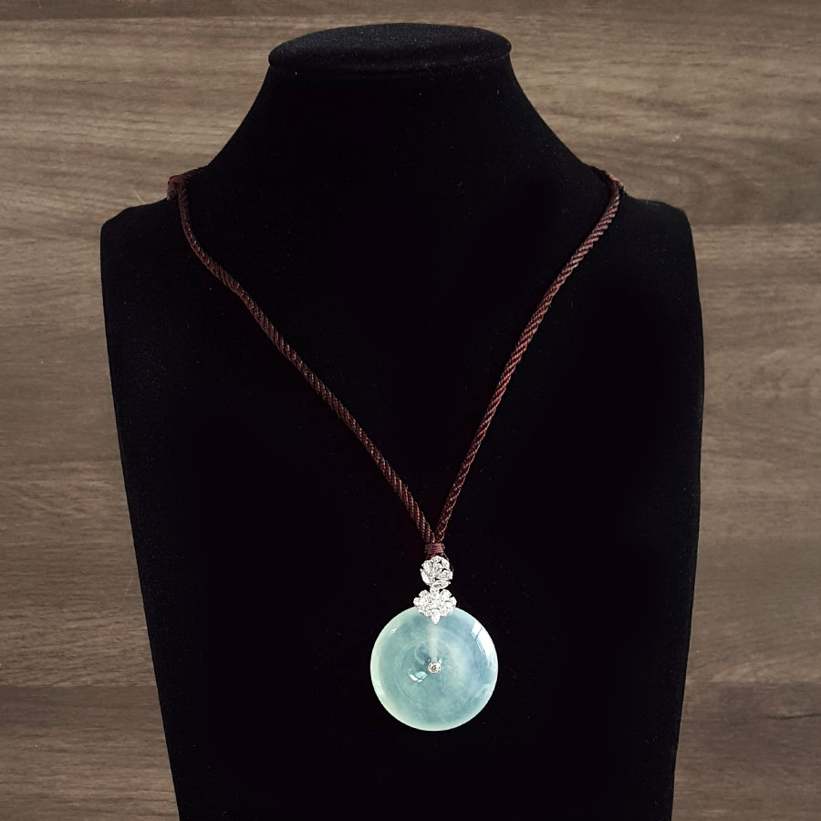 名称 | AU750收藏级白金镶天然细腻高冰种晴水平安扣翡翠吊坠项链 |