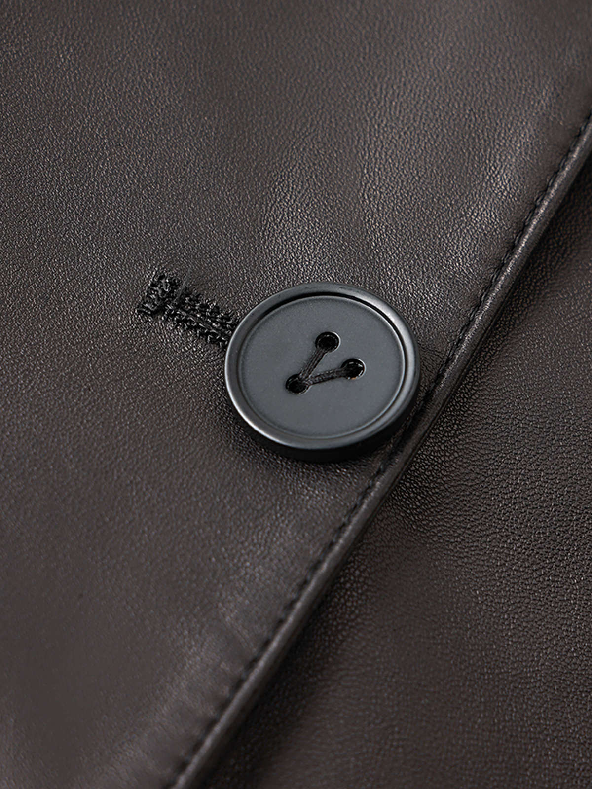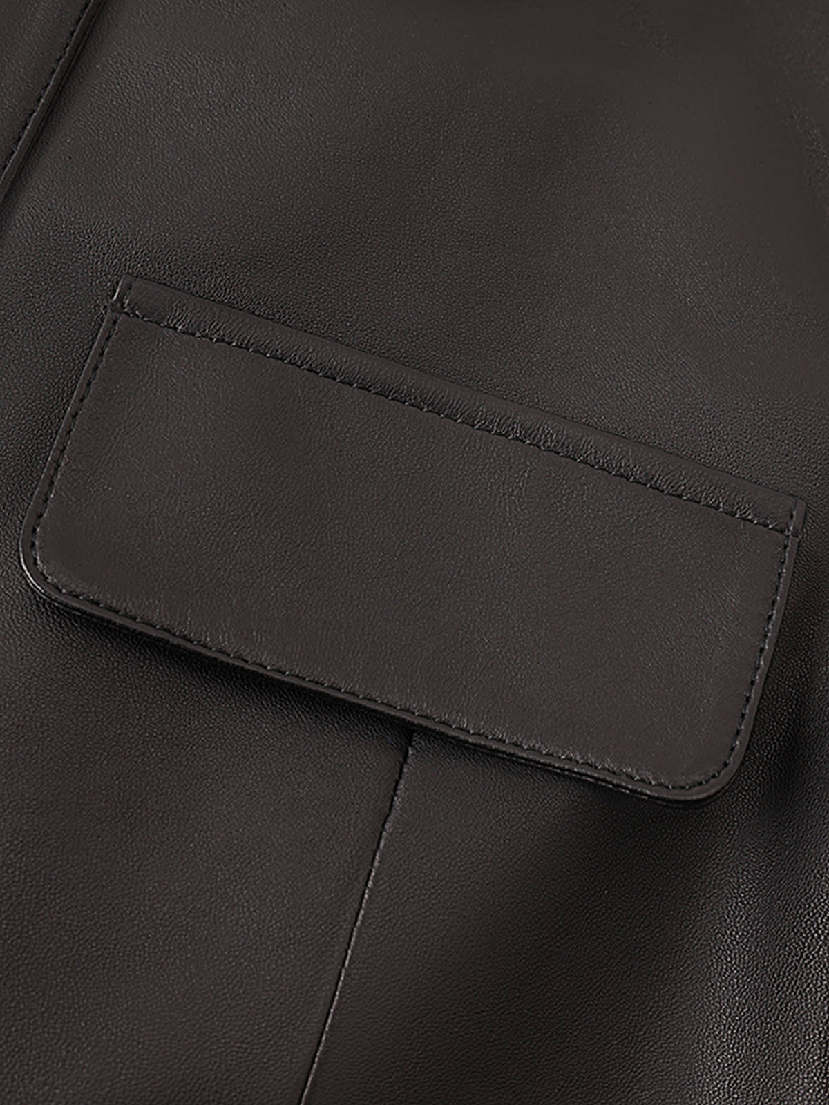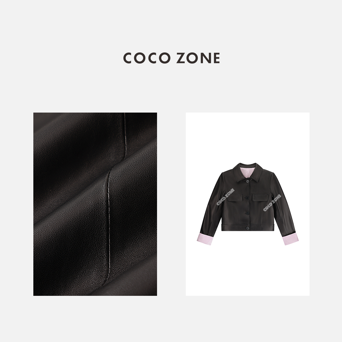 COCO ZONE 新中式皮衣翻领领短款气质羊皮夹克外套 CC2A0168