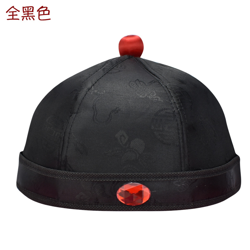 全黑色 男女地主瓜皮帽子唐装寿帽殡葬用品寿衣全套配件