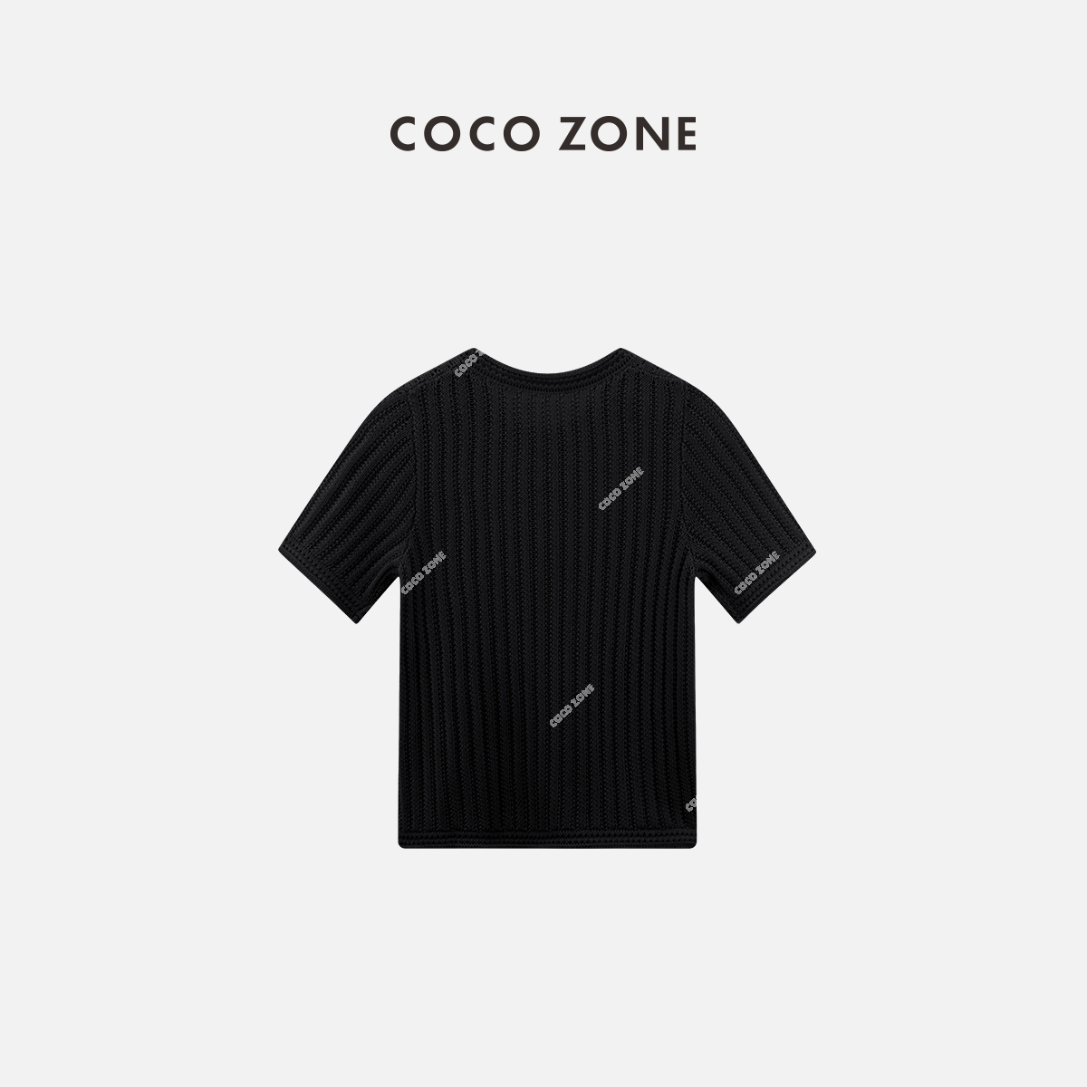 COCO ZONE夏季简约镂空短袖针织衫气质圆领上衣CC1B0677