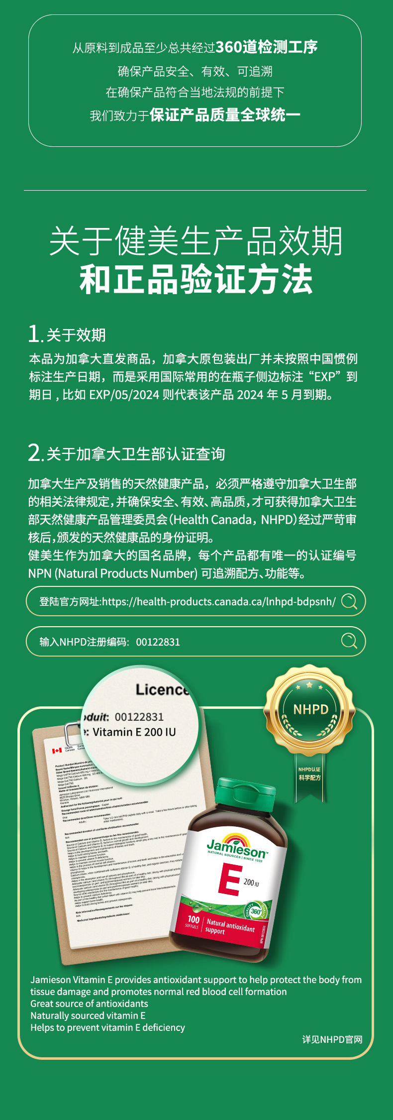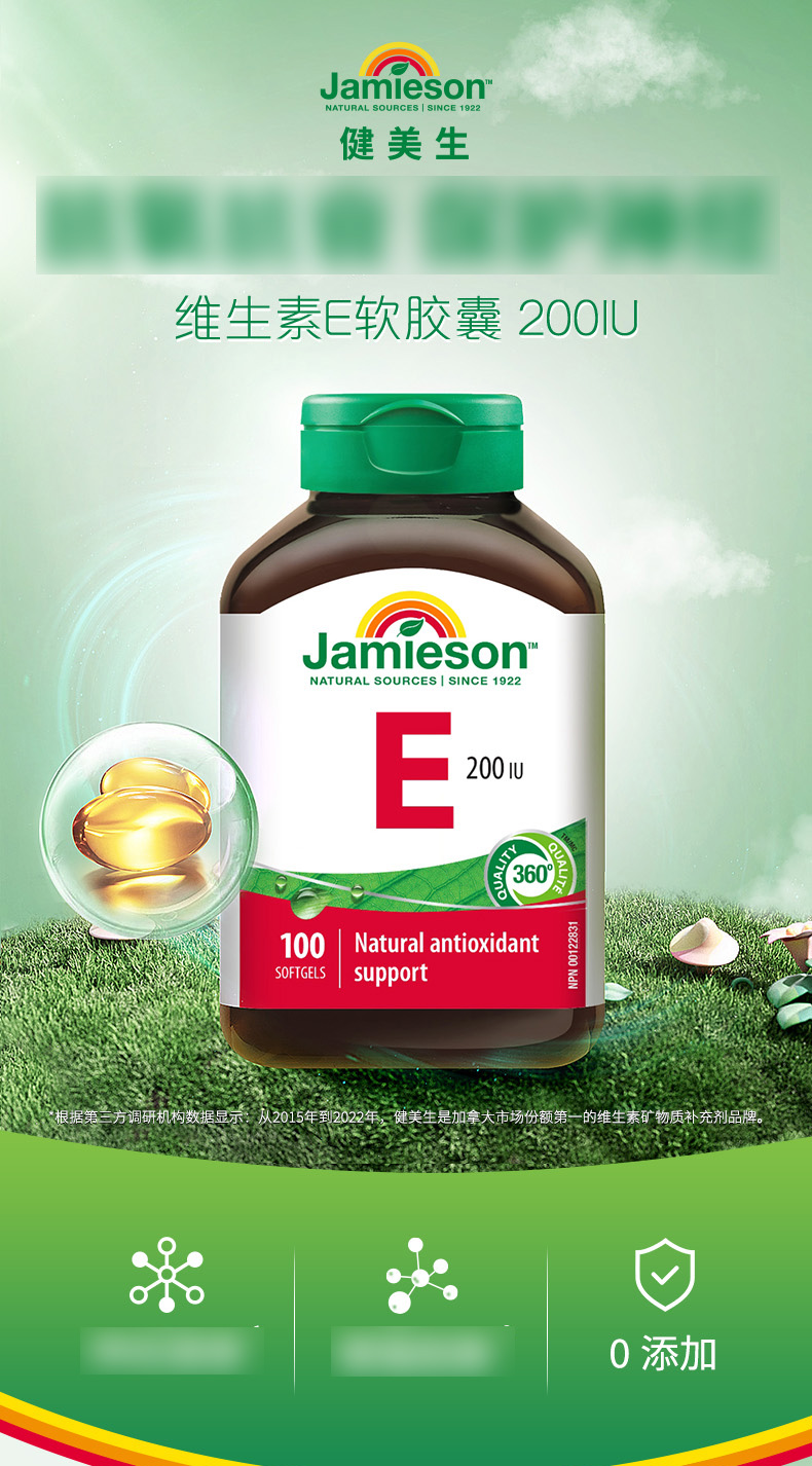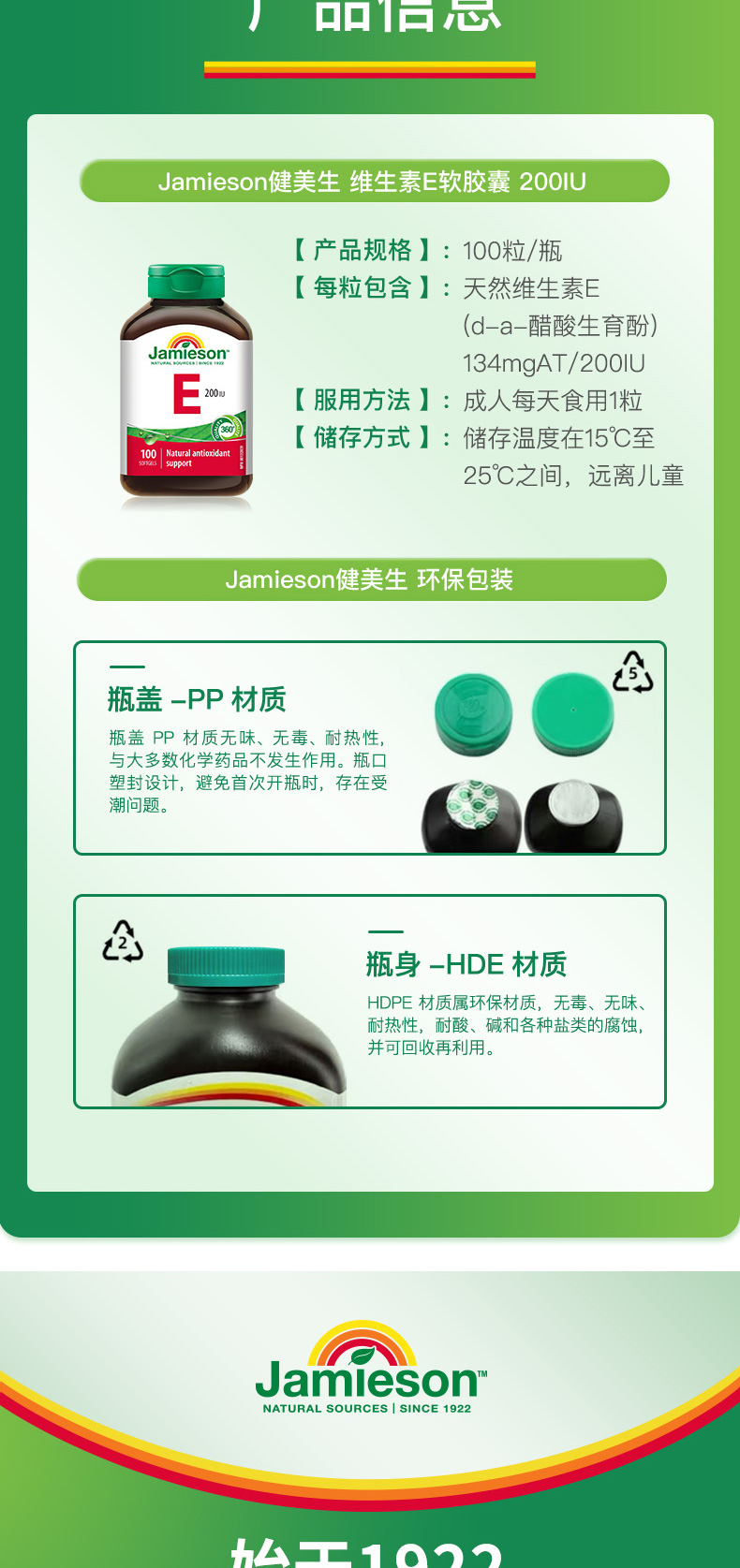 【分销】健美生高含量维生素E 200IU 100粒/瓶源自优质大豆精华 零添加海外进口