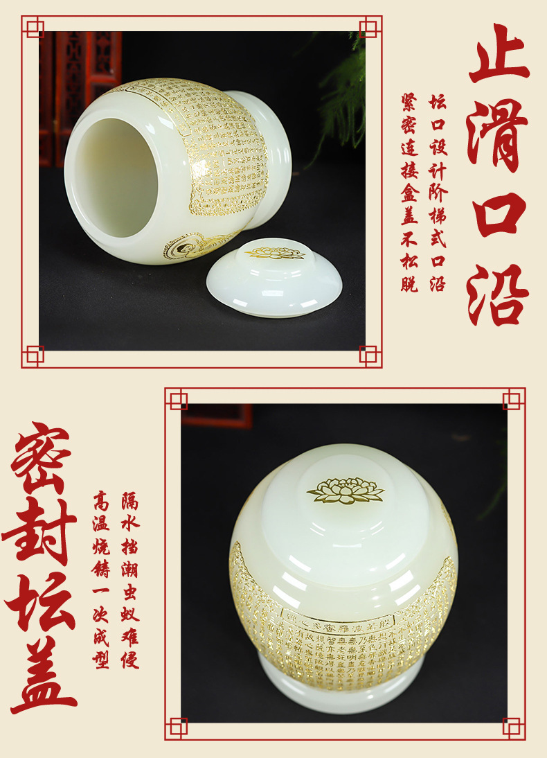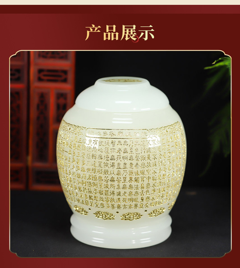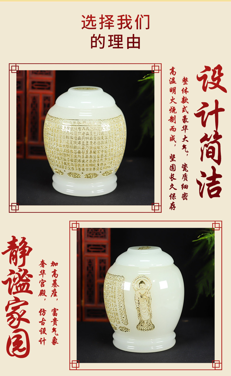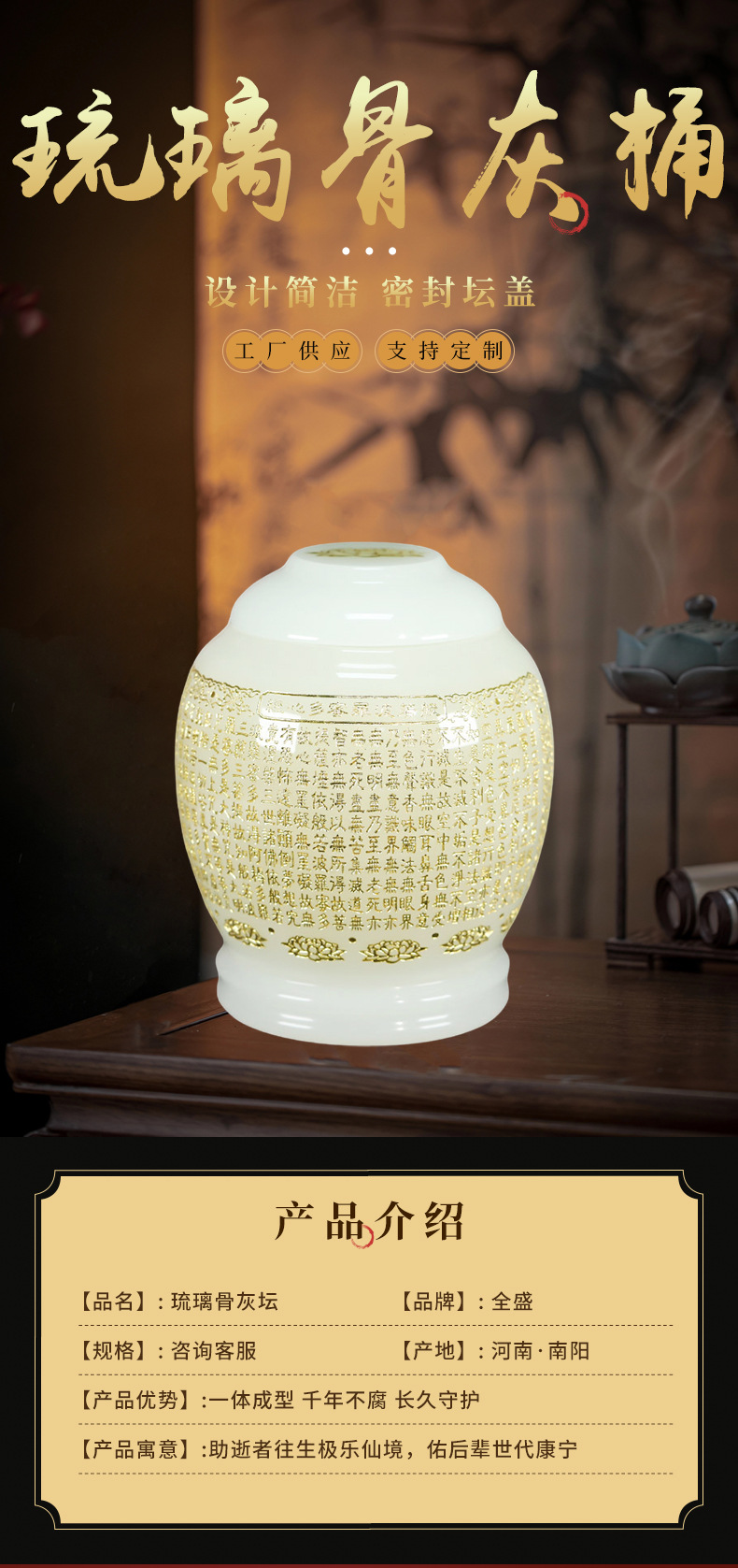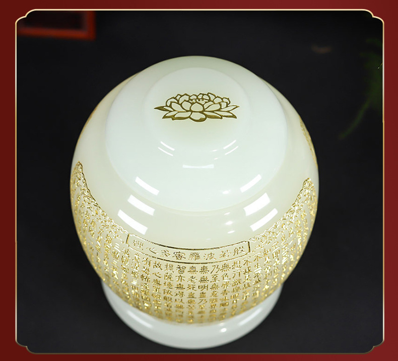 白玉琉璃地藏王骨灰桶殡葬用品骨灰坛菩萨心经骨灰盒18*23cm