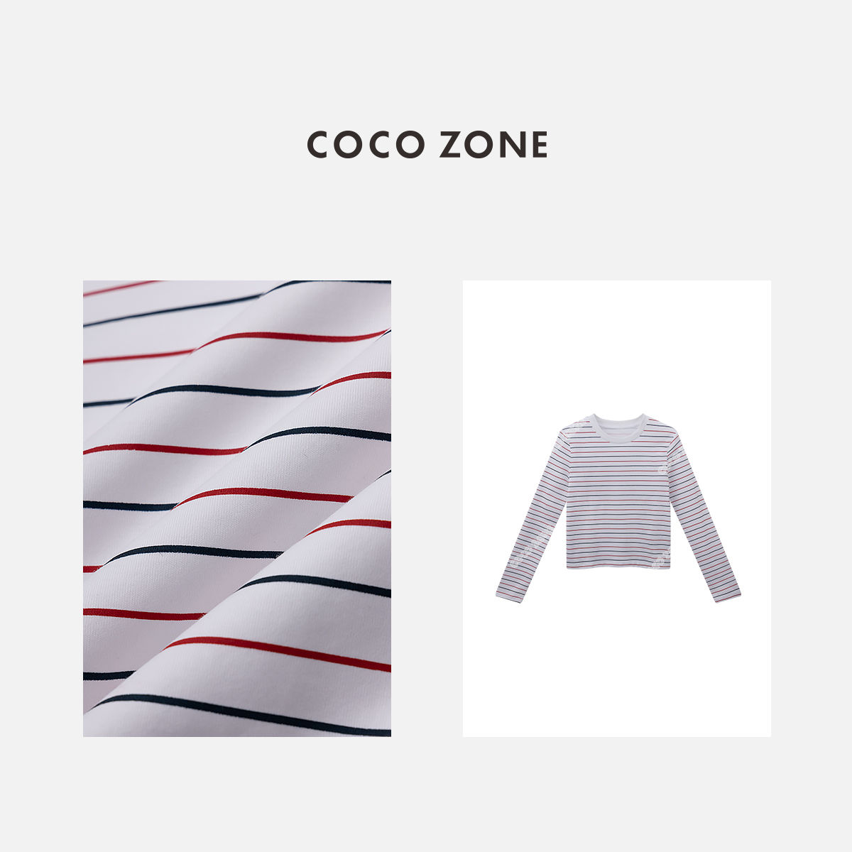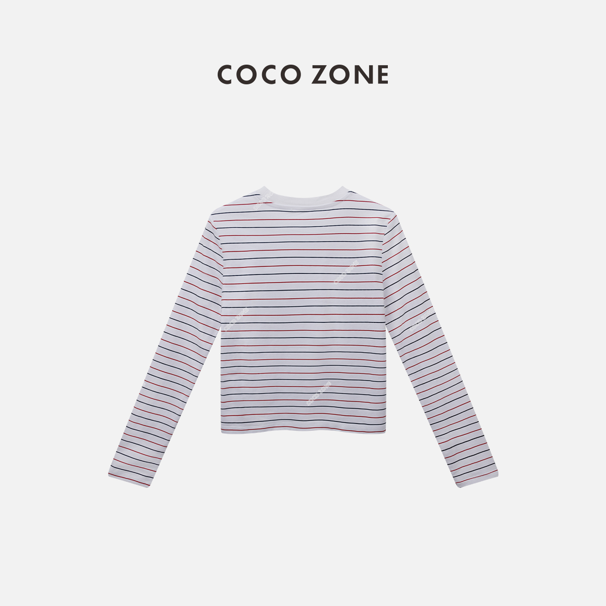 COCO ZONE100"彩条"棉夏季休闲条纹撞色长袖T恤打底衫上衣CC1A0577