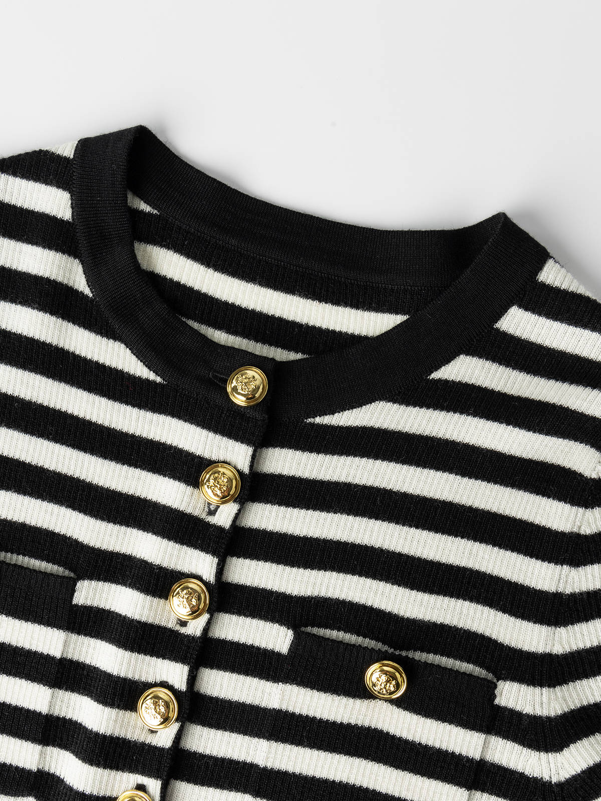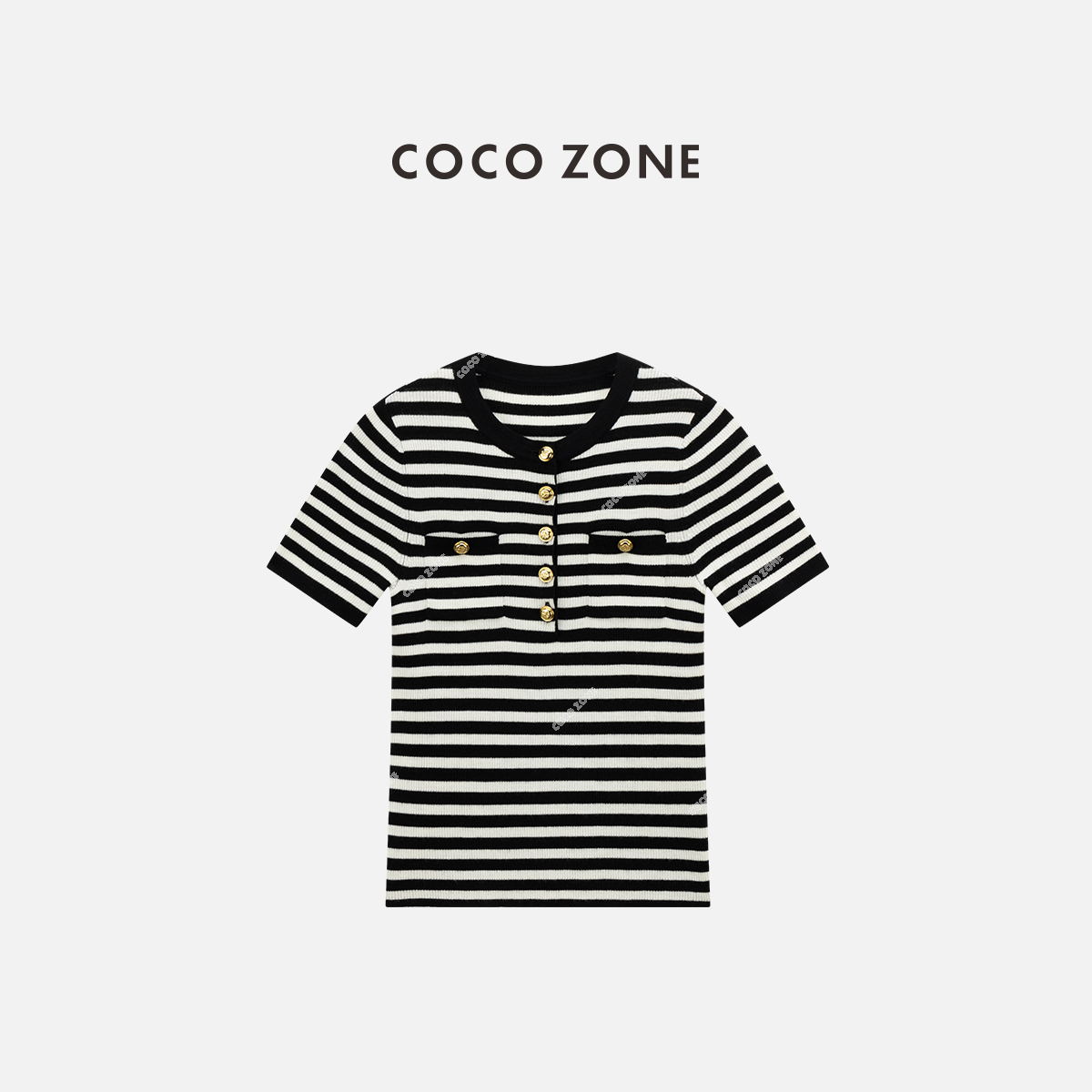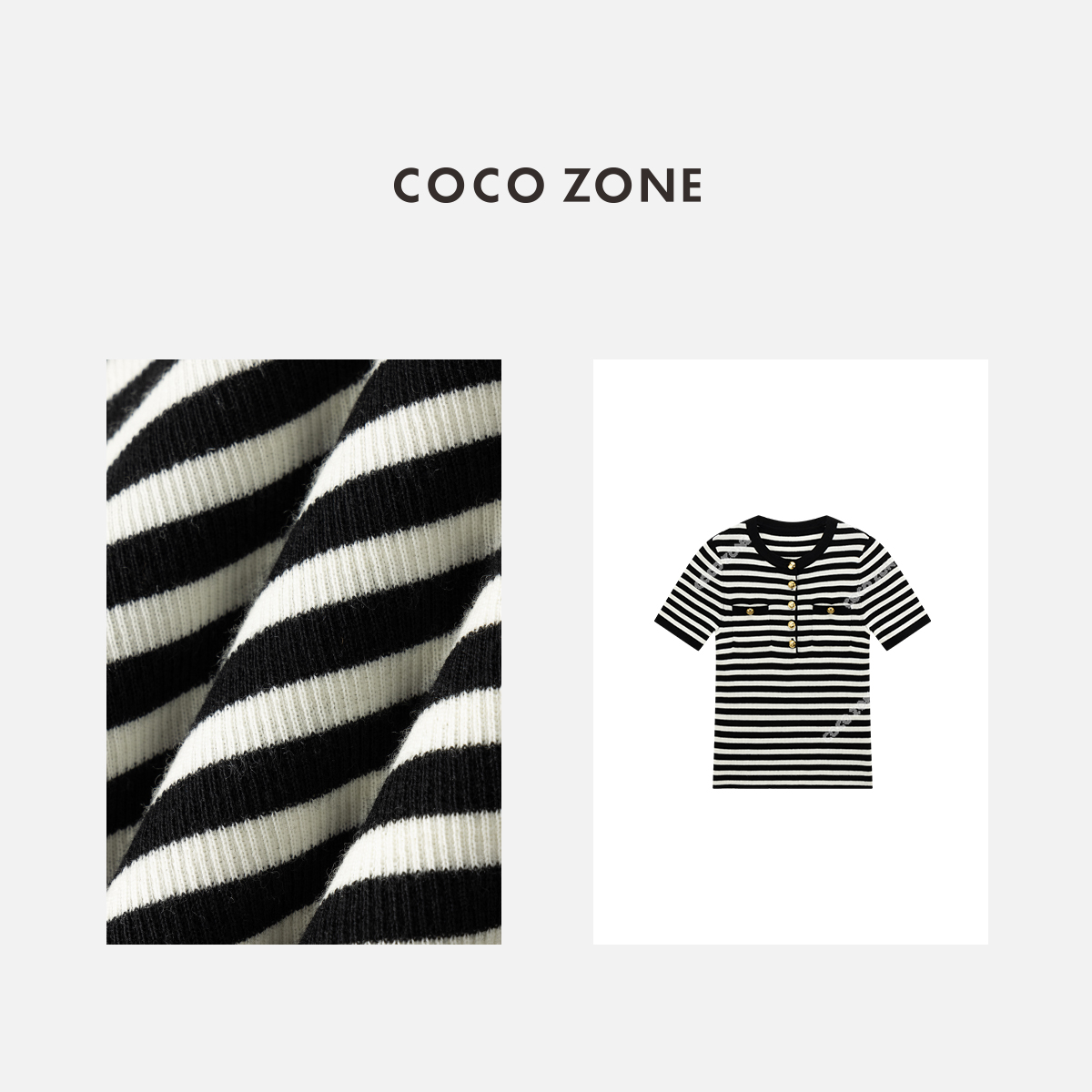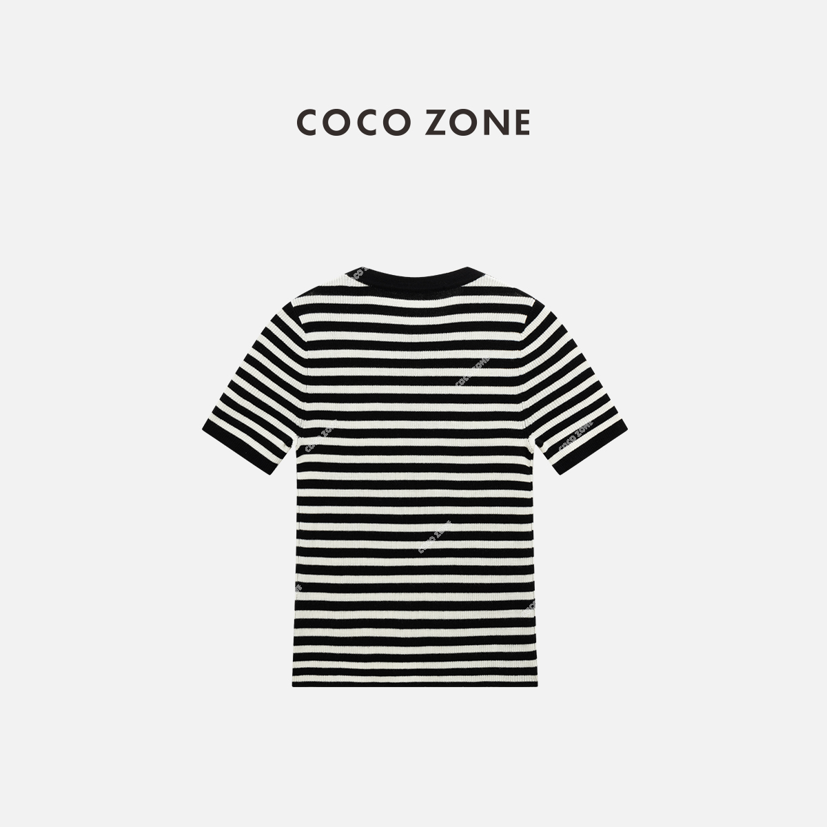 COCO ZONE 100绵羊毛条纹圆领短袖针织衫 CC1C1627