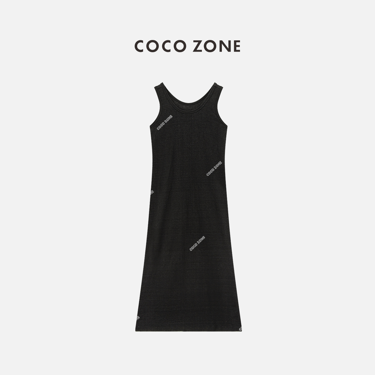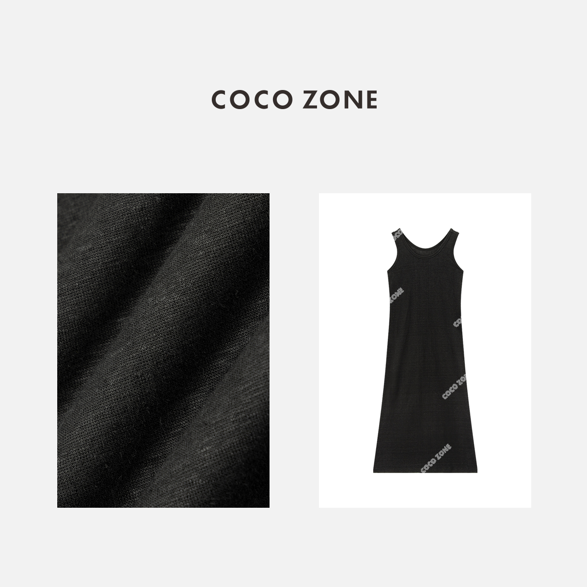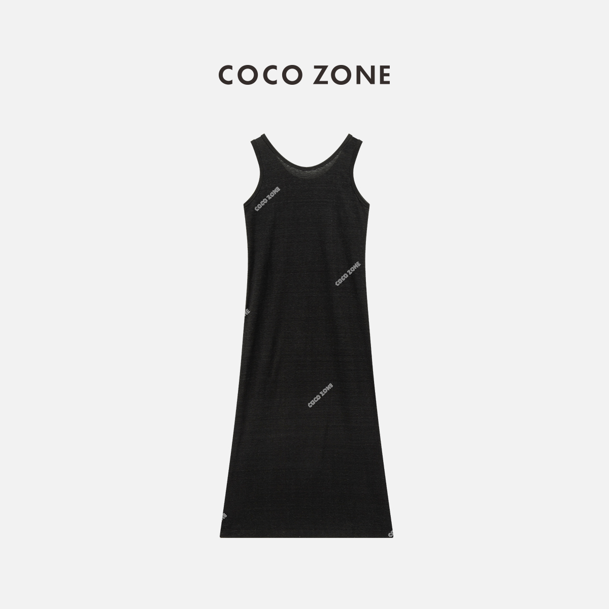 COCO ZONE"麻感连衣裙“夏季轻薄纯色背心连衣裙时尚高级感无袖A字长裙CC1B0992