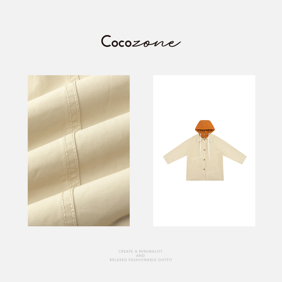 COCO ZONE 春季撞色连帽抽绳休闲中长款外套CD1A0045
