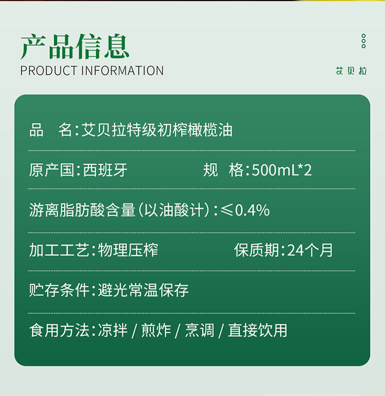 艾贝拉特级初榨橄榄油礼盒500ml*2