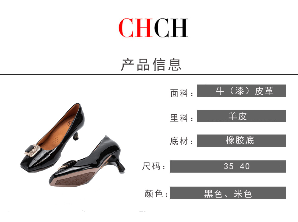 CHCH平衡鞋牛漆皮百搭高跟鞋气质通勤CN1B5222