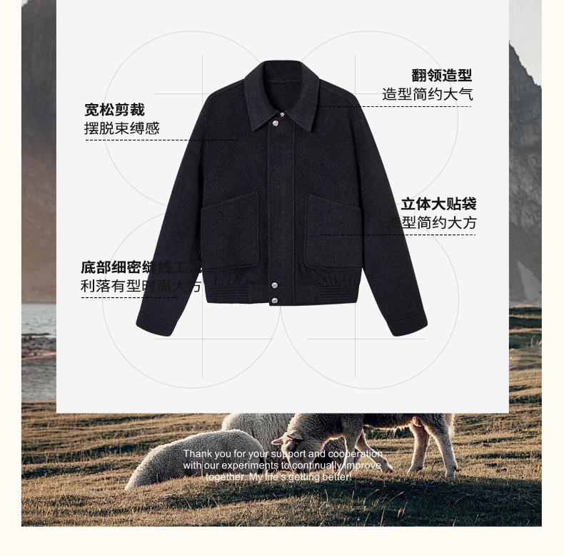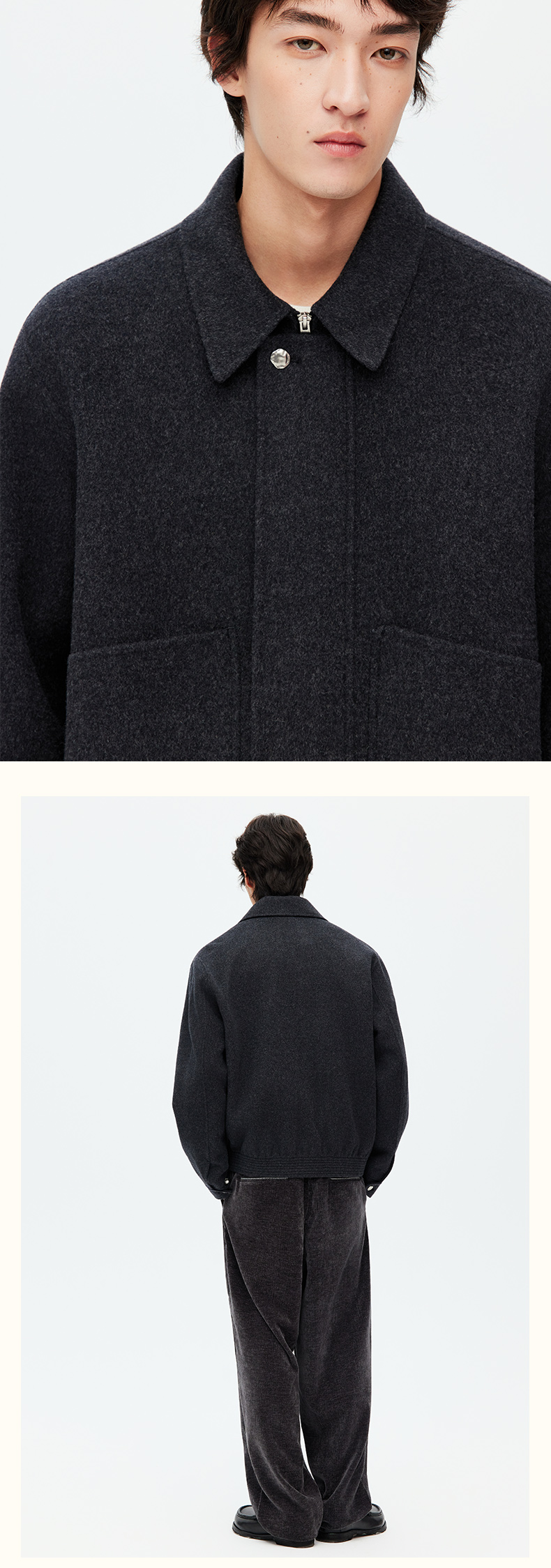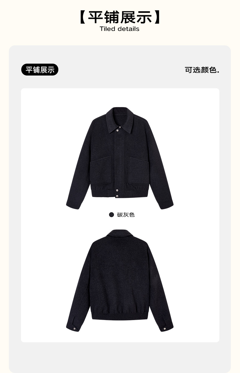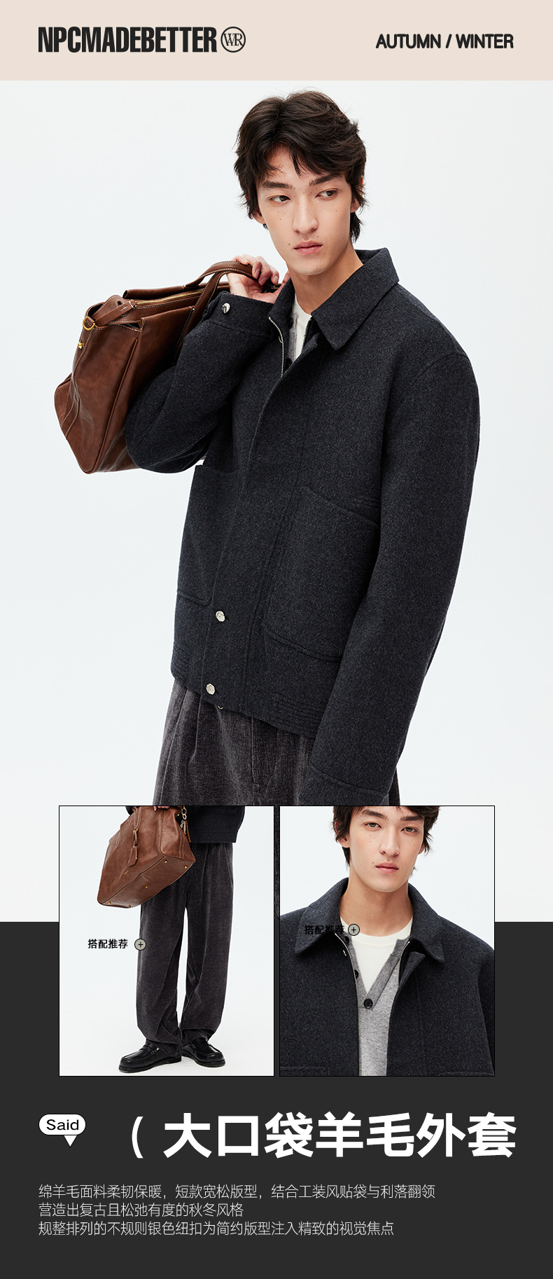 NPC潮牌100%绵羊毛大口袋翻领拉链毛呢夹克短款挺括有形NP58WC31