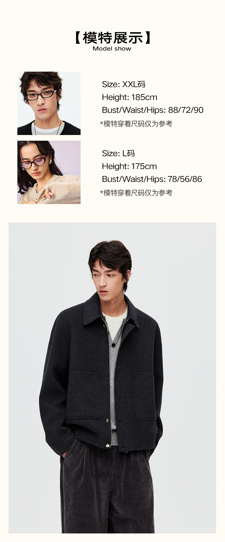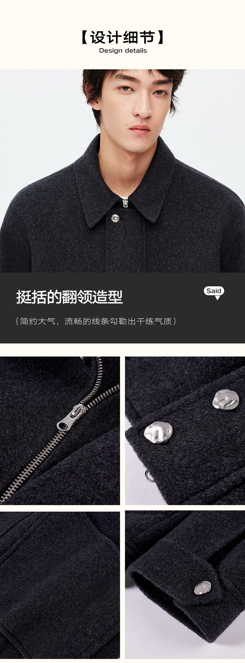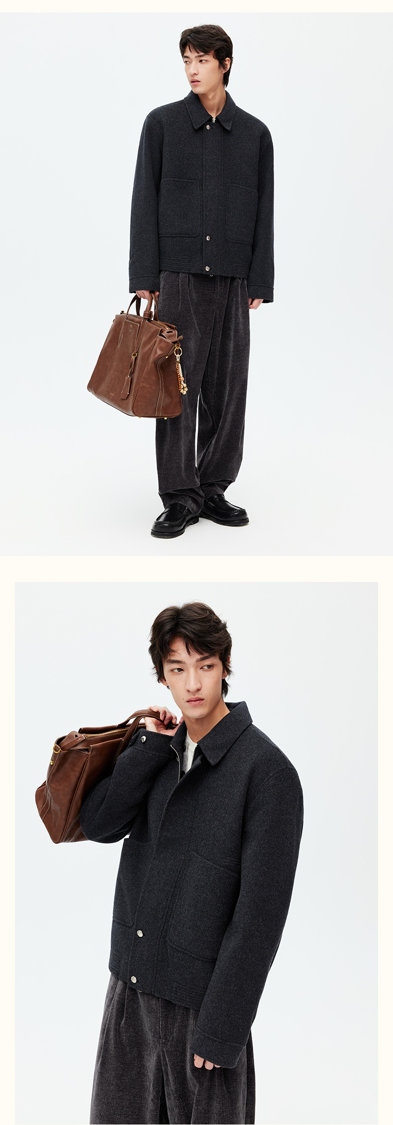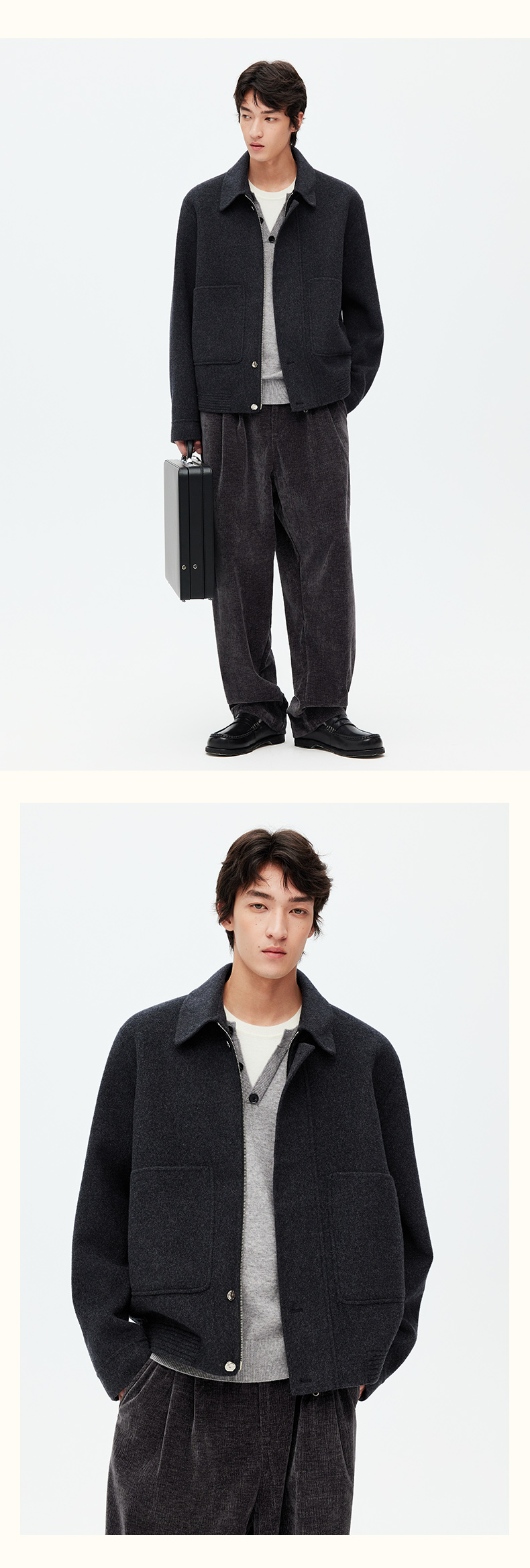 NPC潮牌100%绵羊毛大口袋翻领拉链毛呢夹克短款挺括有形NP58WC31