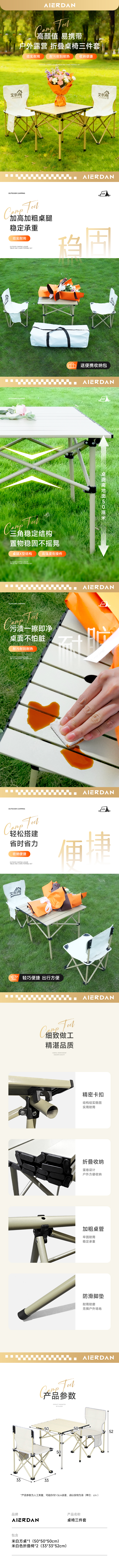 艾尔丹露营折叠桌椅三件套