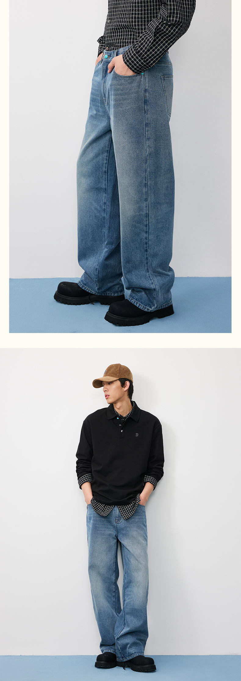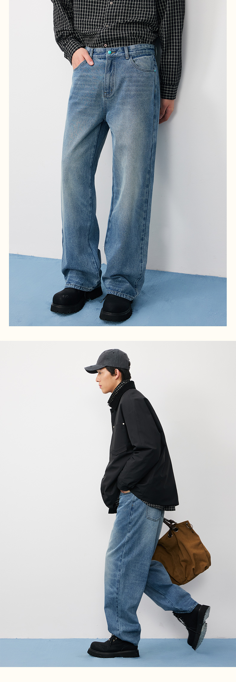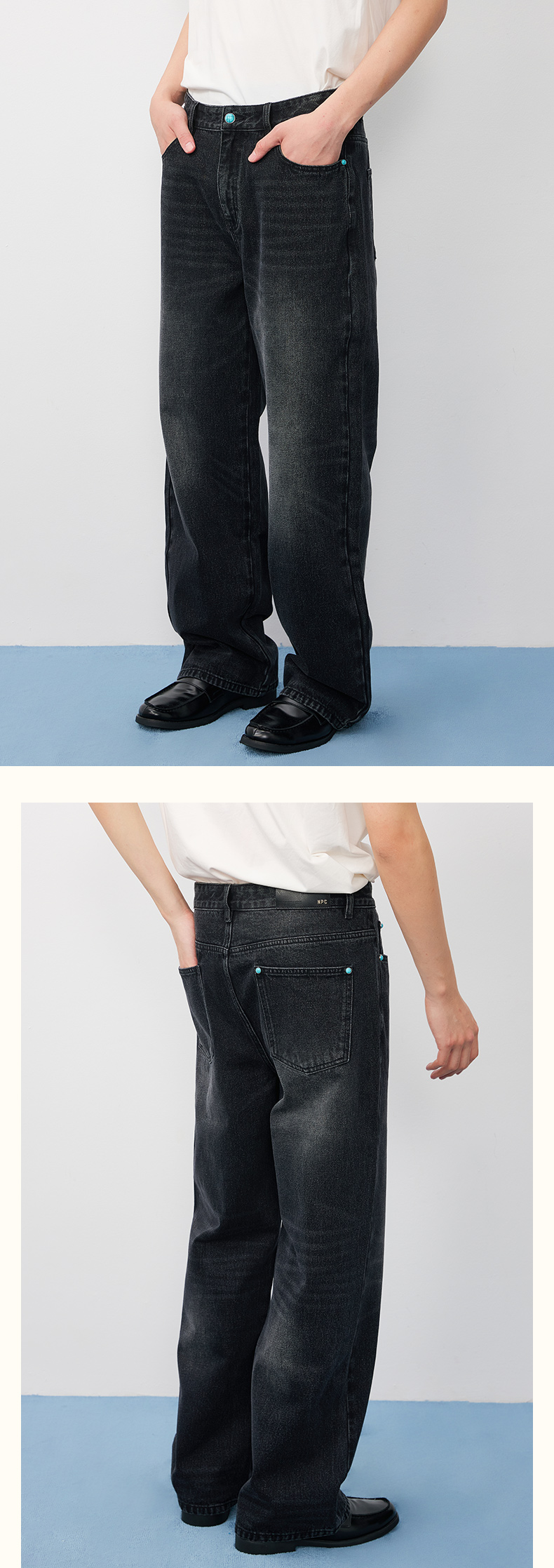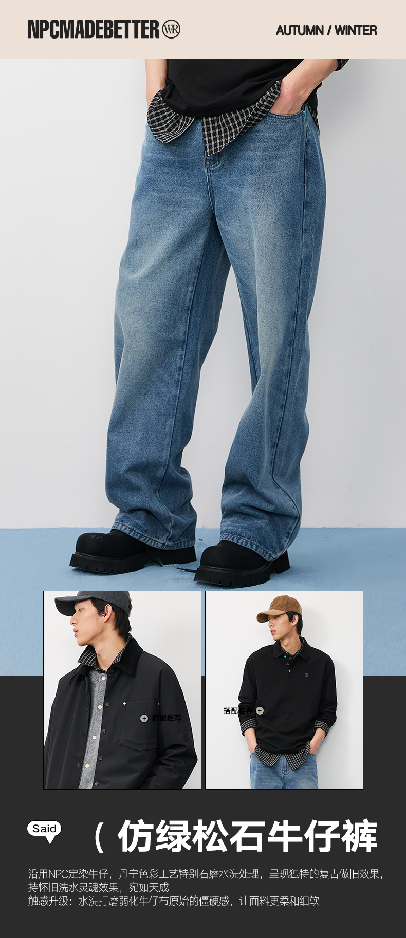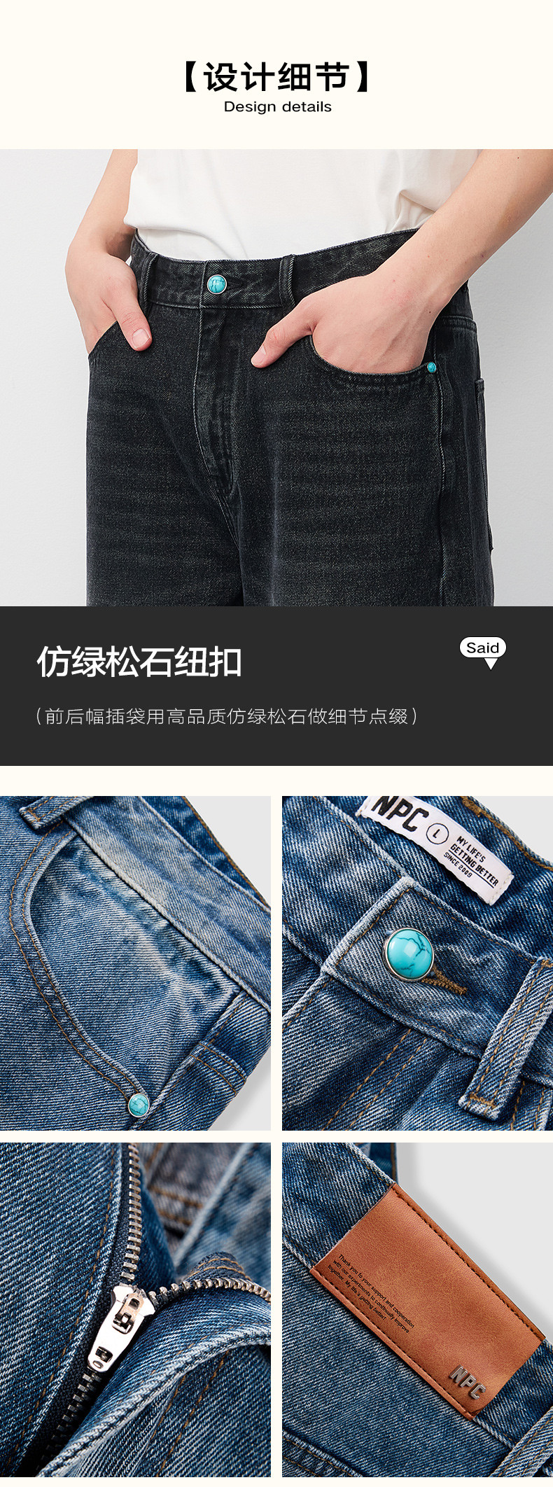 潮牌重磅水洗仿【绿松石】纽扣直筒牛仔裤男休闲百搭NP57DT61