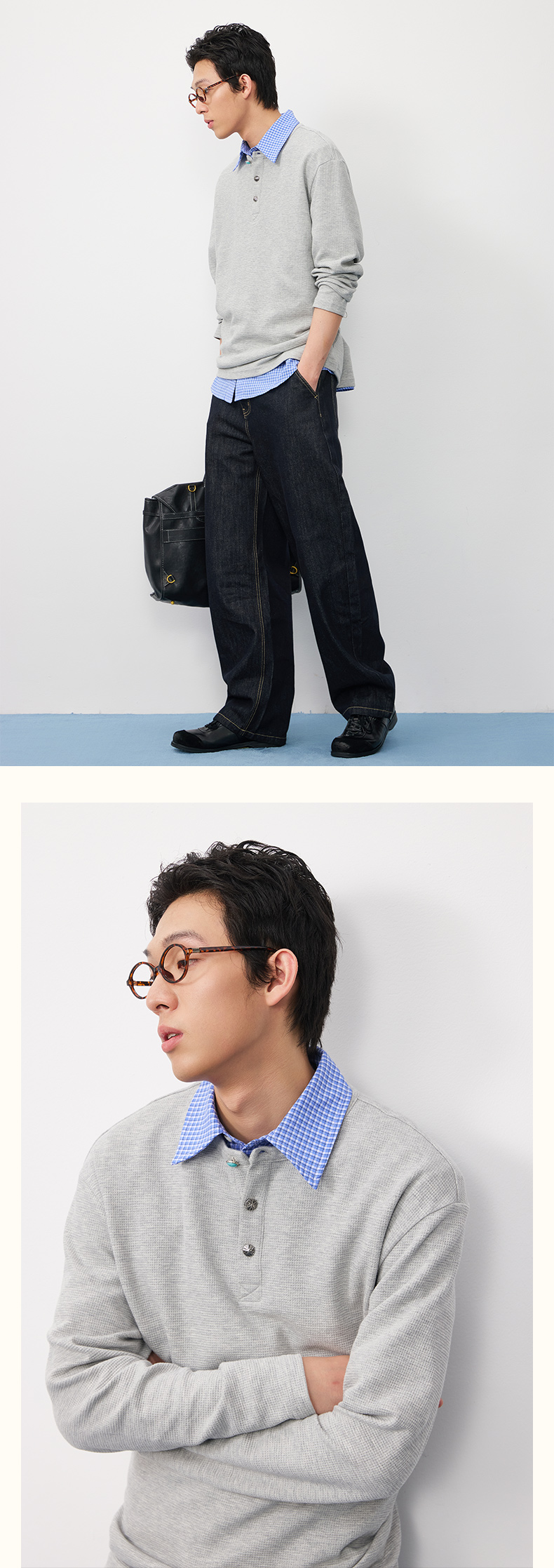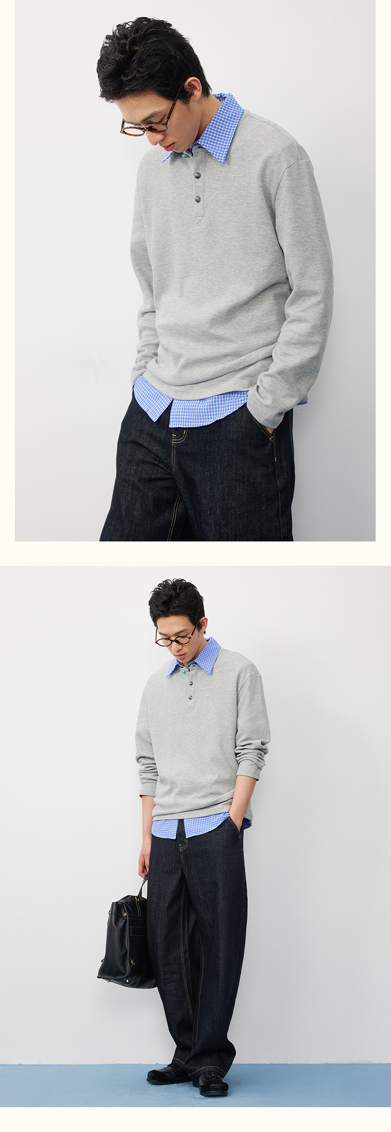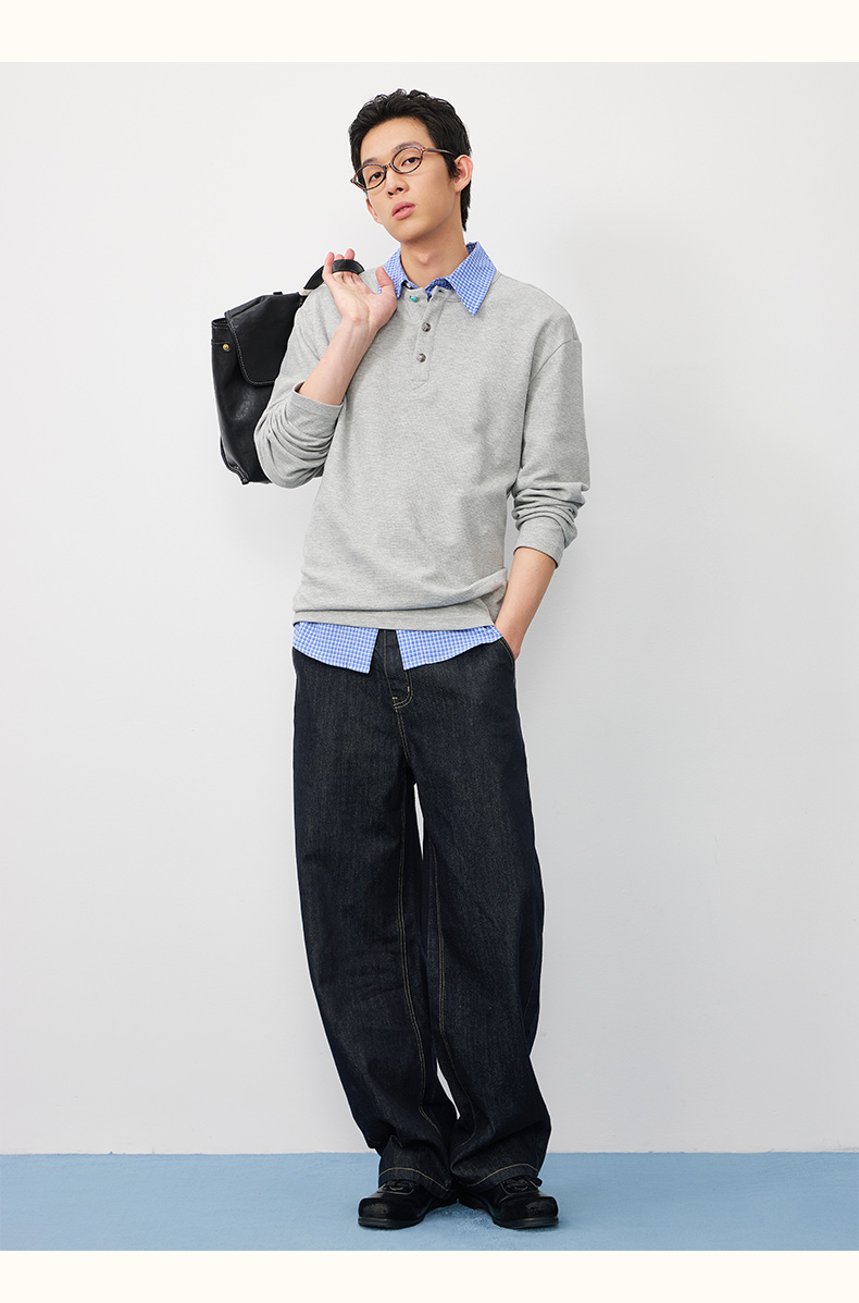 潮牌腰果花刺绣仿【绿松石】扣华夫格长袖T恤男亨利领NP58TL18