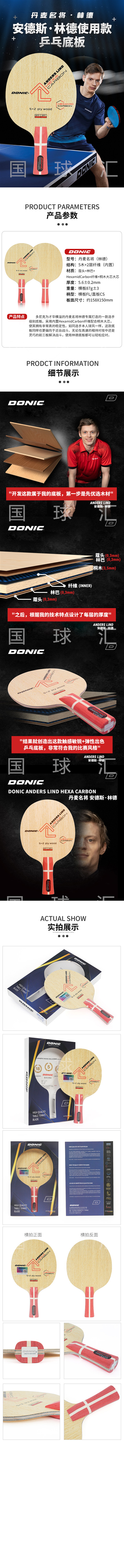 DONIC多尼克 丹麦名将 林德 HEXA CARBON 内置芳碳纤维 乒乓球底板