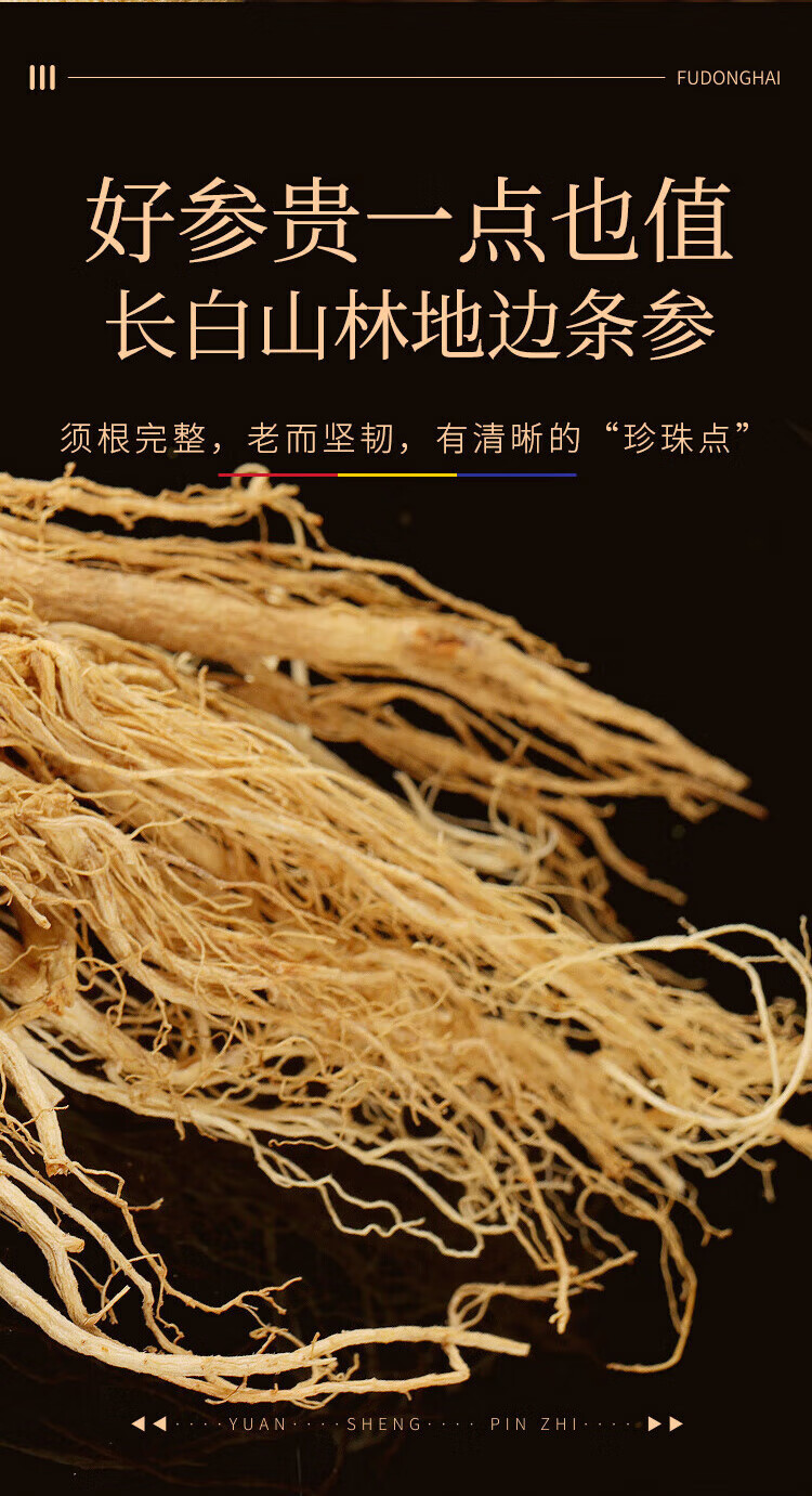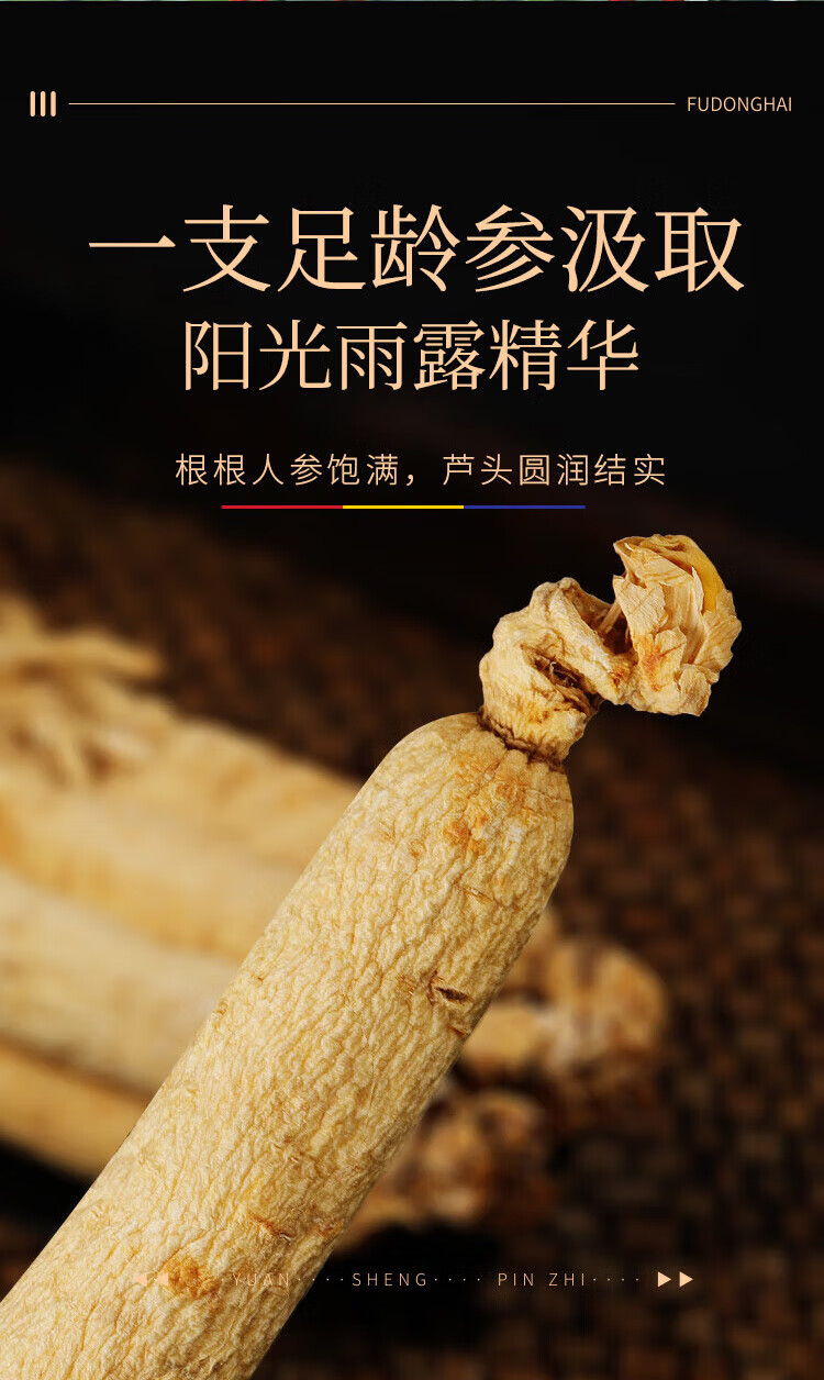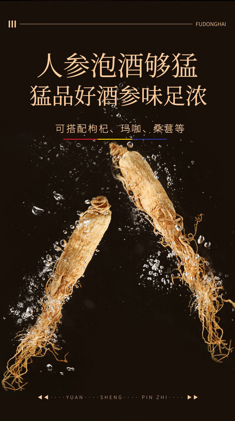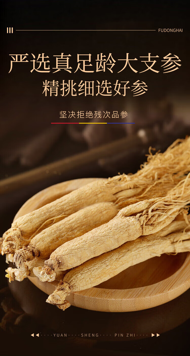 福东海 人参50克 /盒 精选吉林人参整根 可切厚片 人参皂苷含片 泡水煲汤泡酒均可