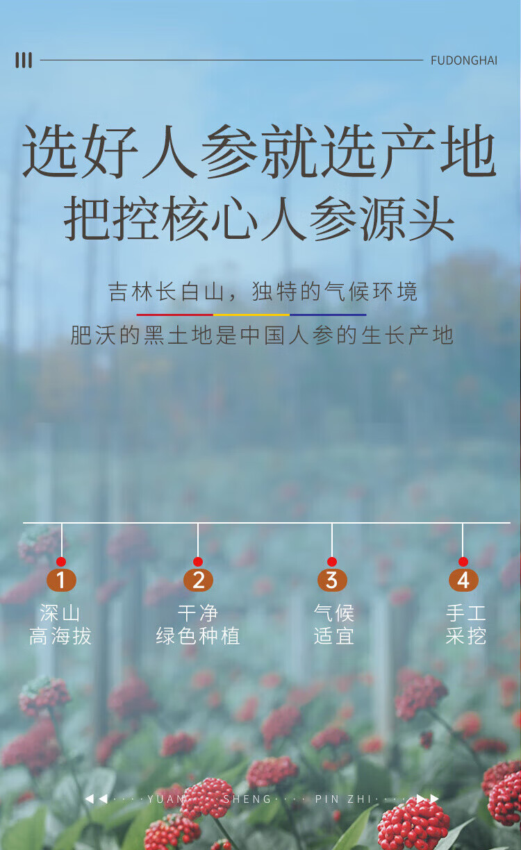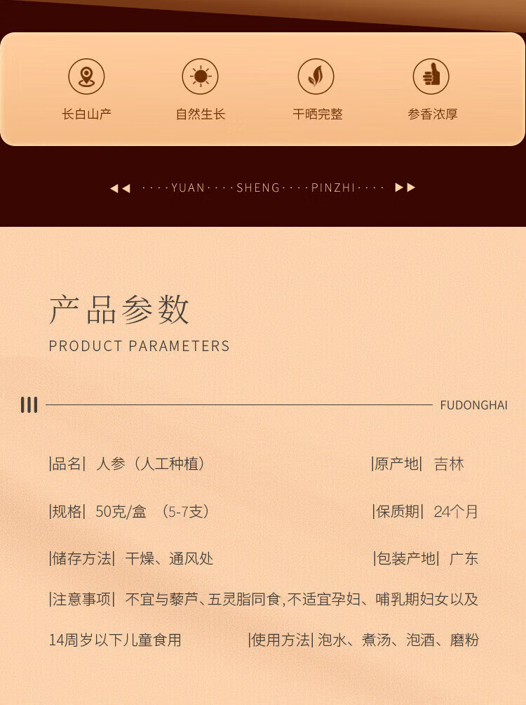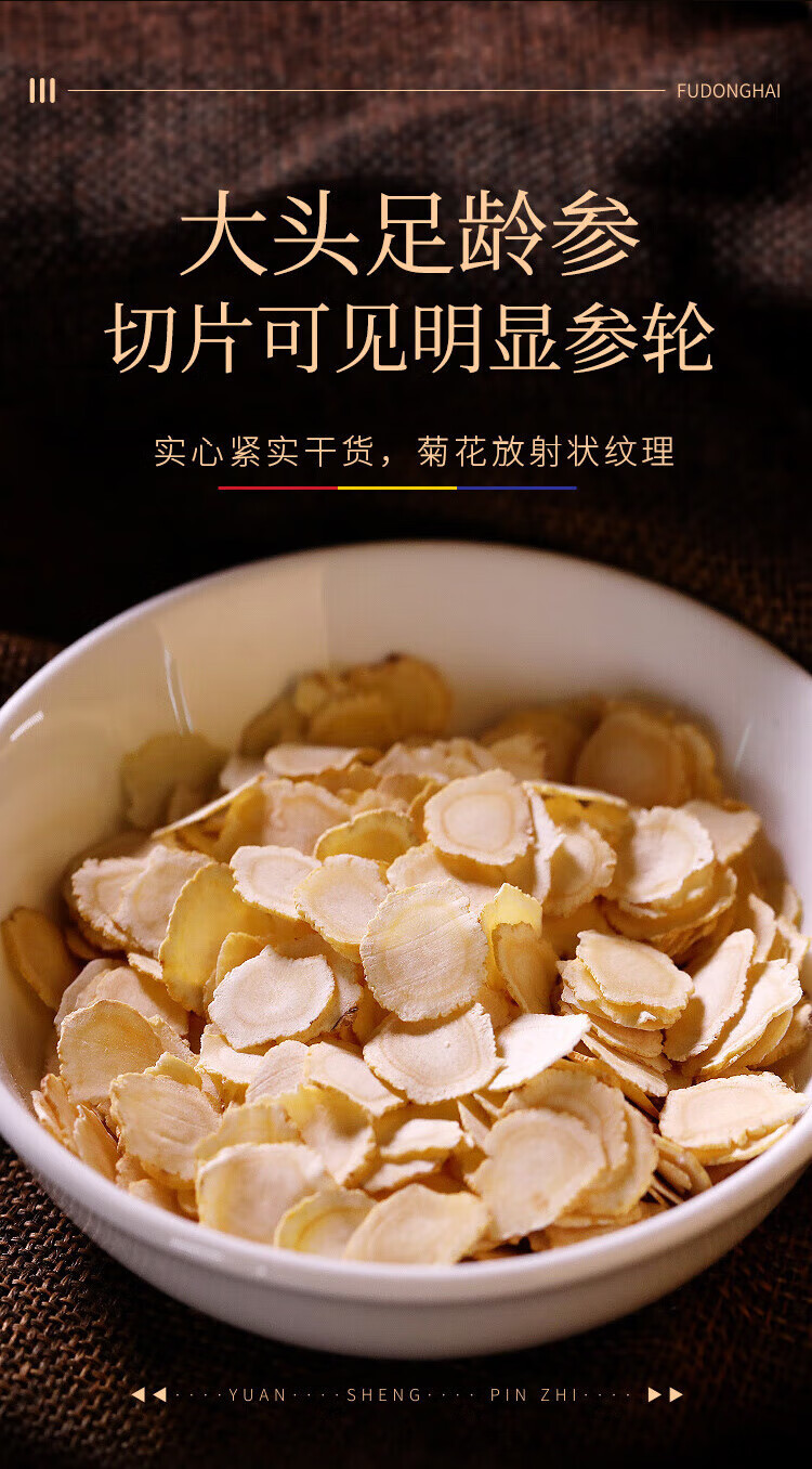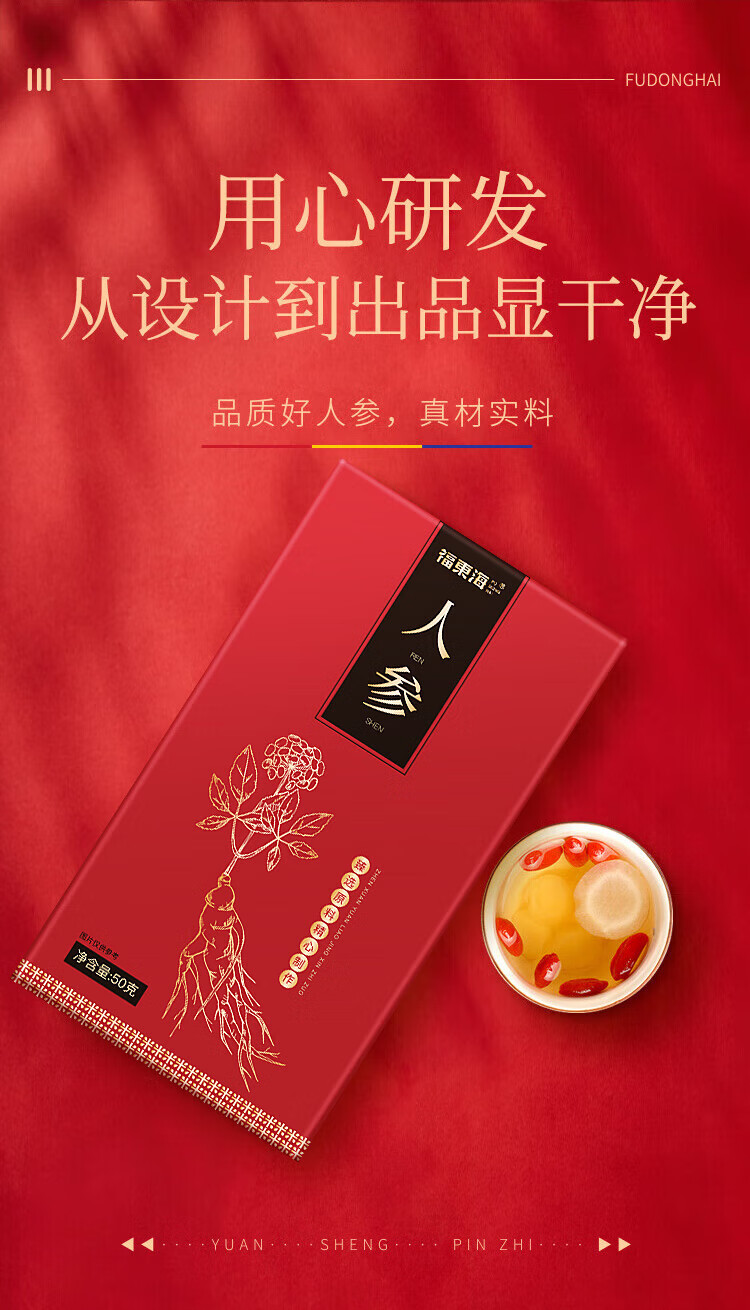 福东海 人参50克 /盒 精选吉林人参整根 可切厚片 人参皂苷含片 泡水煲汤泡酒均可