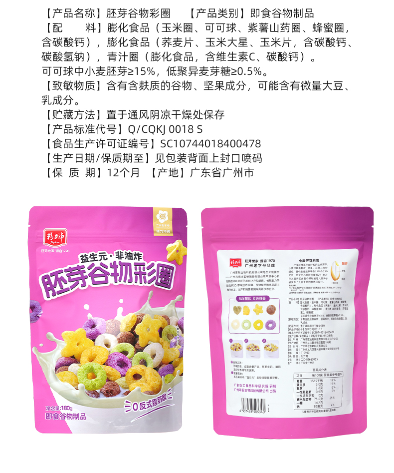 精力沛益生元胚芽谷物圈可可蜜球燕麦片