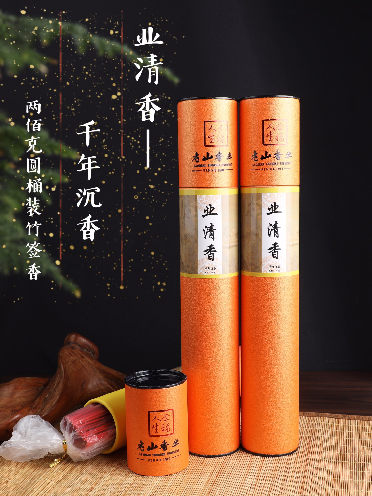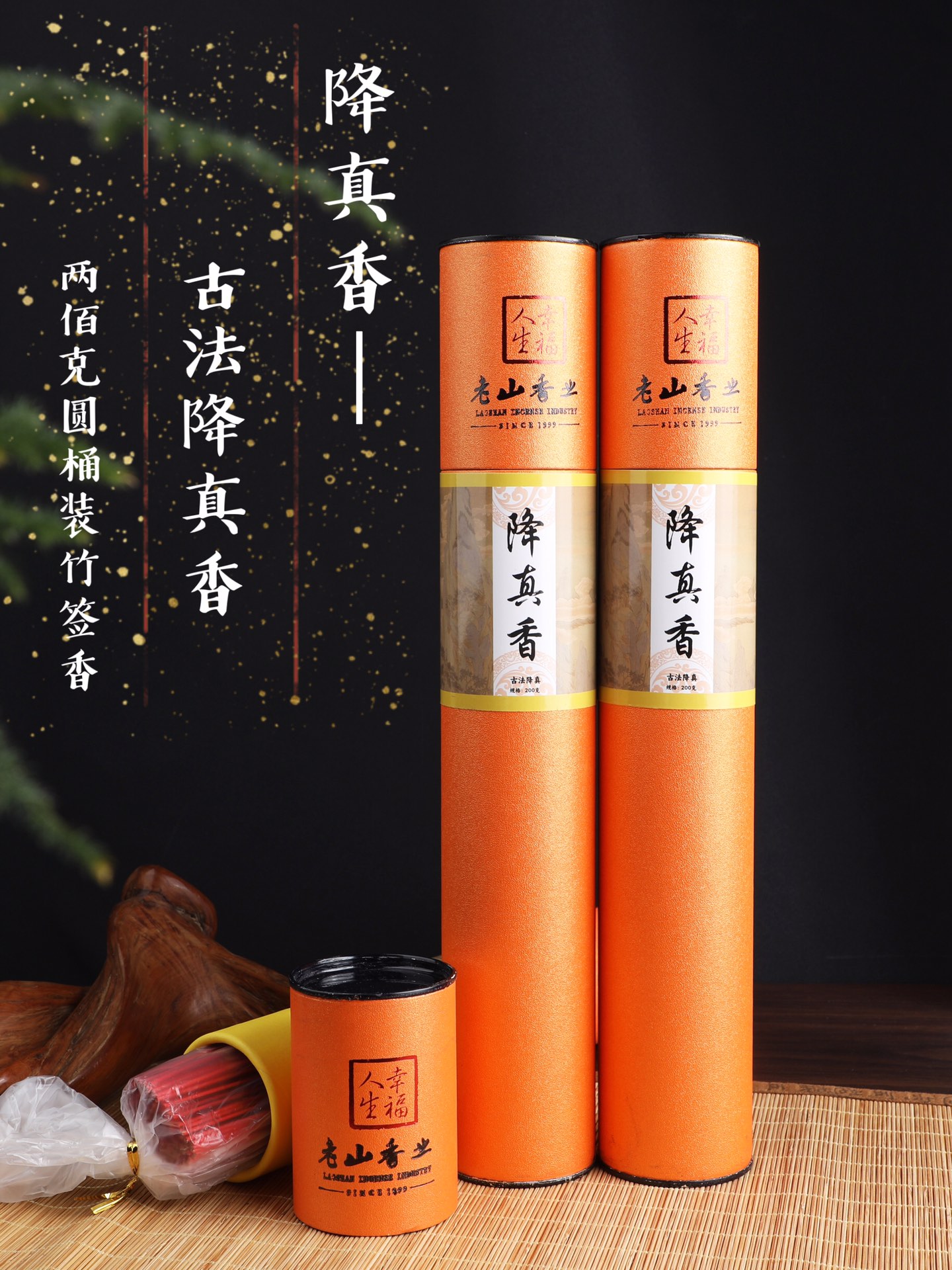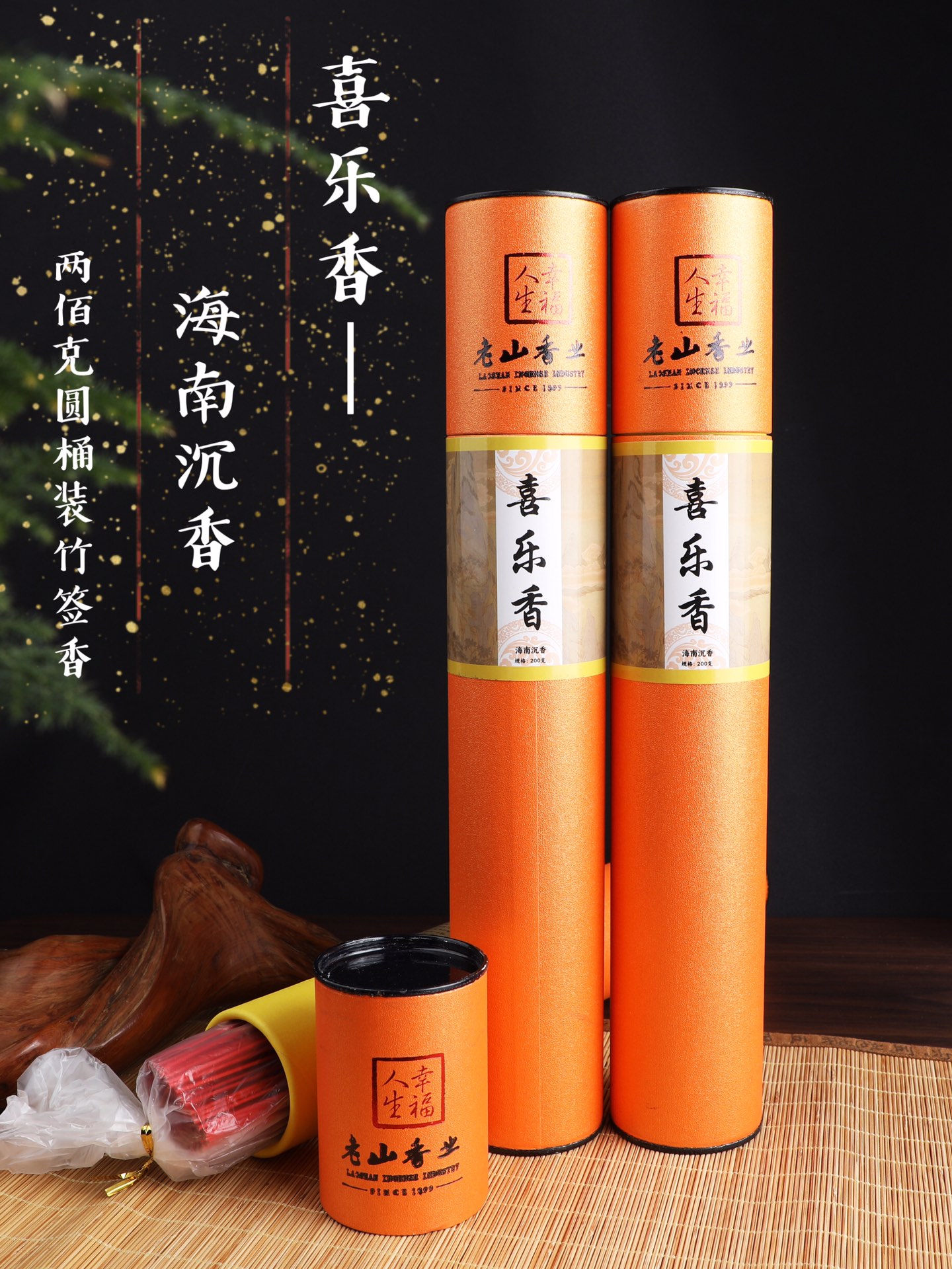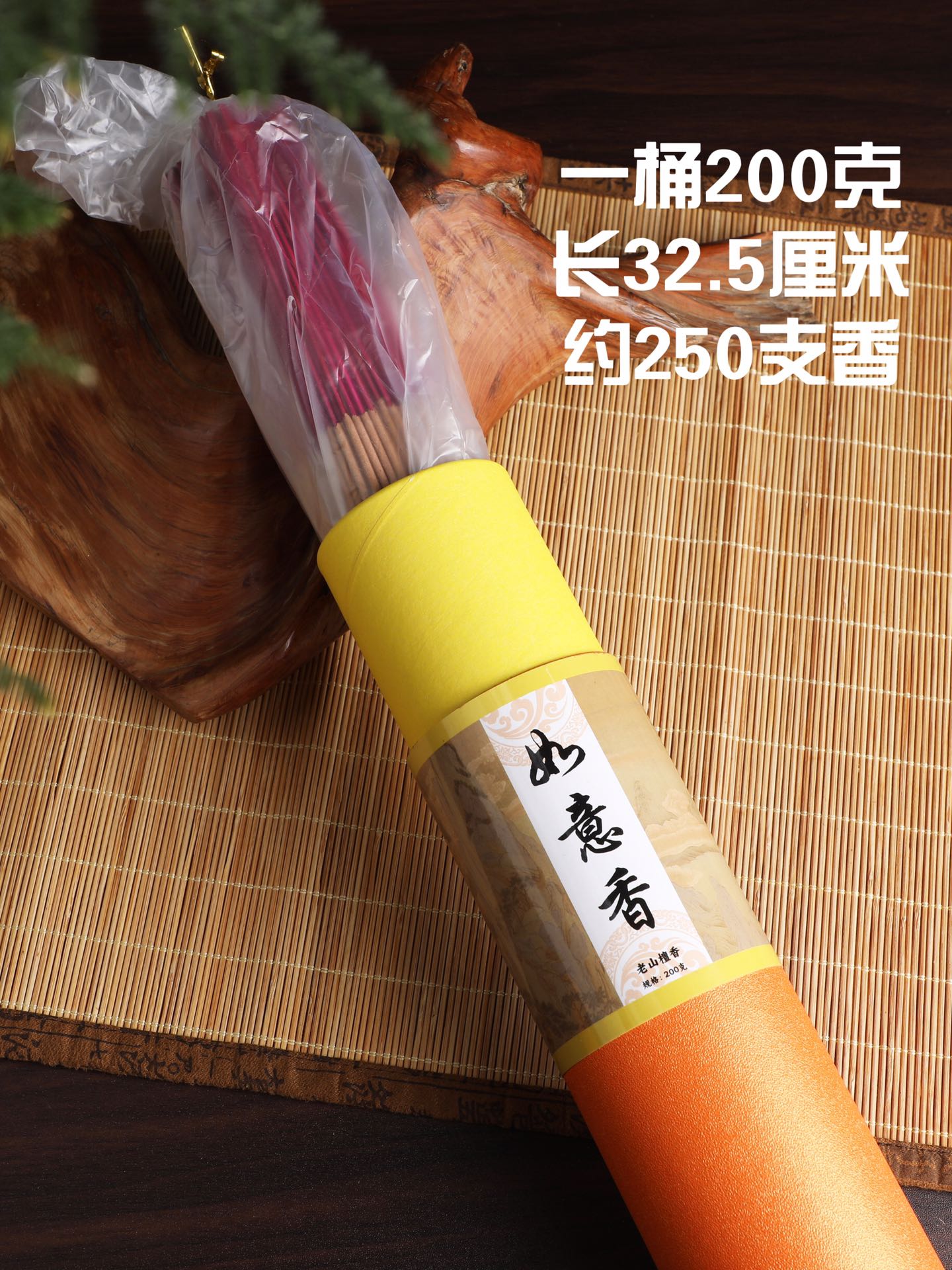 200克桶装32.5cm供奉礼佛竹签香檀香沉香竹棒香财神祭祀香
