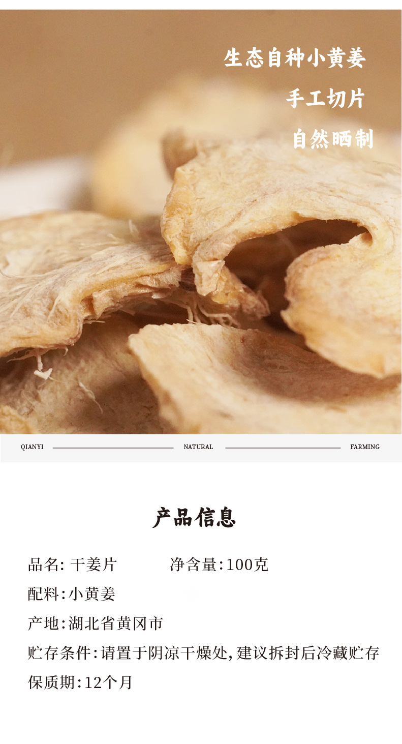 【上新】谦益香畴 干姜片100g 生态自种 自然晾晒 手工切片 姜味浓郁辛香