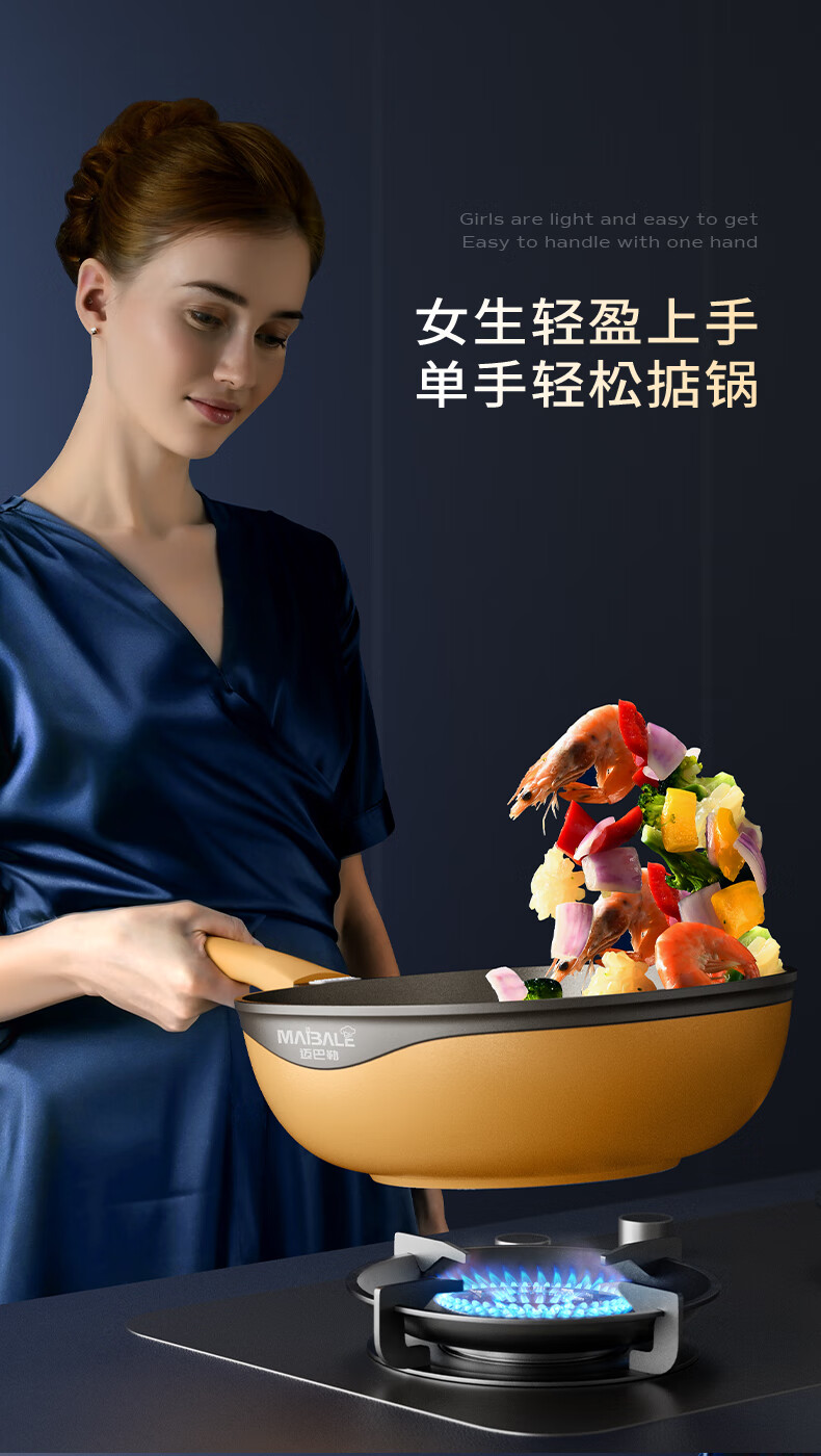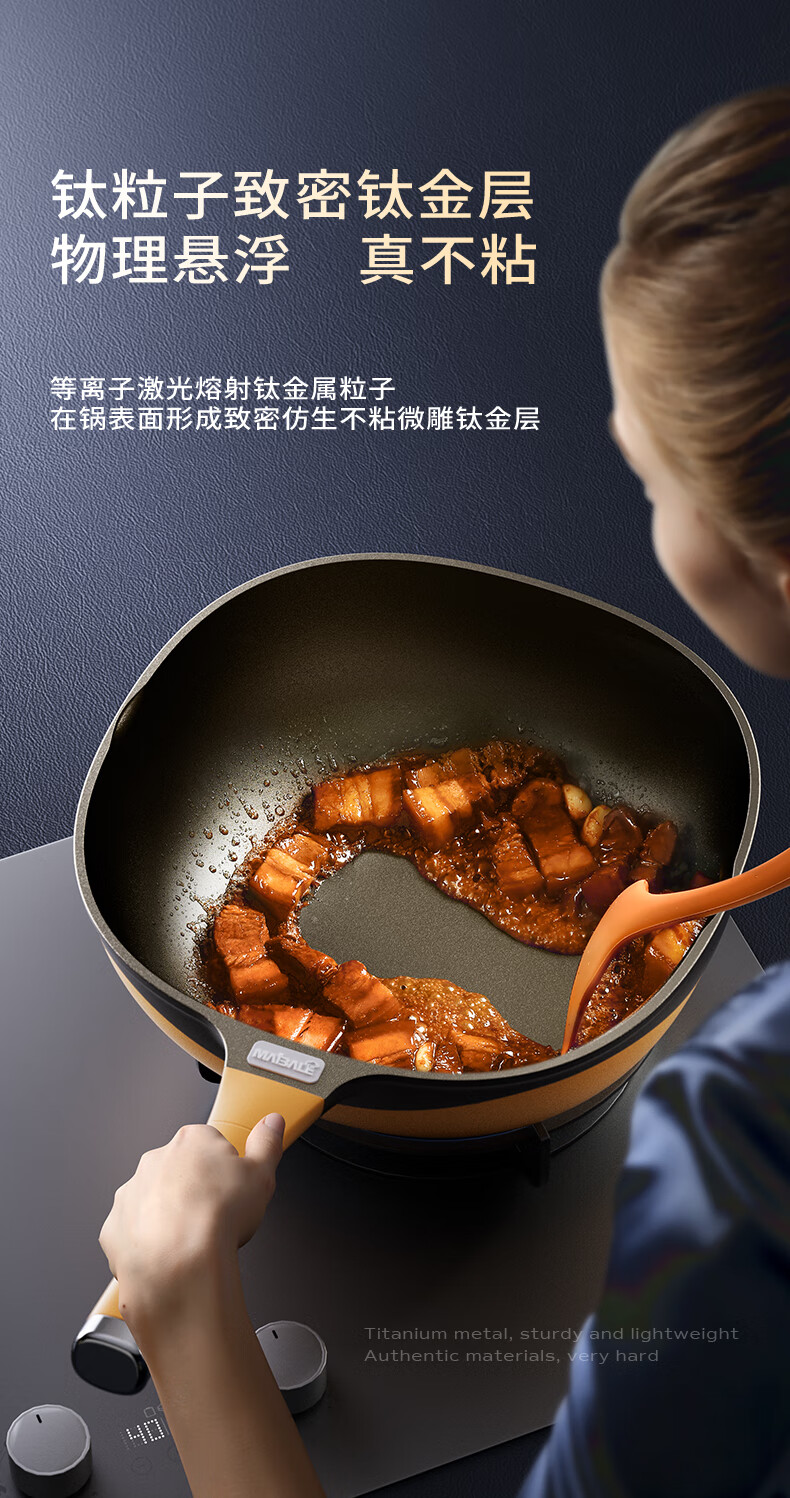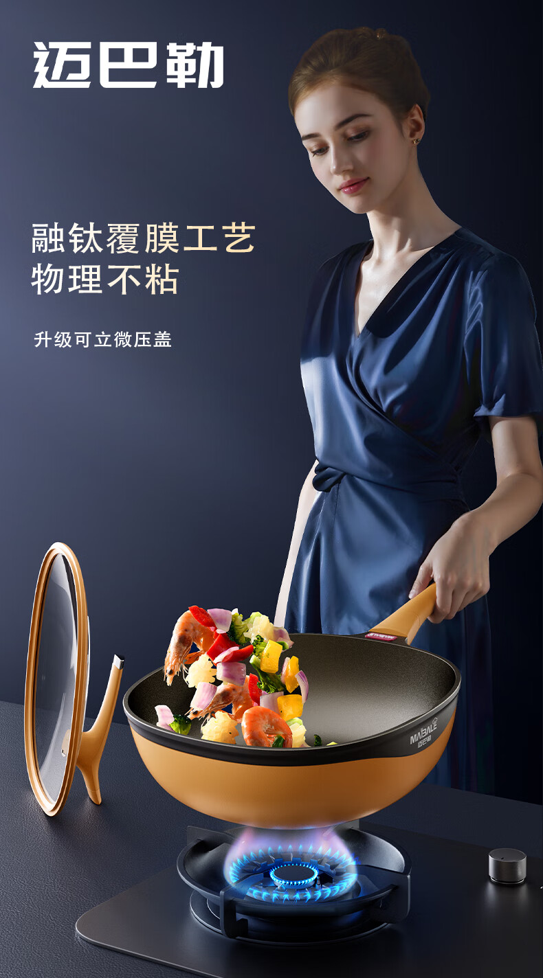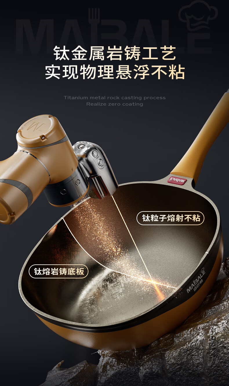 迈巴勒 钛极岩铸不粘炒锅 不挑炉灶
