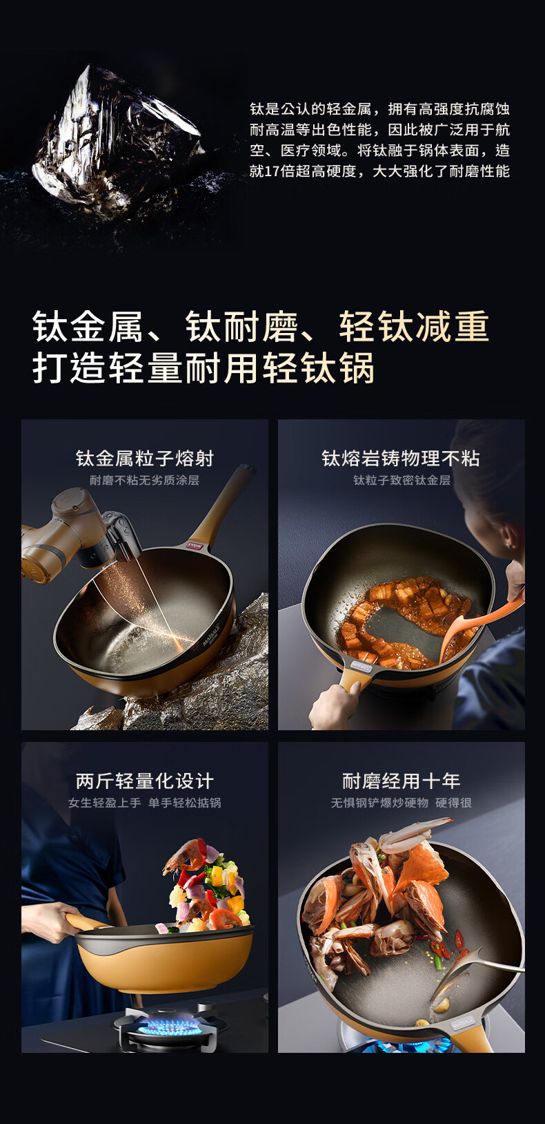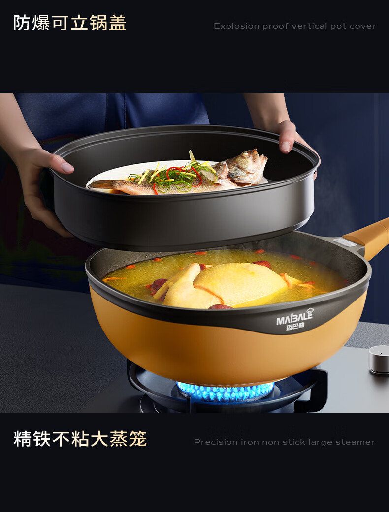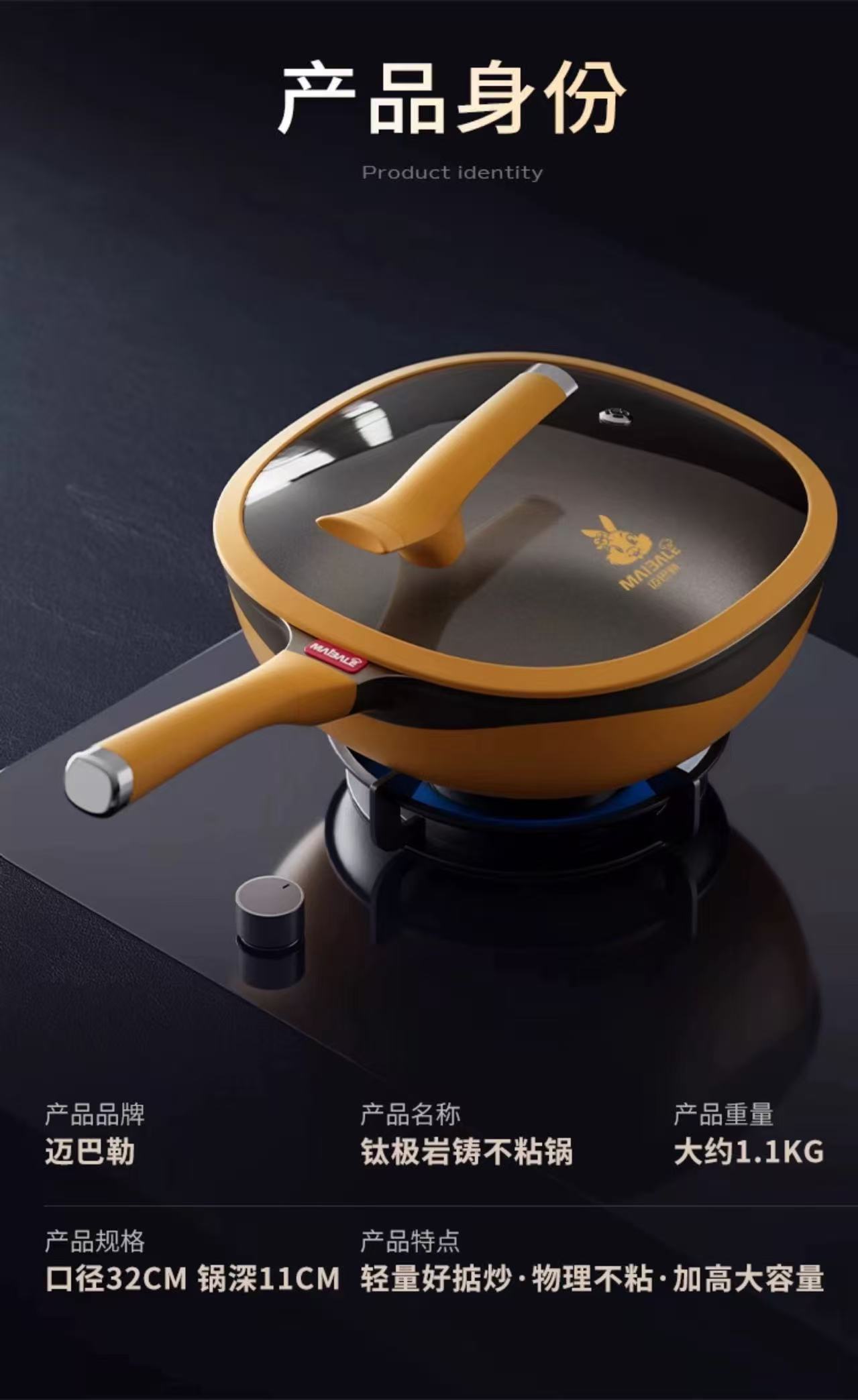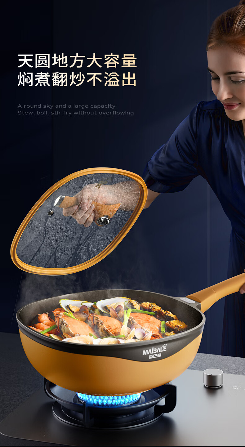 迈巴勒 钛极岩铸不粘炒锅 不挑炉灶