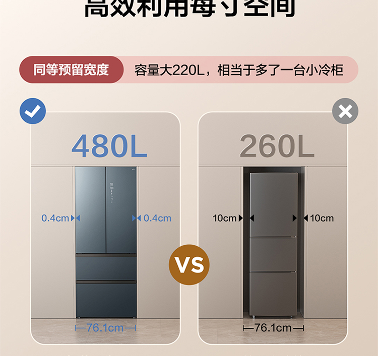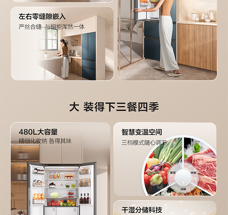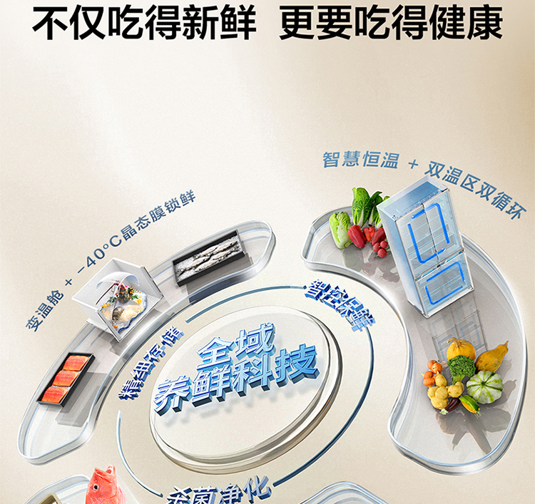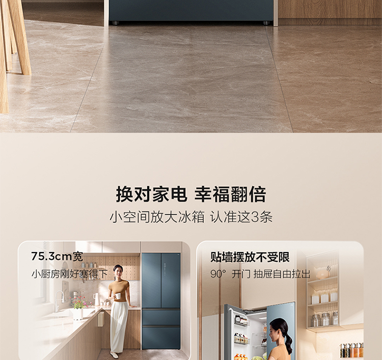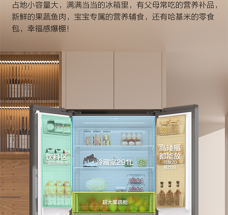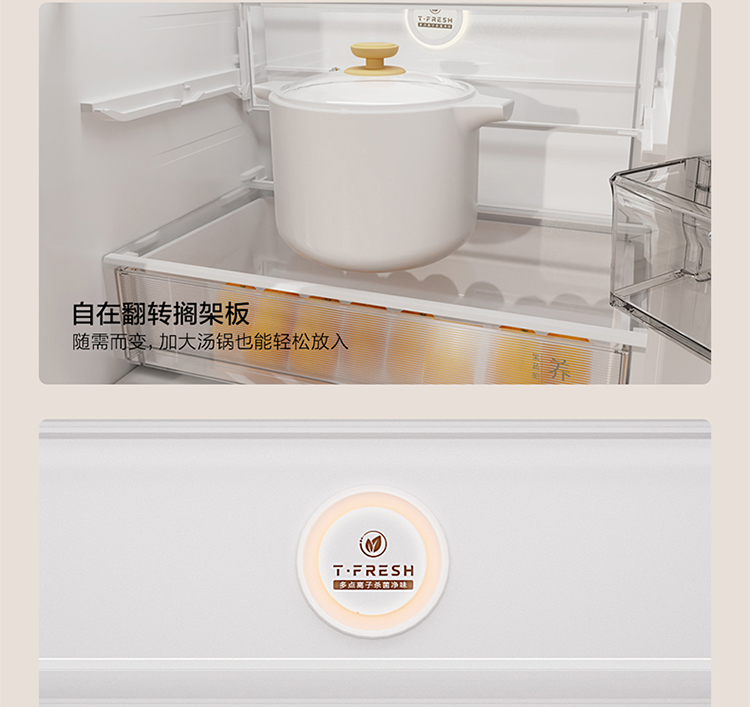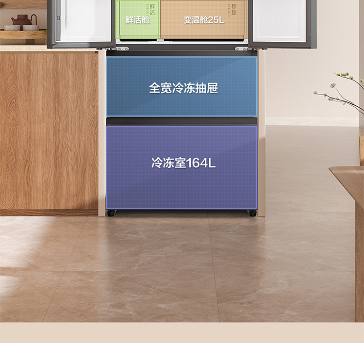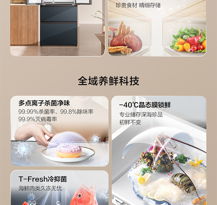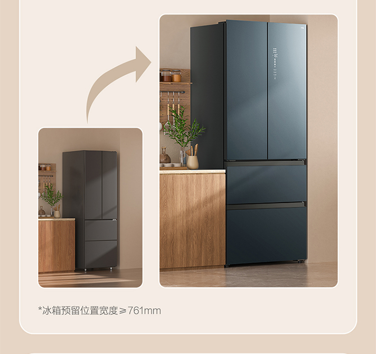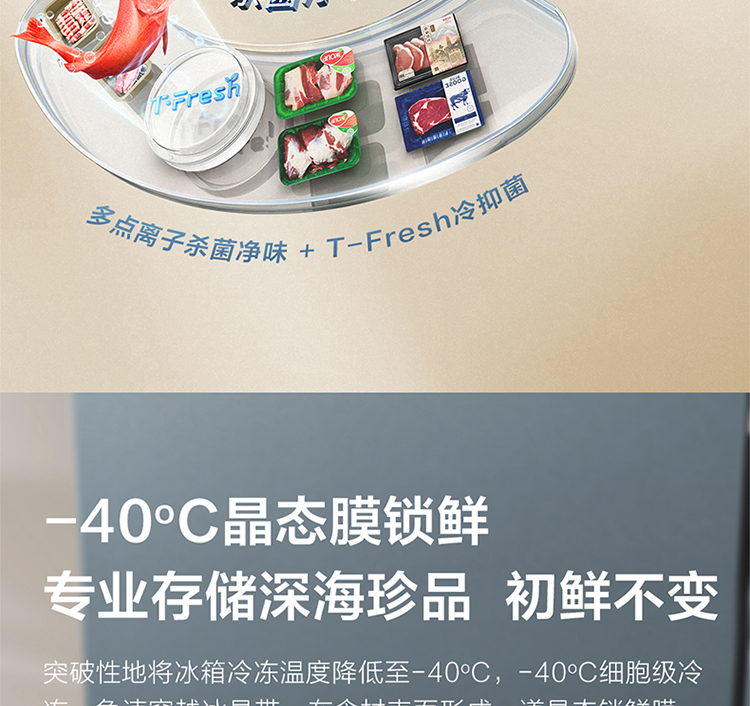 TCL 405升十字对开四开门智慧变温养鲜冰箱双变频一级能效 33分贝低噪冰箱 R405T3-U(咨询客服送优惠大礼包)