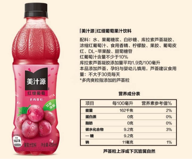 美汁源 红缇 葡萄汁饮料450ml
