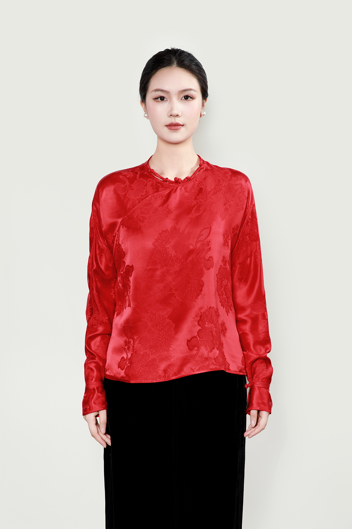 盛唐牡丹 | 石榴花纹真丝斜襟上衣