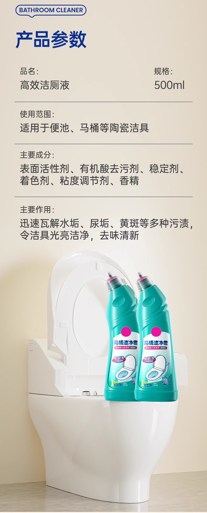 【秒杀❗️19.9抢3瓶🔥高效洁厕液】去污升级新配方,快速去垢,除菌留香!蹲便马桶专用强力除尿黄垢清洁剂洗厕所去污除臭清香洁厕灵