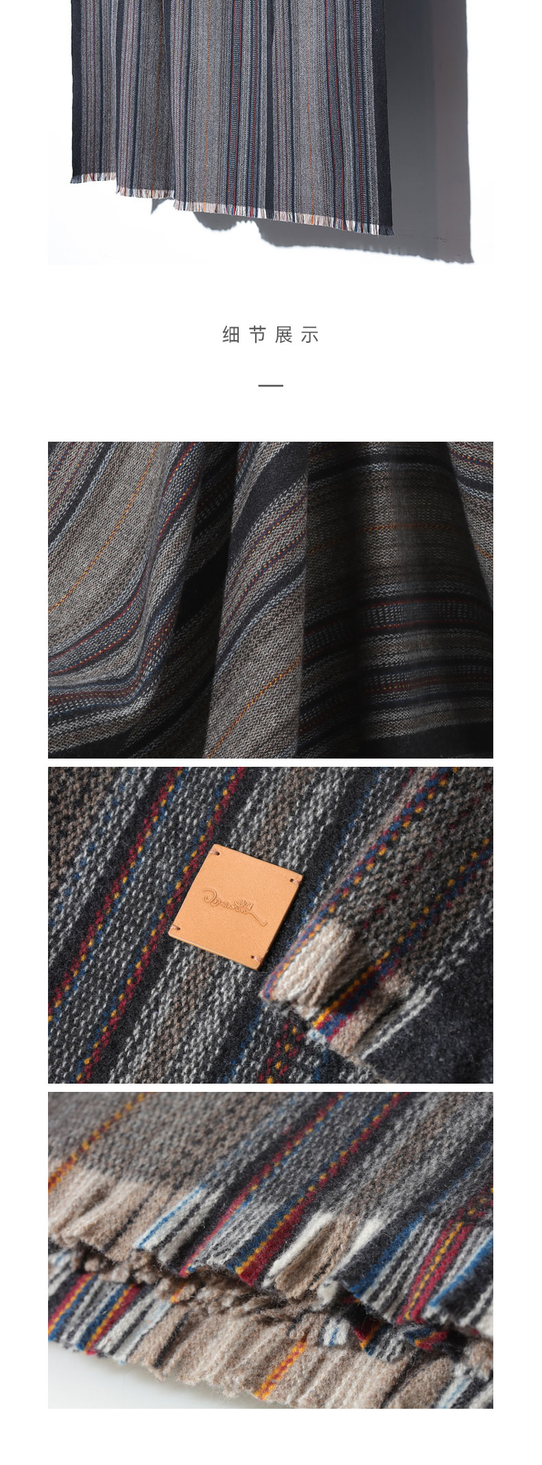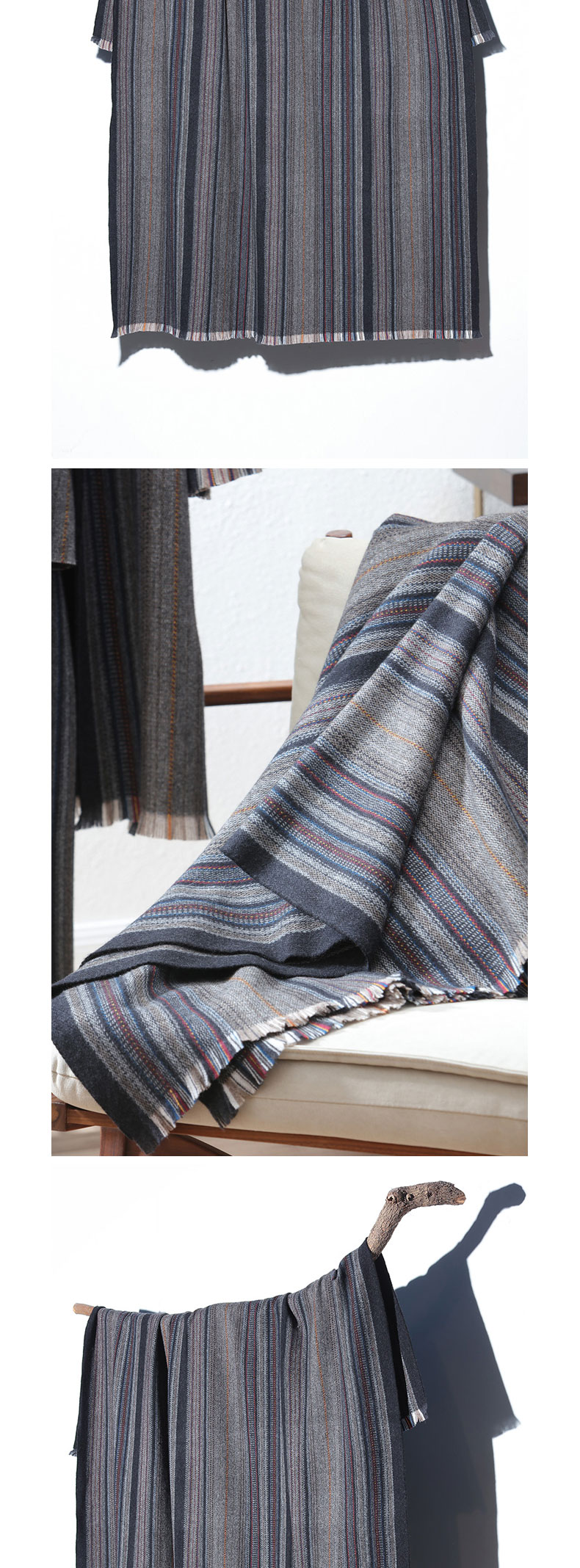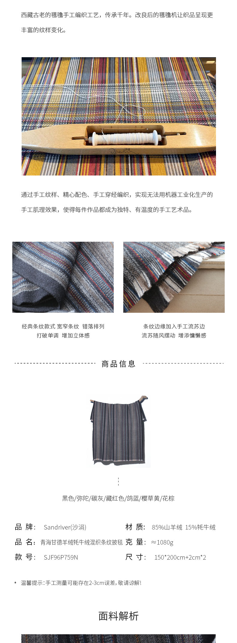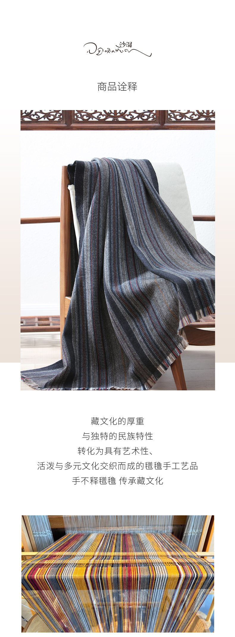 青海甘德羊绒牦牛绒混织条纹披毯SJF96P759N