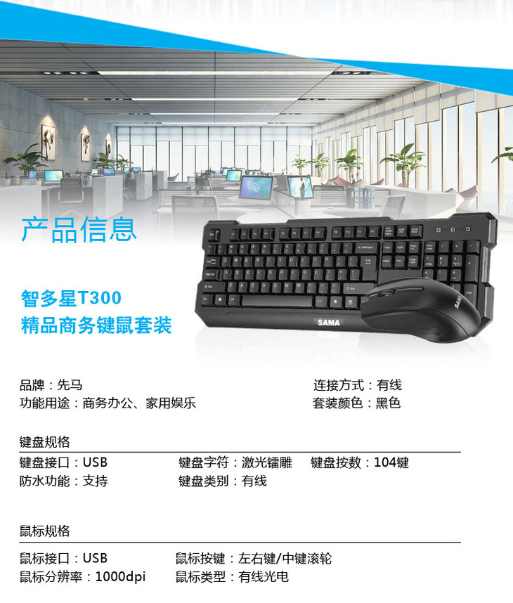 【键鼠套装】SAMA先马T300键盘鼠标套装有线键鼠套装USB