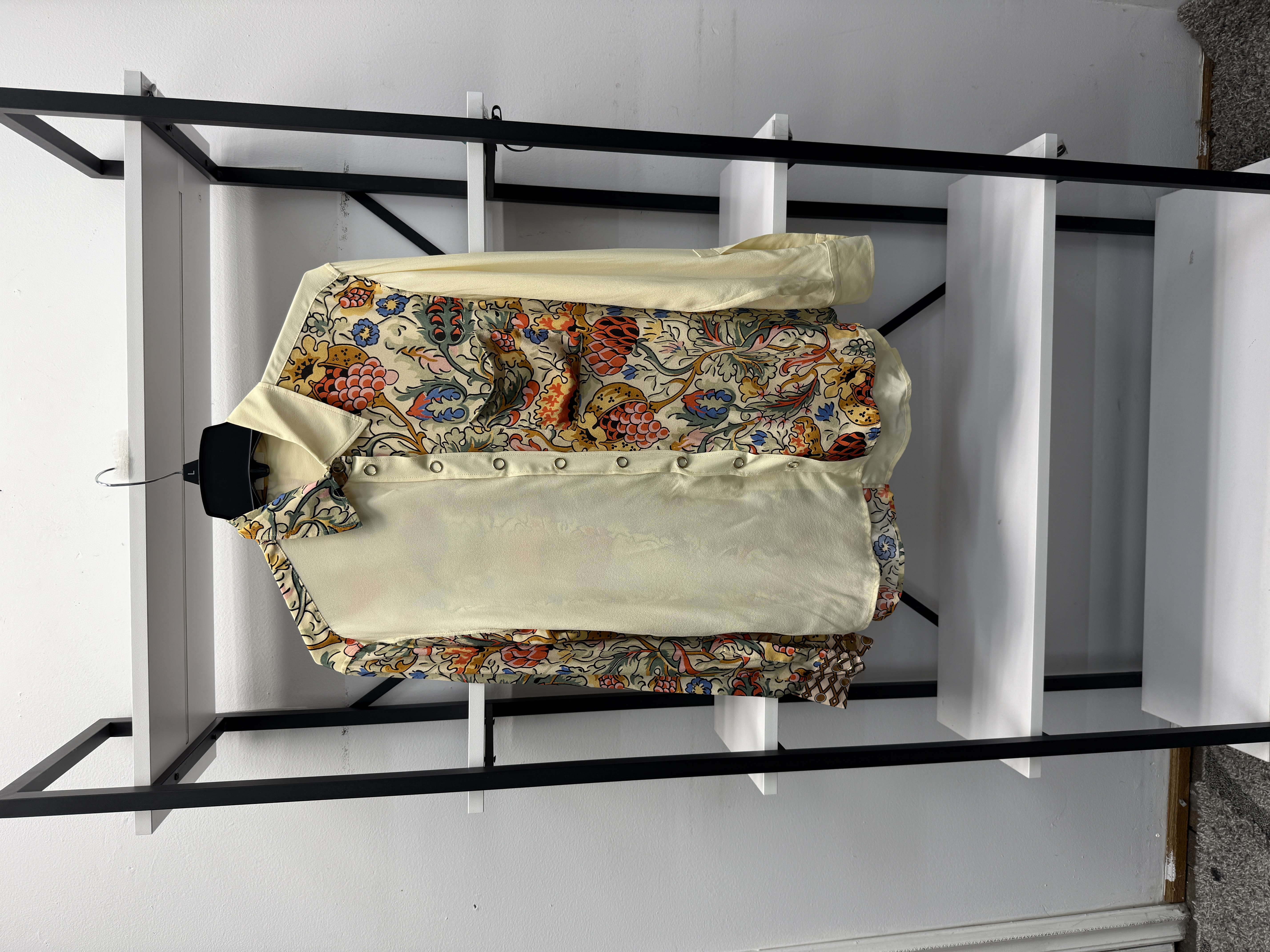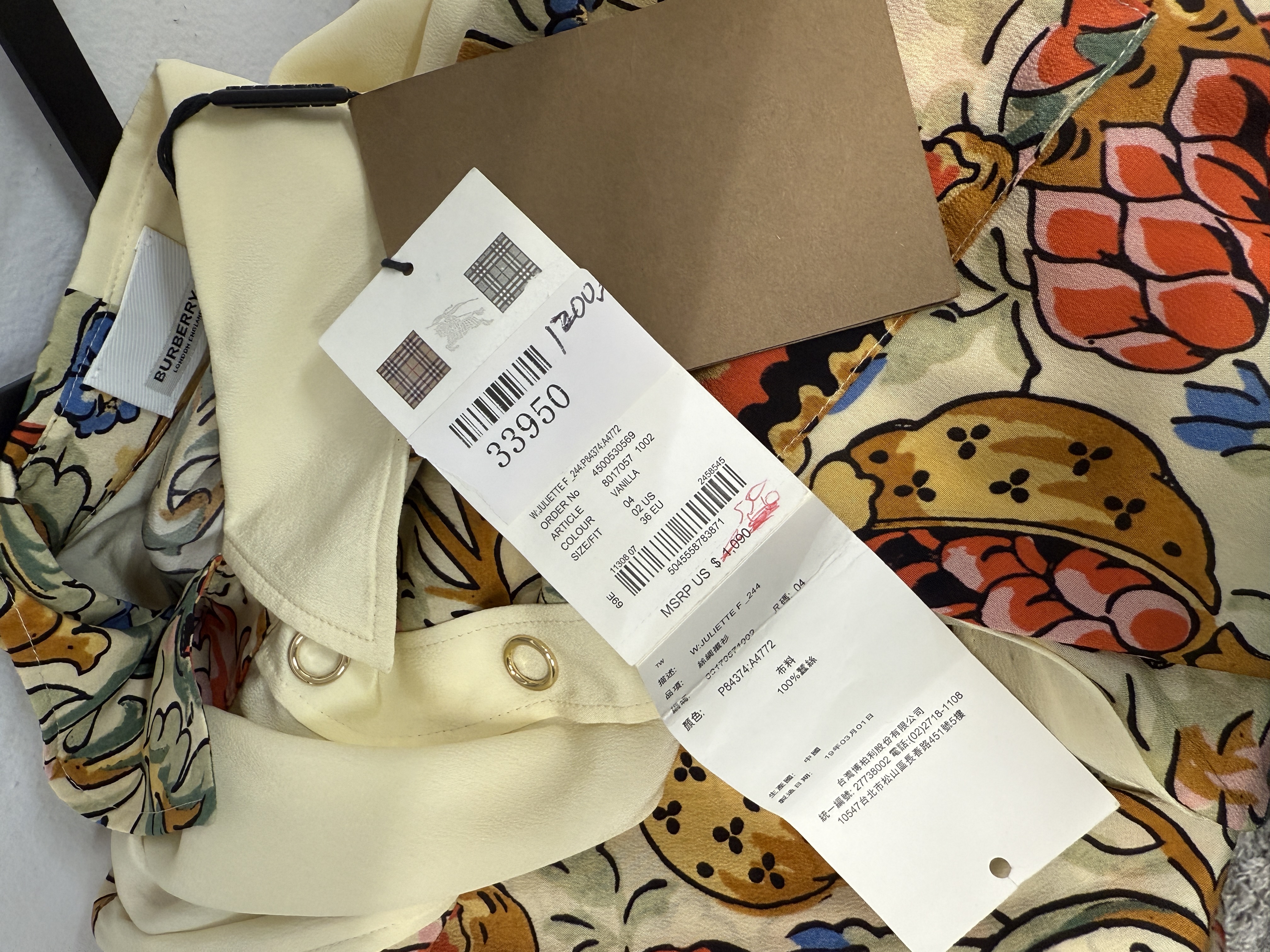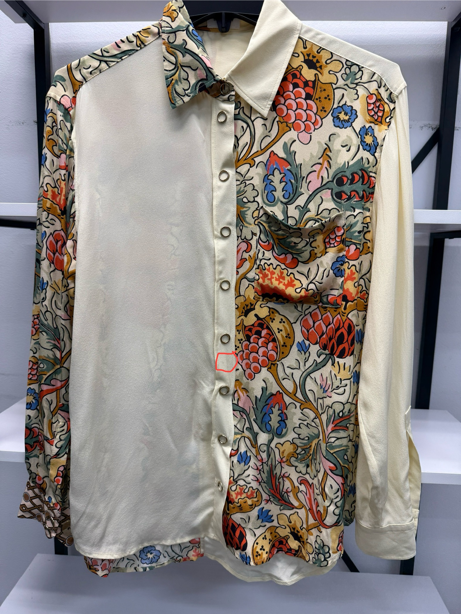 瑕疵 不退不换 BUR*E**Y/巴*莉 女士印花拼色丝绸翻领长袖衬衫