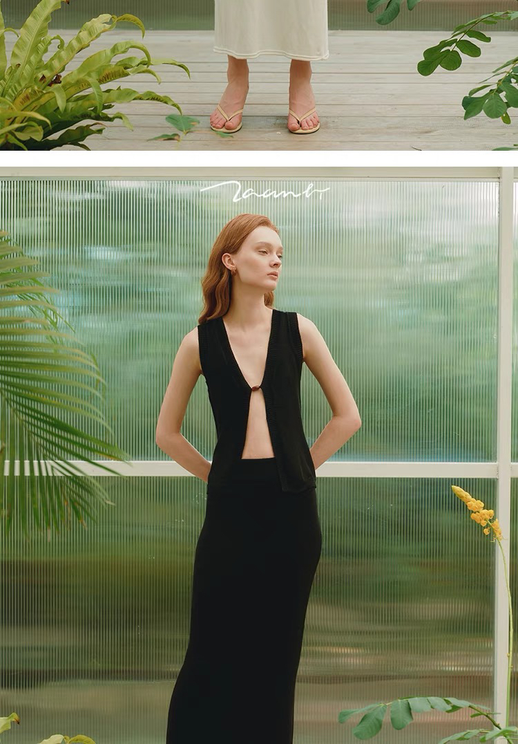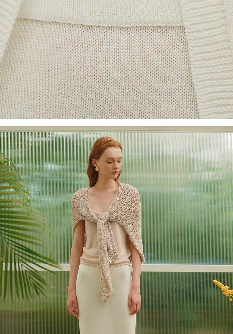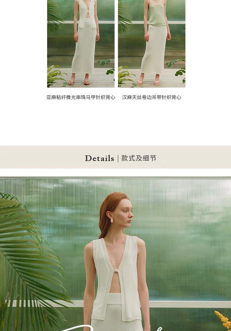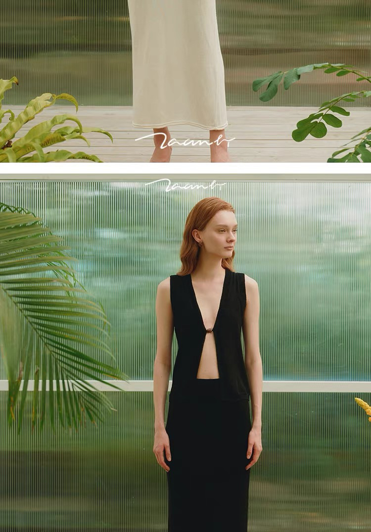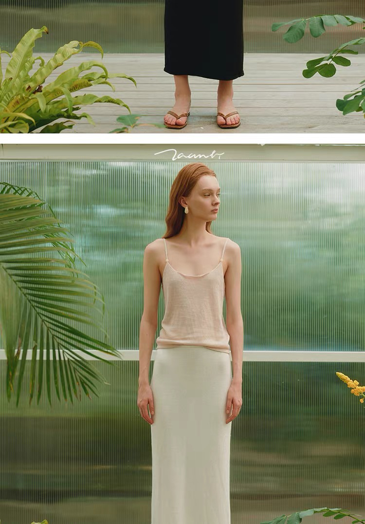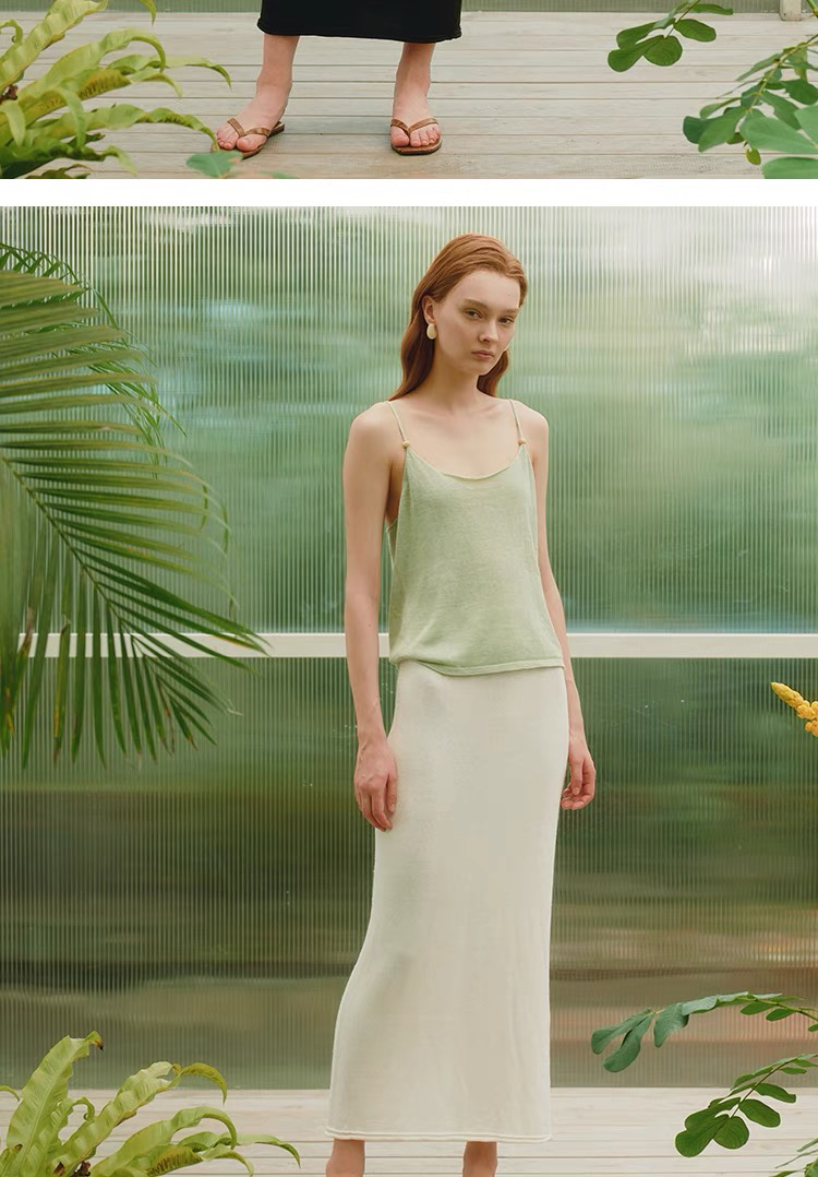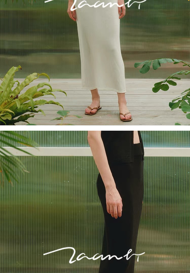 ZAANLI|ZNSS25044 亚麻粘纤微光卷边针织半裙 [ 浅银白 / 雾黑 ]