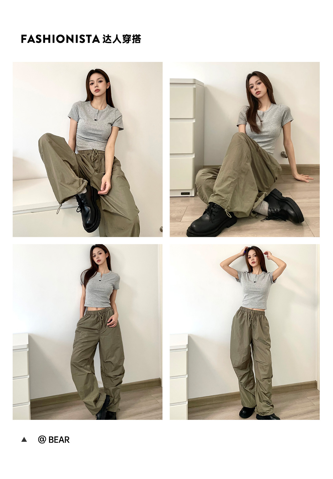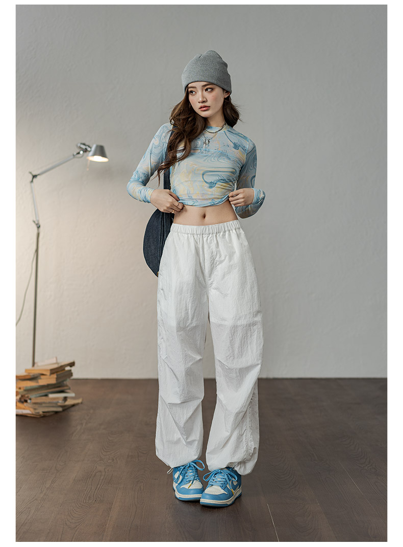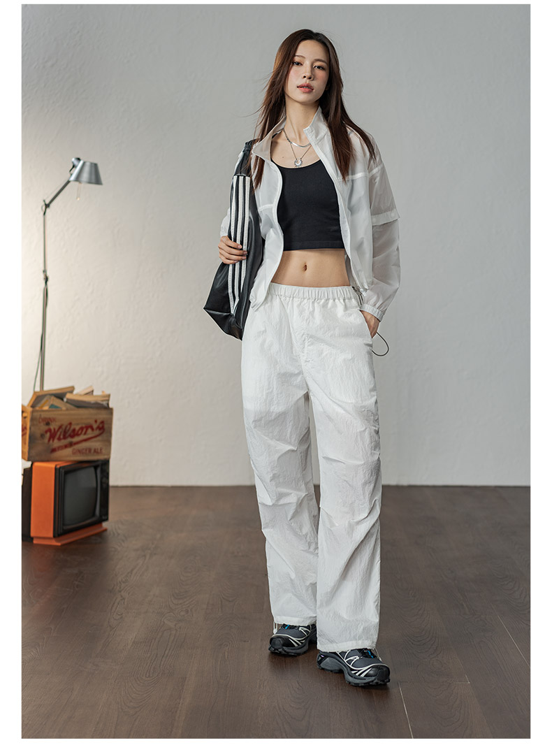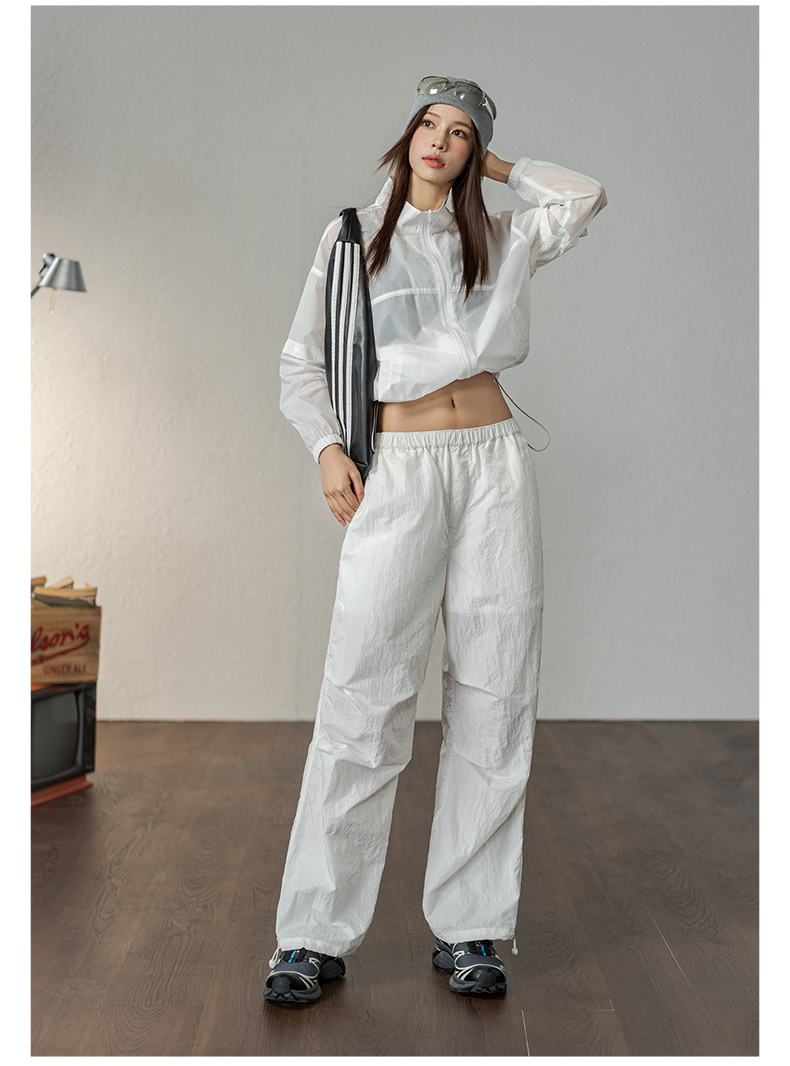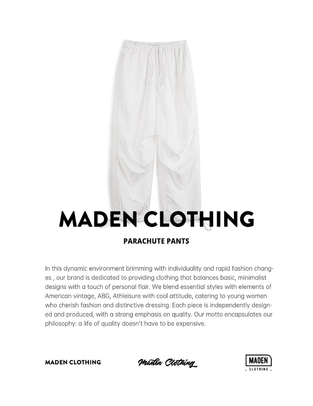 马登白色降落伞裤美式复古工装裤女收脚休闲裤登山运动裤透气女