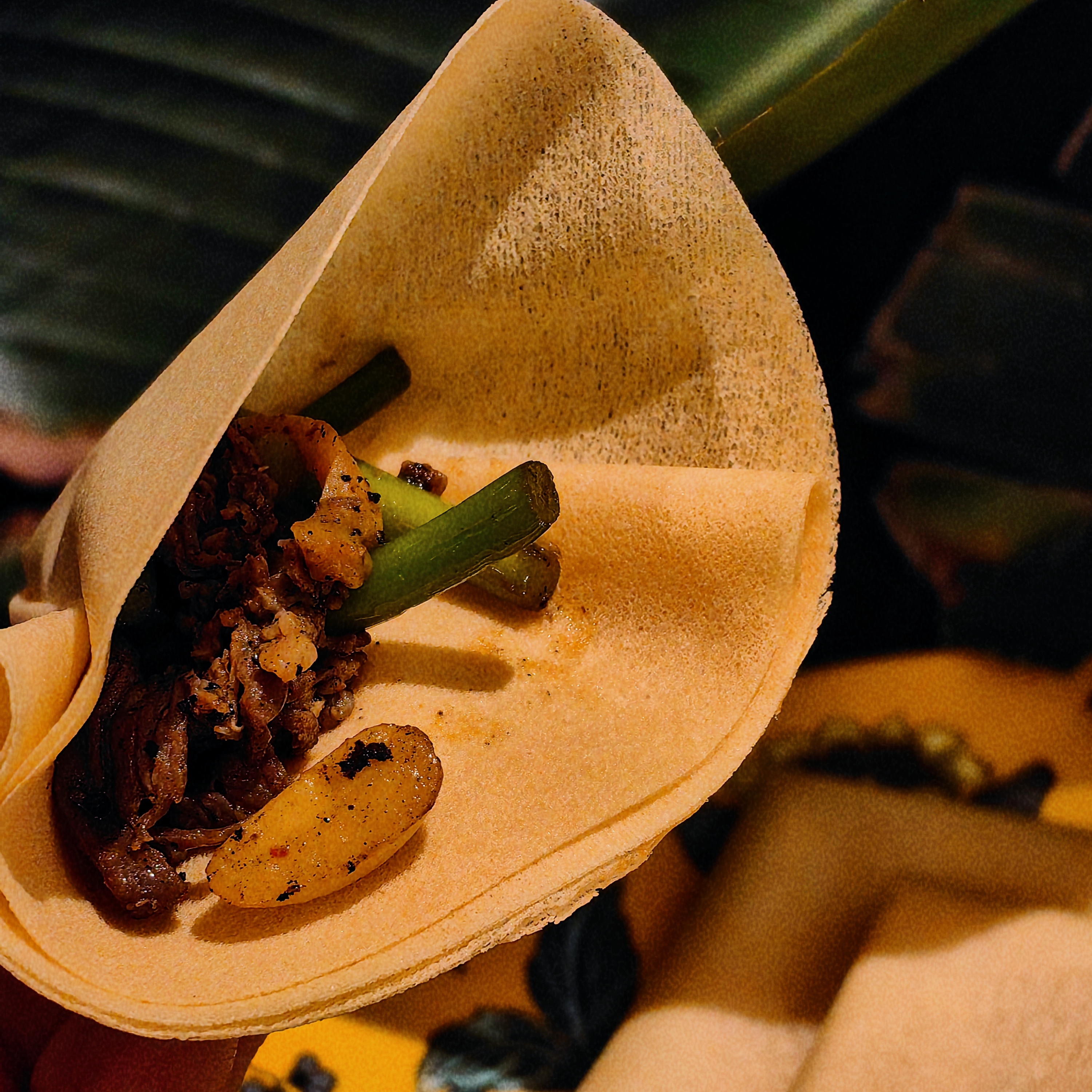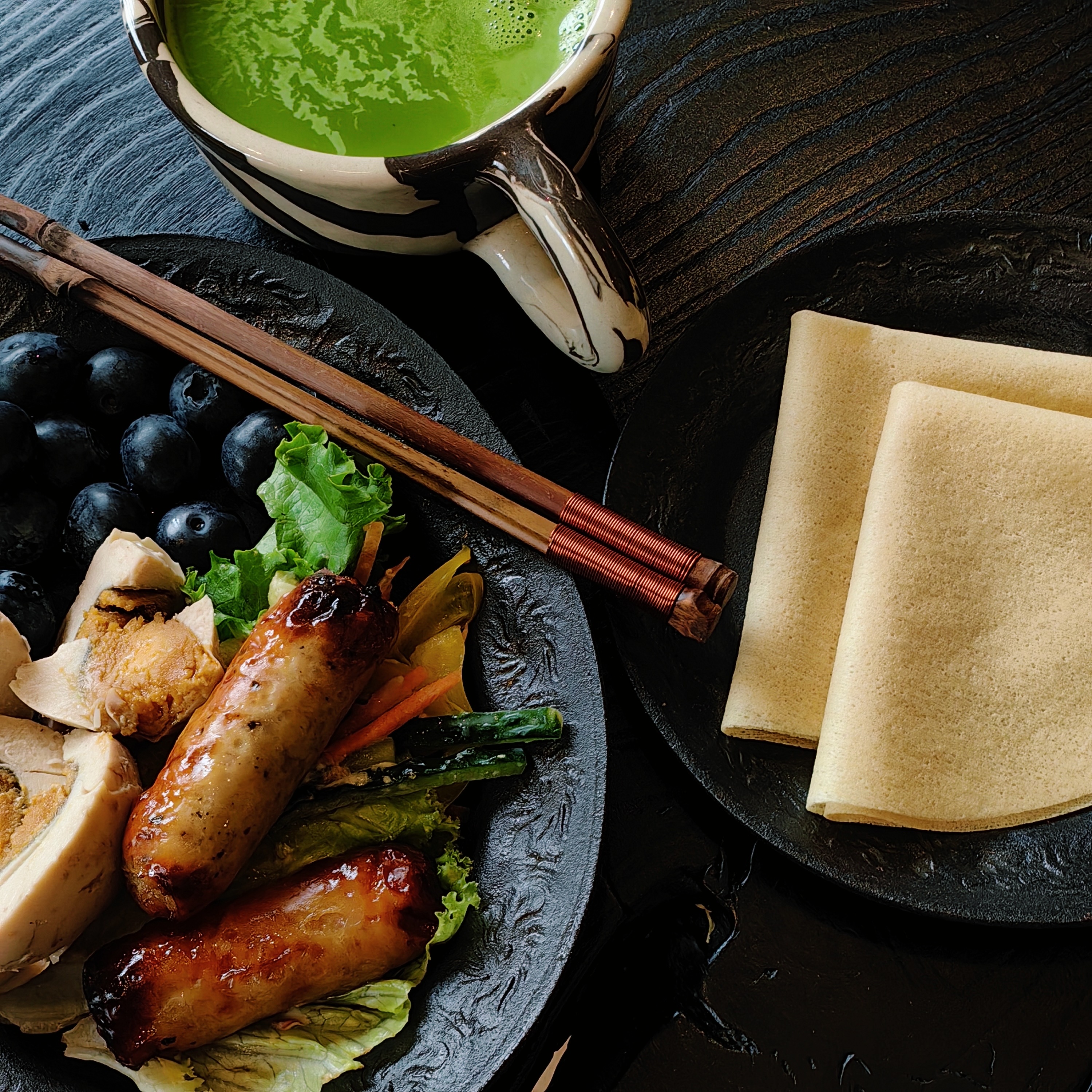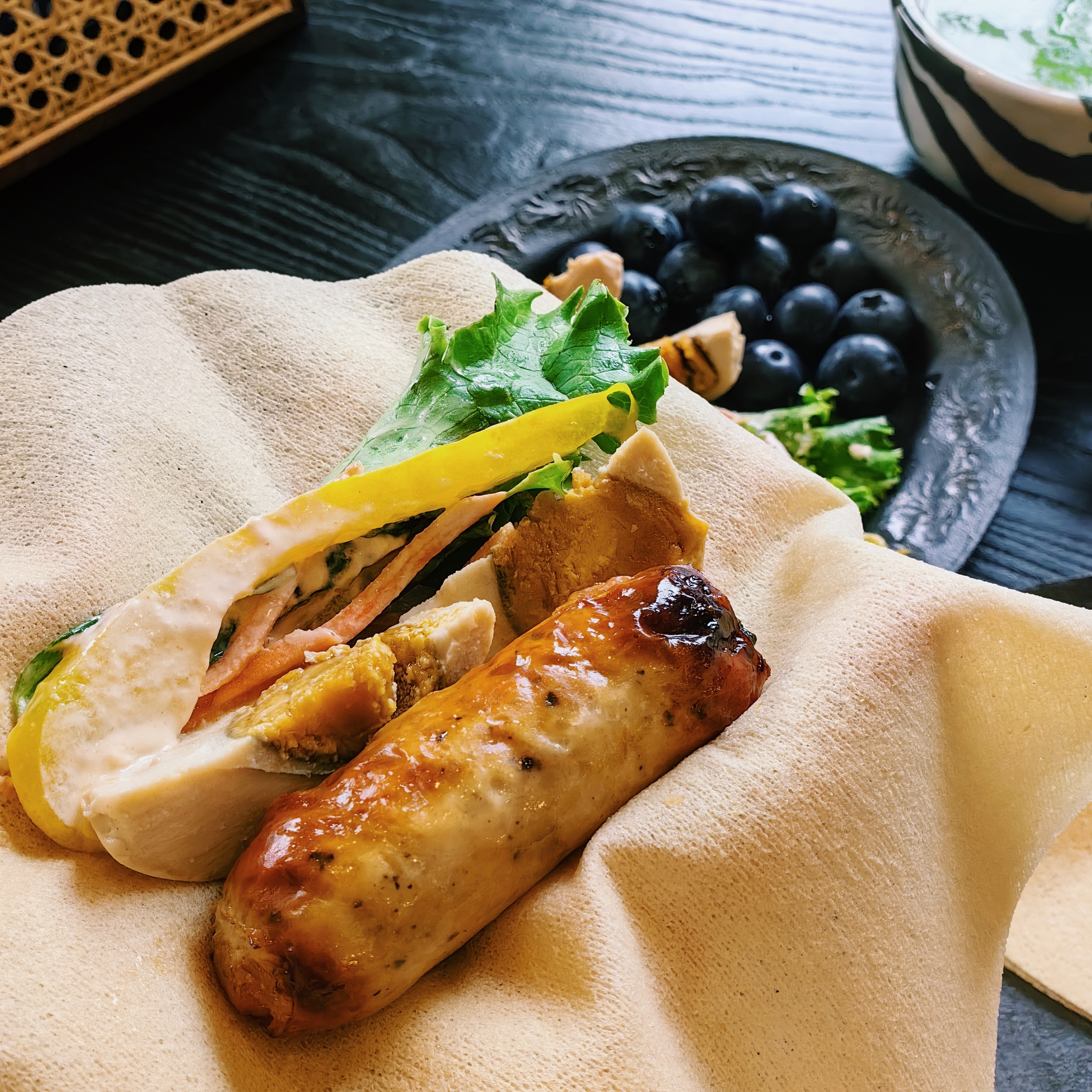 今天上的黎麦杂粮饼,看配料表也真的是很健康:玉米、糙米、藜麦、高粱、黄豆、小米,虽然是杂粮饼,但口感并不干硬,而是含有一定水份,直接吃就很香,泛着杂粮本身的甜味儿,很有韧劲,挺适合减脂期当碳水的,毕竟1张热量只有24大卡哦!当然,用来裹菜夹肉做卷饼是更好吃了,杂粮饼直径20cm,放上一两片蔬菜、番茄,切个超爱的蟹皇蛋、还有含肉量达85%以上的本味肉肠,蛋白质、碳水、膳食纤维就达标了,不需要任何调味料就足够好吃,蟹皇蛋的咸味,正正够!