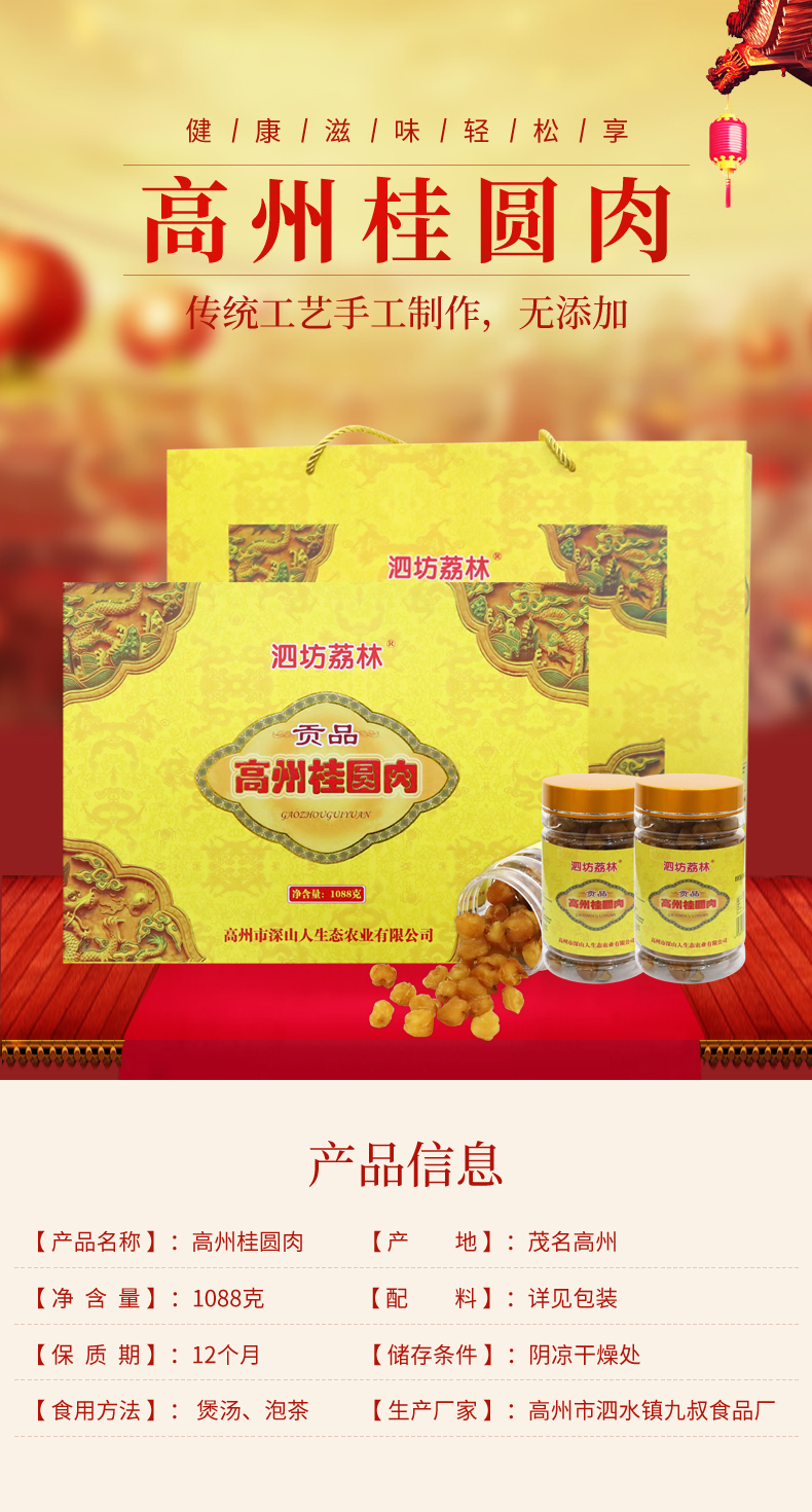 泗坊荔林鸡眼桂圆肉礼盒套装1088g