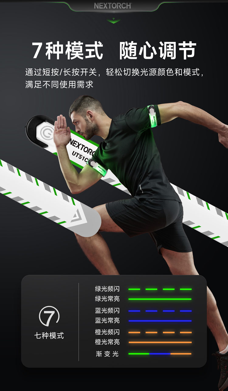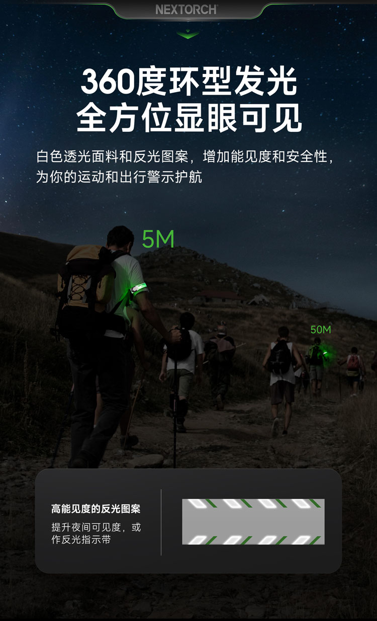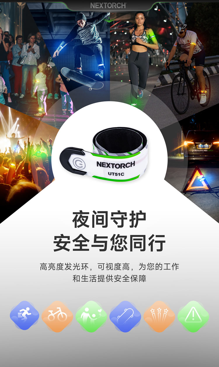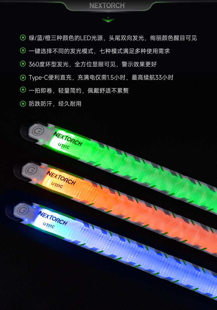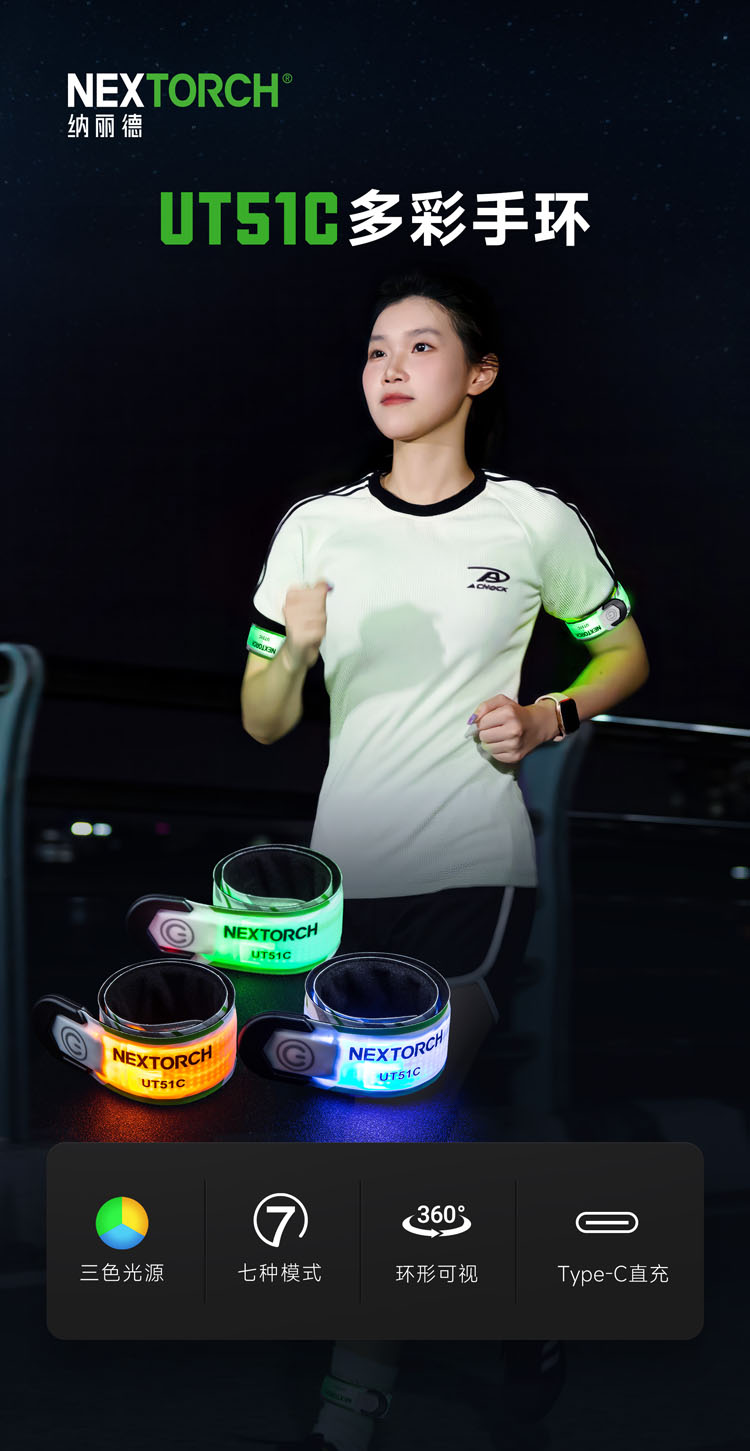 纳丽德 UT51C多彩手环夜跑360度环形发光警示指示灯