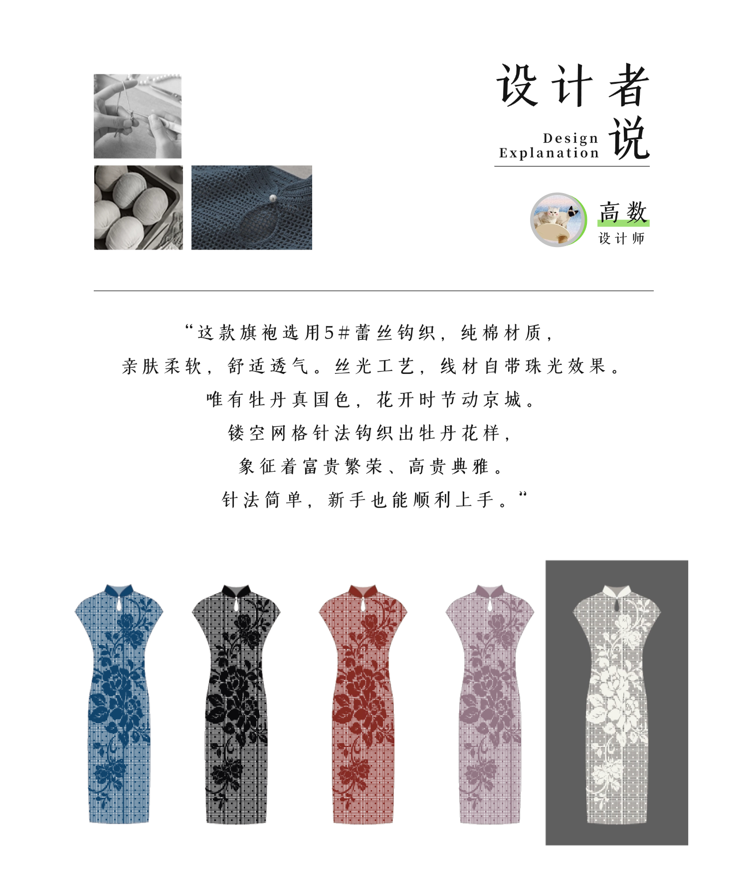 苏苏姐家天香牡丹蕾丝旗袍手工DIY钩针蕾丝线毛线团自制材料包